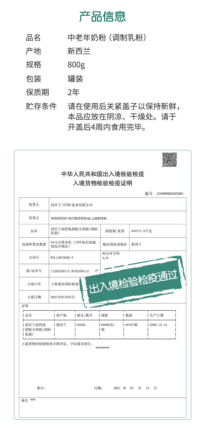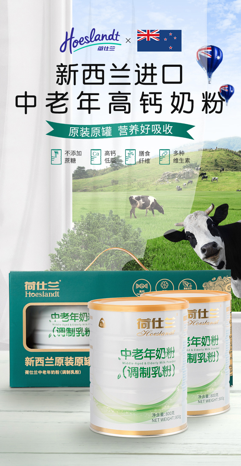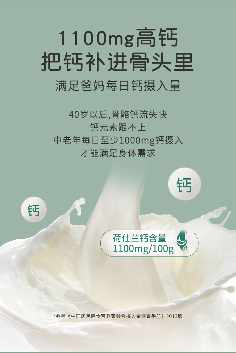 【进口钜惠】800g荷仕兰高钙低脂罐装奶粉 多种营养元素 让父母全心享受生活