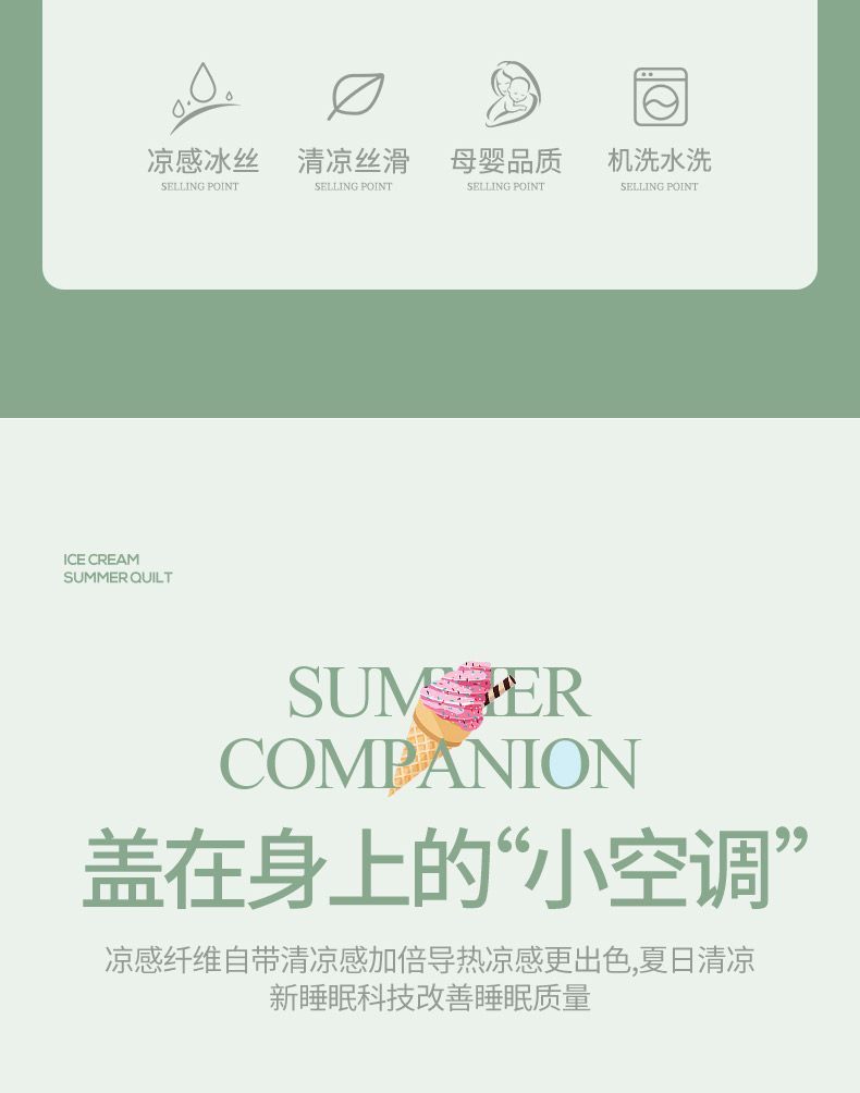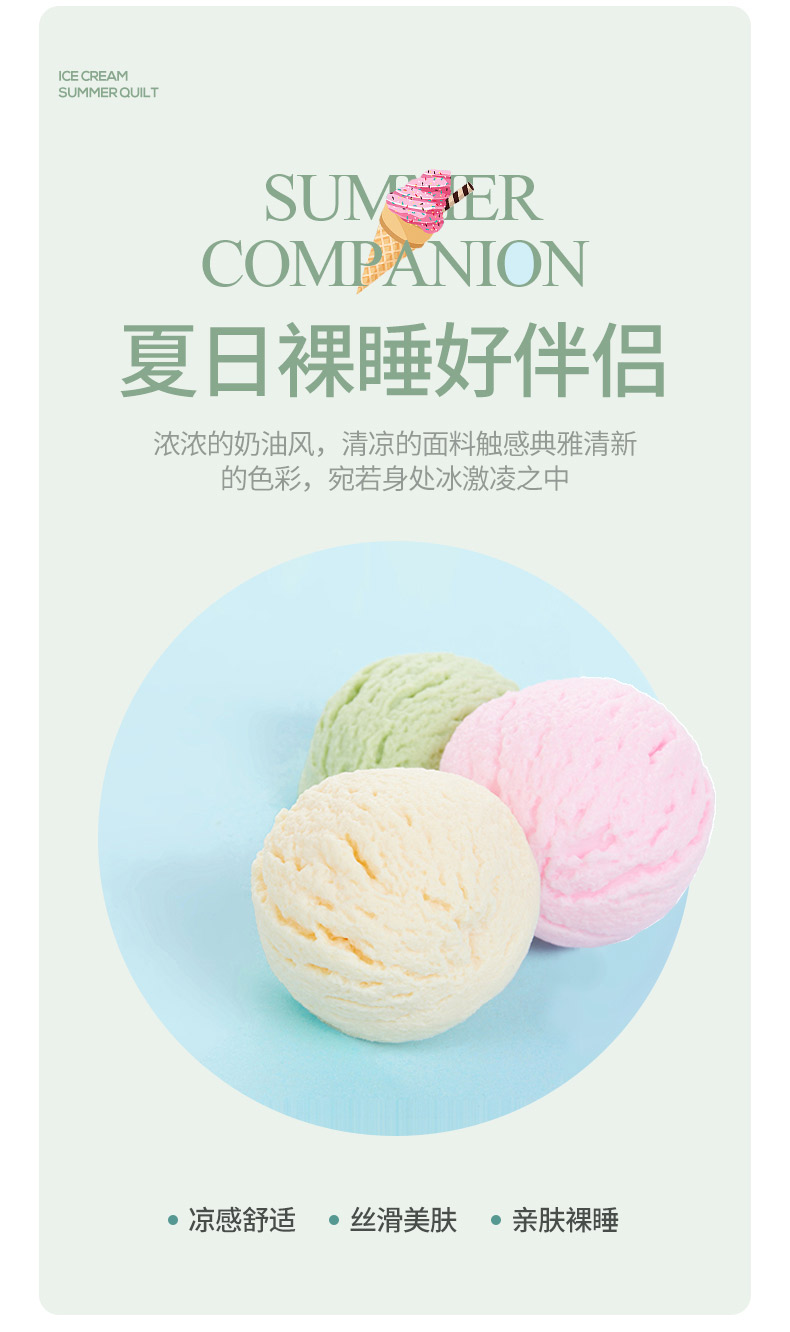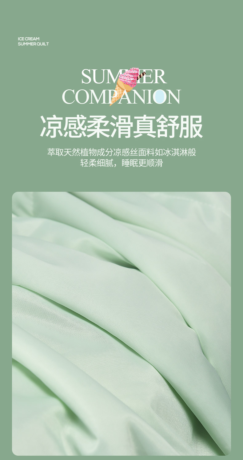 [怡沁园]冰激凌凉感丝夏凉空调被,会呼吸的凉感面料,水感丝滑裸睡品质,机洗不跑棉不变形夏季薄款被子