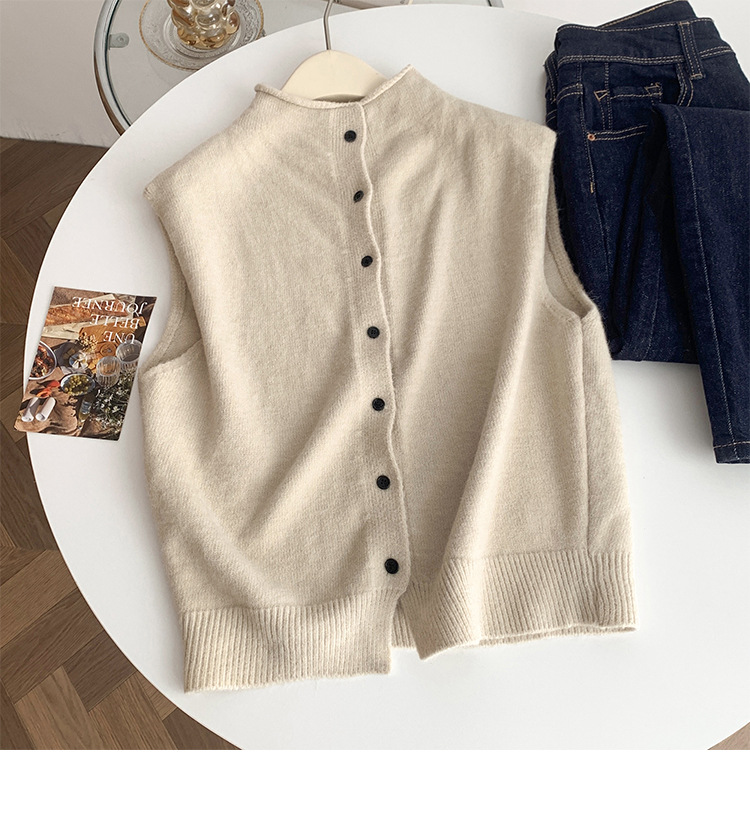 GYH 8297休闲简约纯色立领单排扣开衫马甲针织叠穿上衣