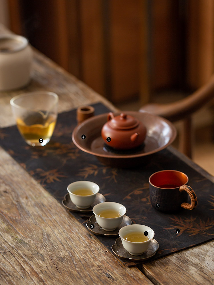 茶香记 品淡三友套组 一布融瓷 景德镇 手作 仿古泥 功夫茶杯