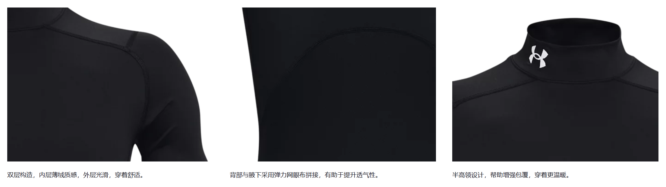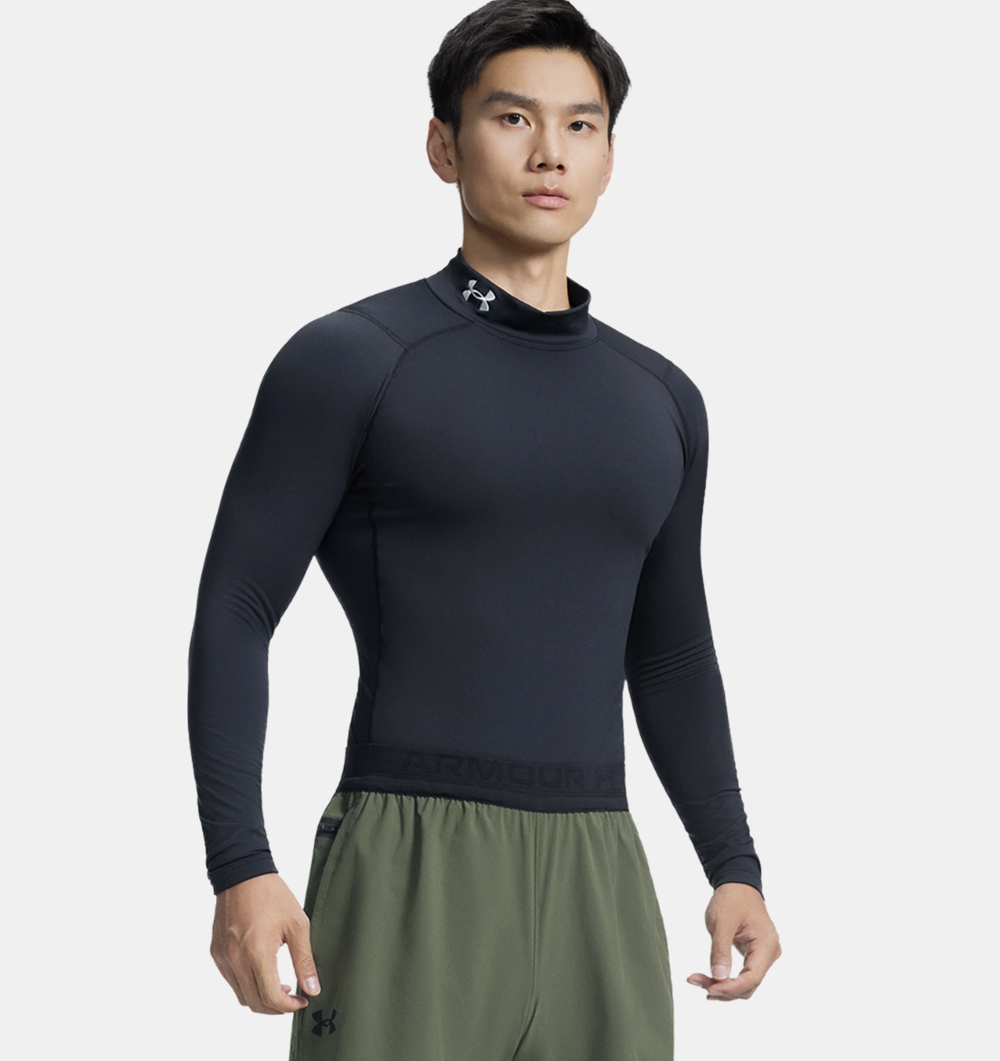 【明星同款Coldgear冬训紧身衣】安德玛男子UA Armour半高领长袖紧身衣1366072-001