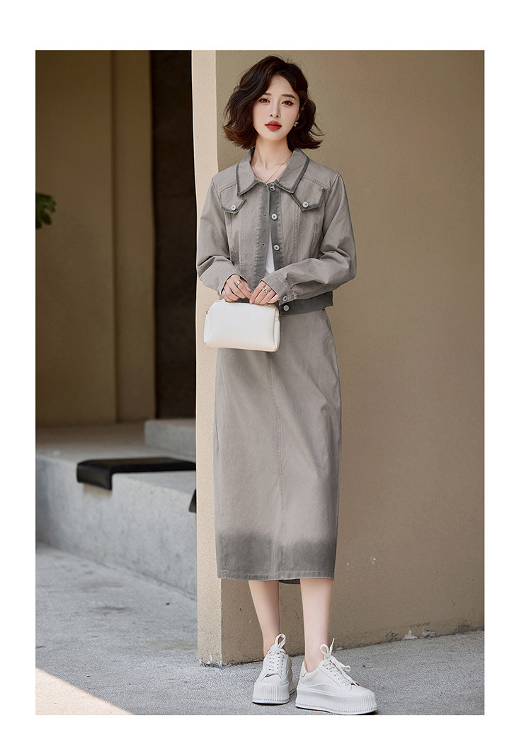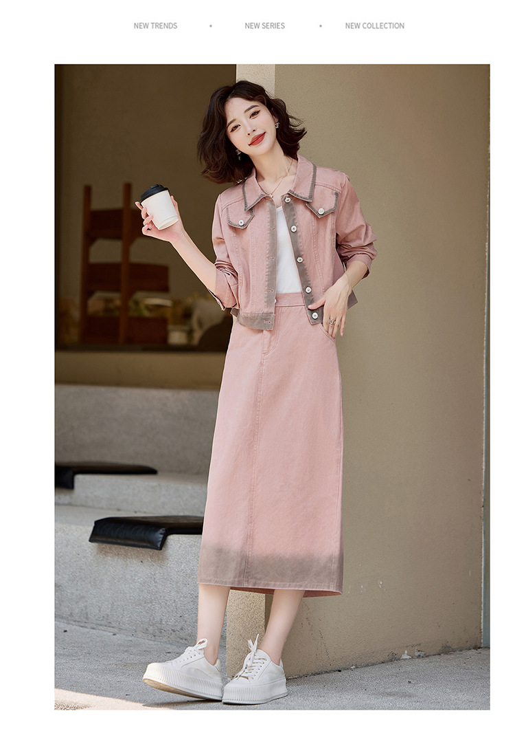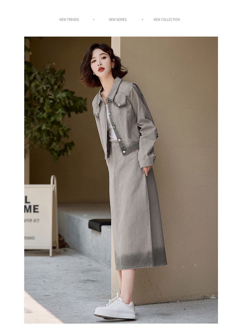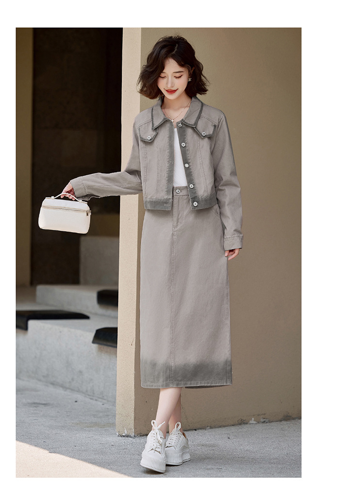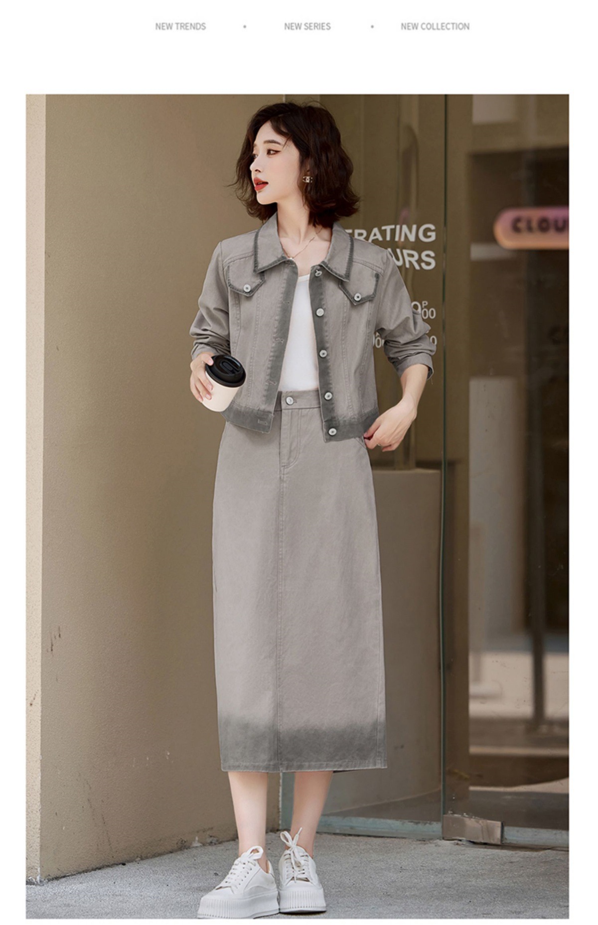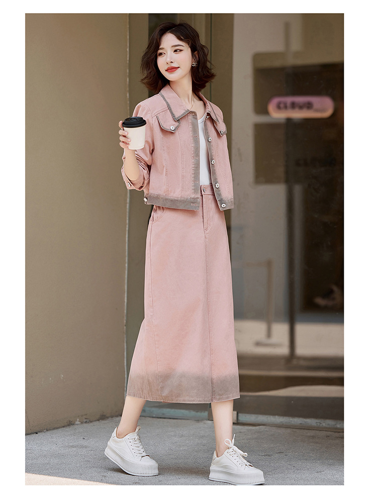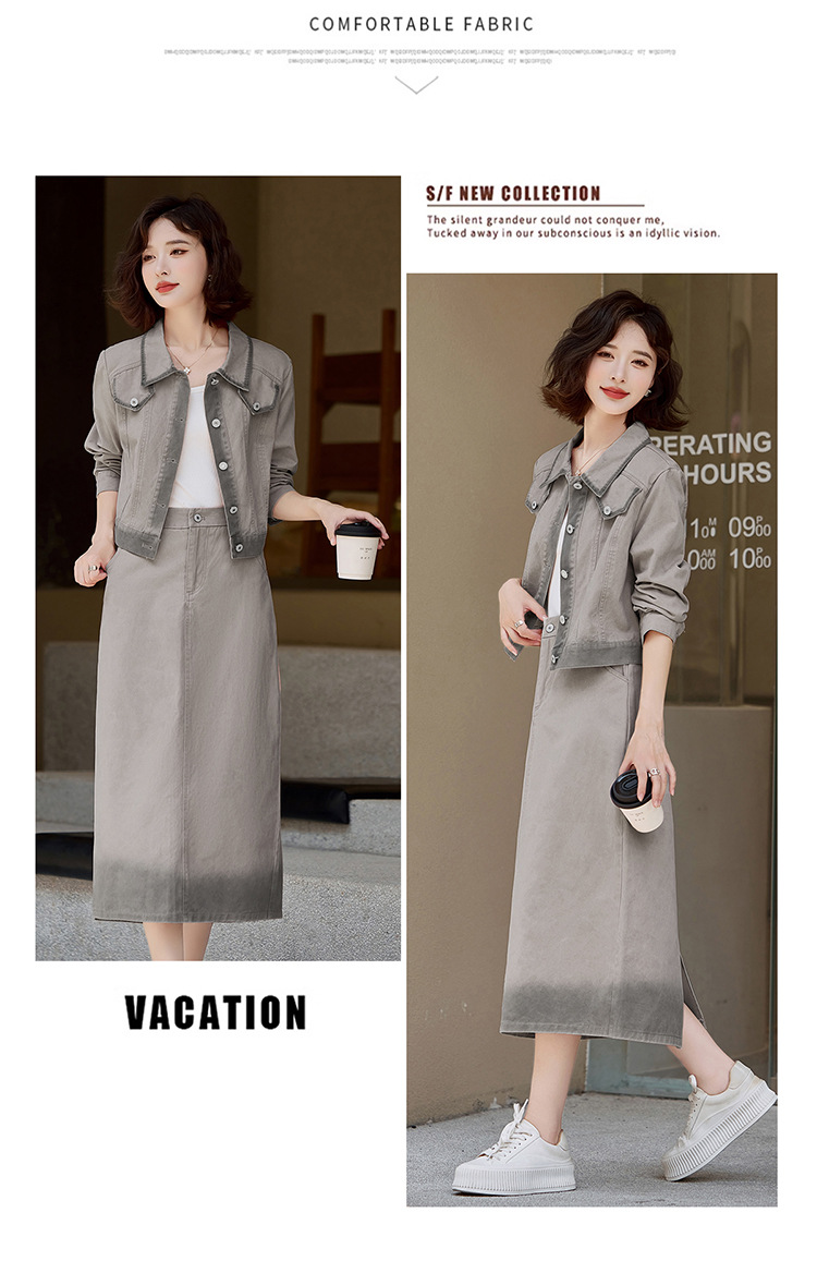 2024新款秋装休闲洋气漂亮减龄牛仔时尚气质显瘦半身裙套装两件套