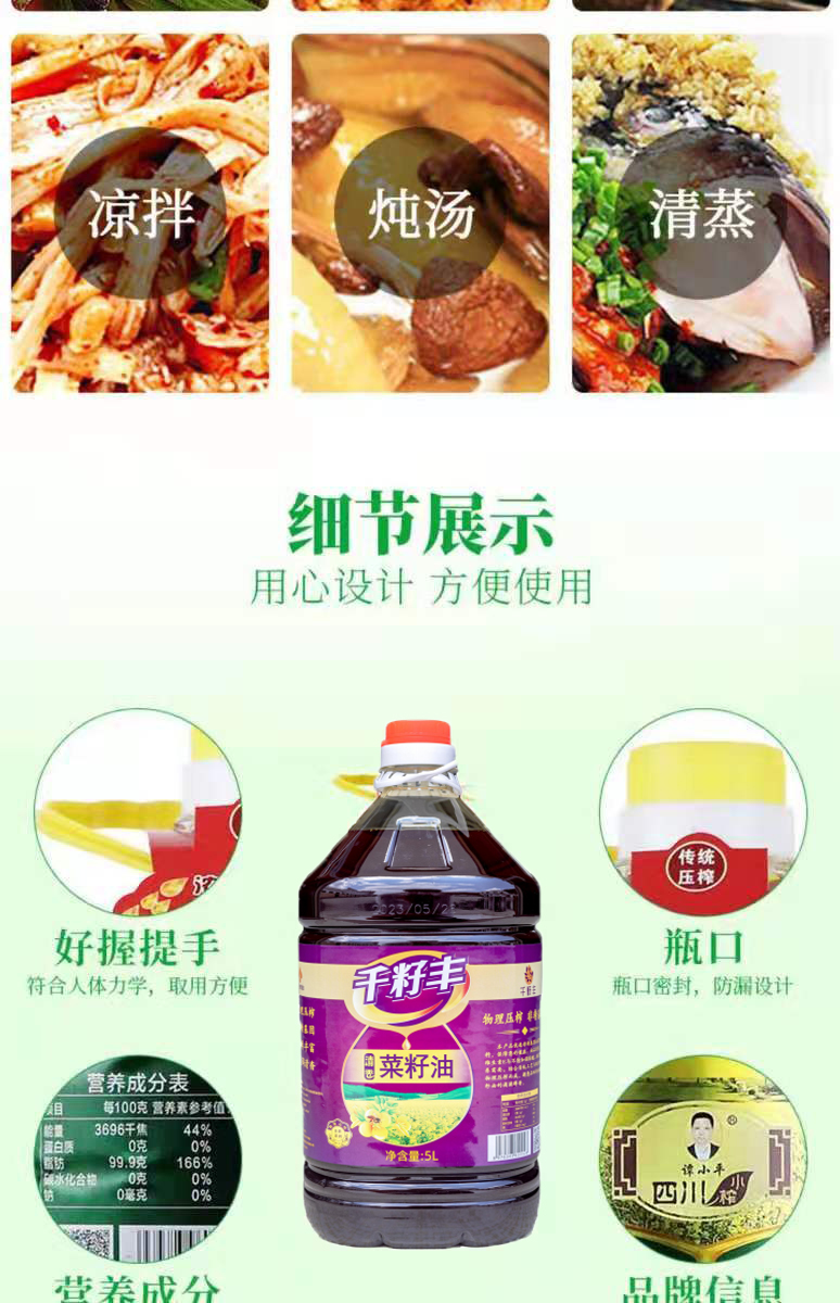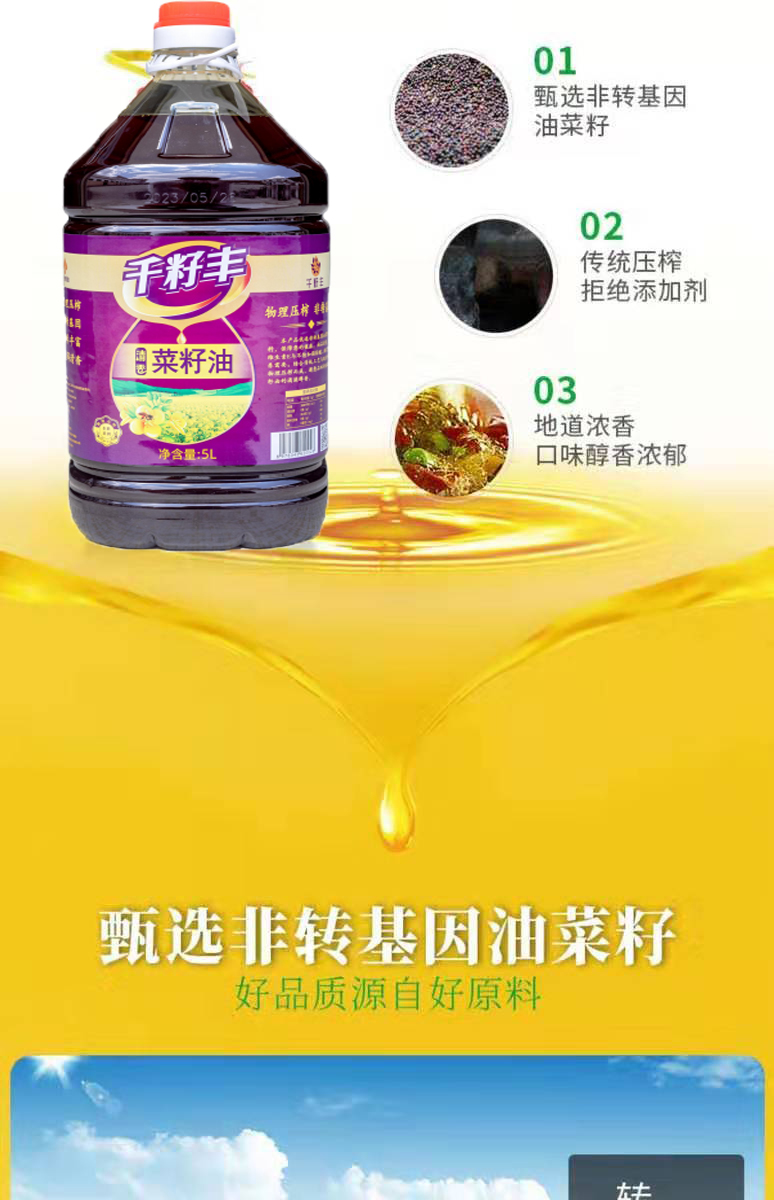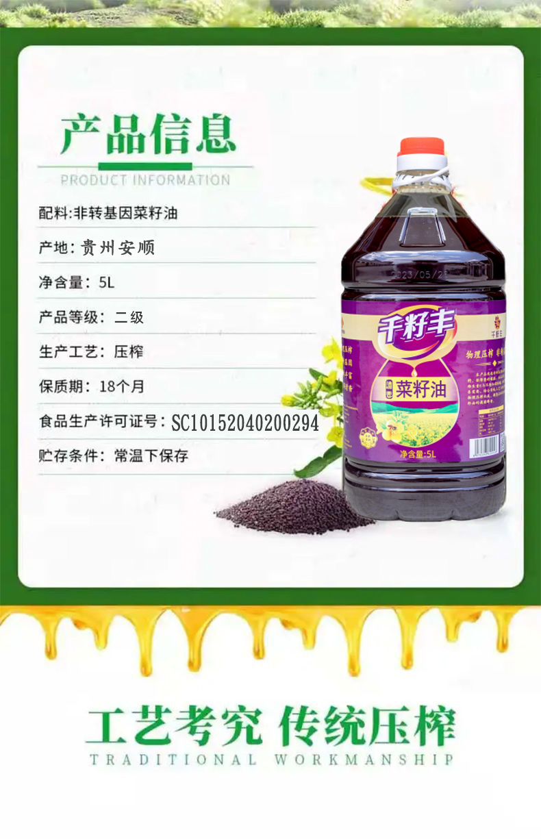 安顺西秀【千籽丰·菜籽油】5L/桶 纯正菜籽油小榨油好味道新鲜罐装滴滴香浓 全国包邮(五区不发货)