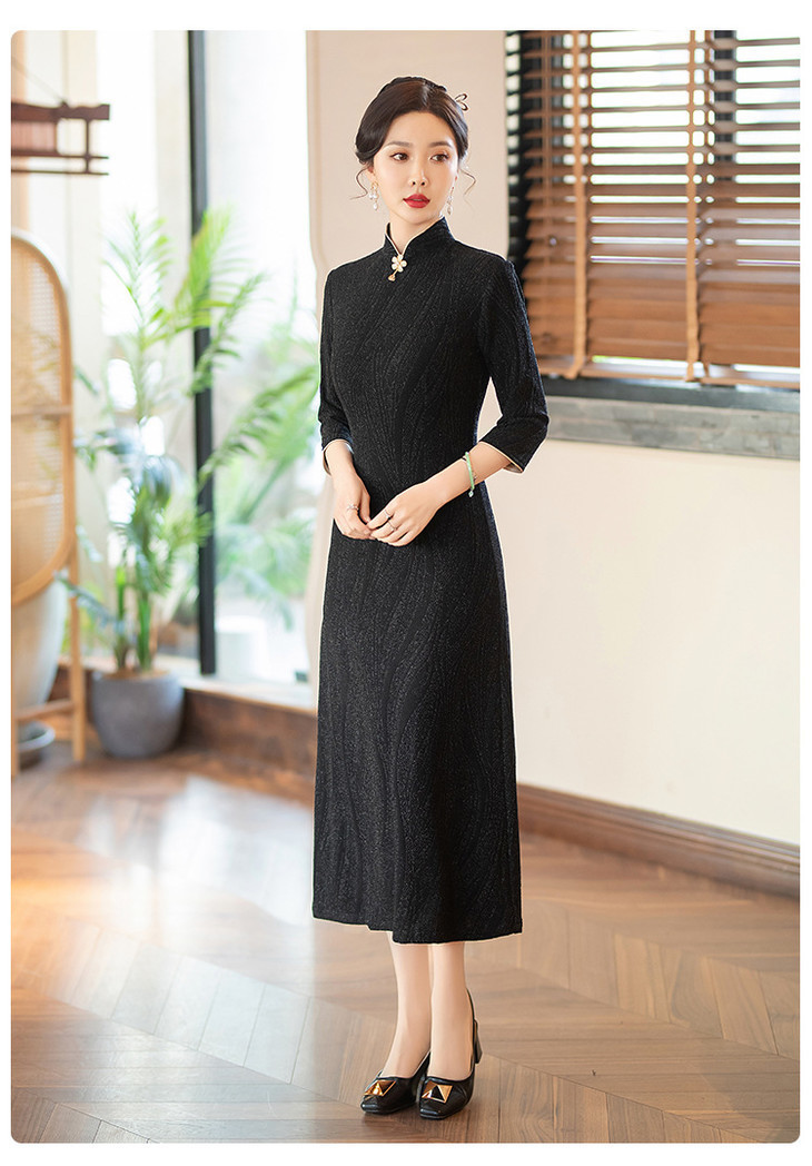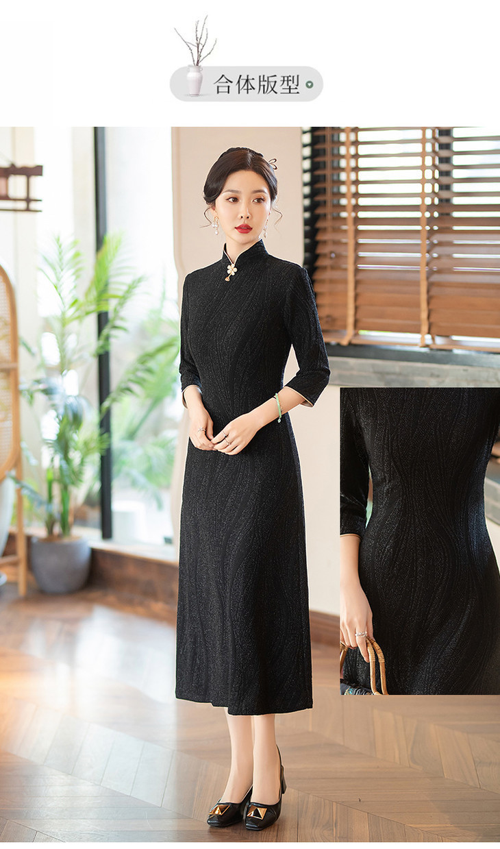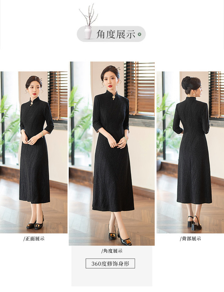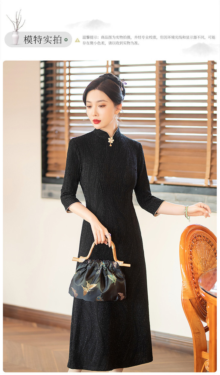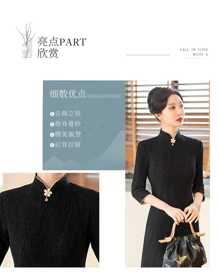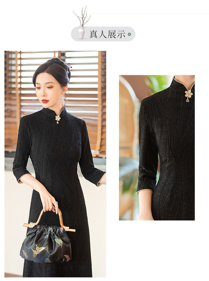 SYG784中式七分袖旗袍女春秋款复古修身礼服2024年新款旗袍