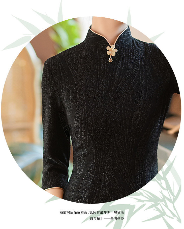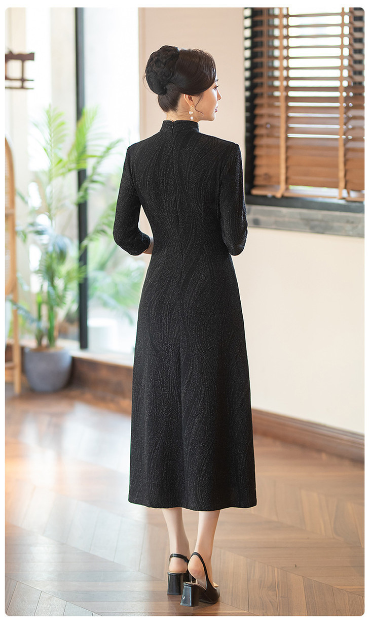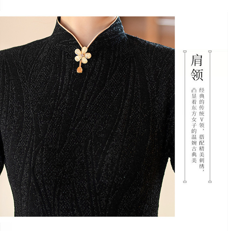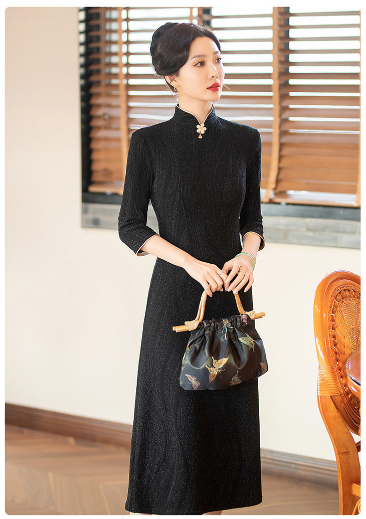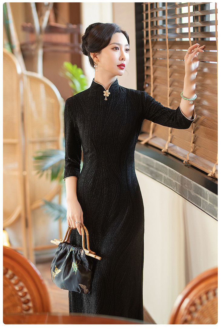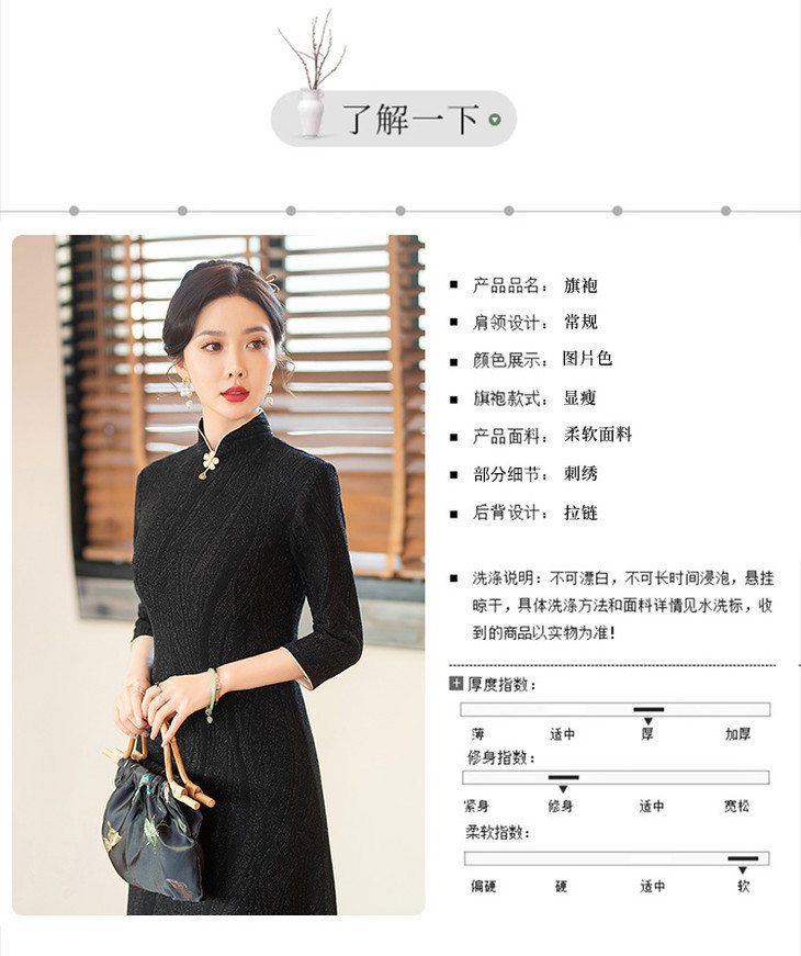 SYG784中式七分袖旗袍女春秋款复古修身礼服2024年新款旗袍