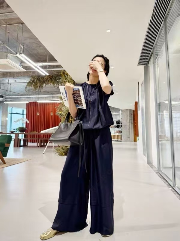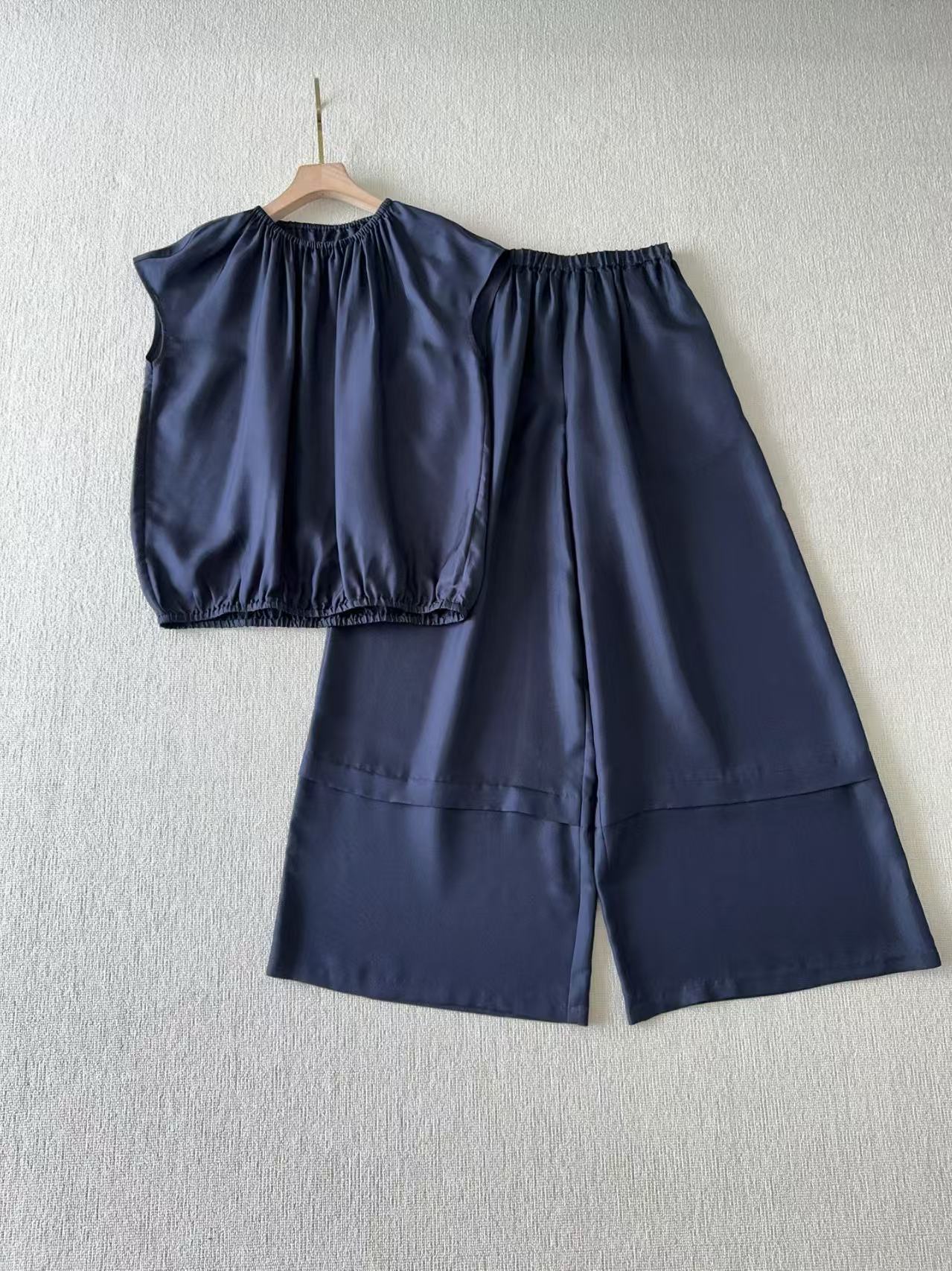 【à perles】Tibi*真丝斜纹绸飞袖圆领上衣和阔腿裤套装