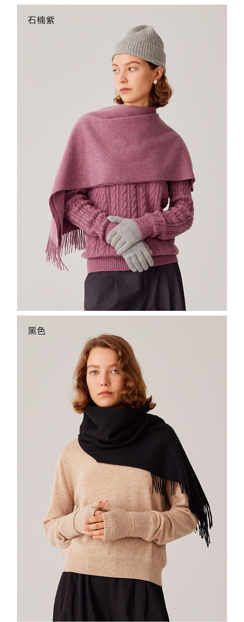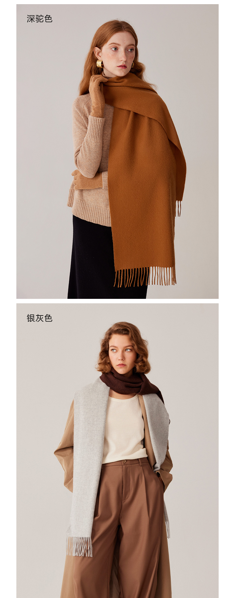 Johnstons of Elgin经典纯羊绒宽幅围巾 纯色