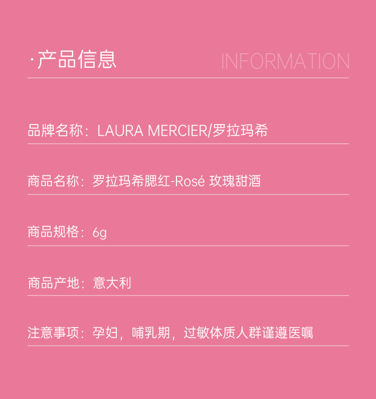 【跨境】LauraMercier罗拉玛希哑光细闪腮红哑Rose玫瑰甜酒色6g/盒(效期至2027年8月)
