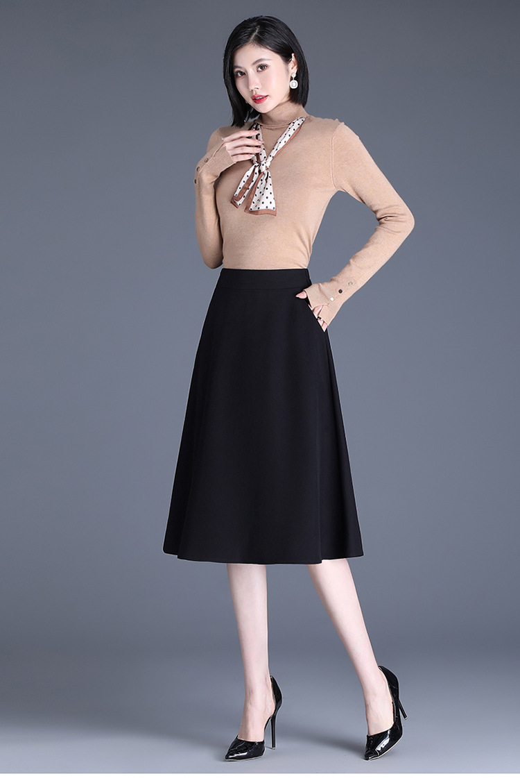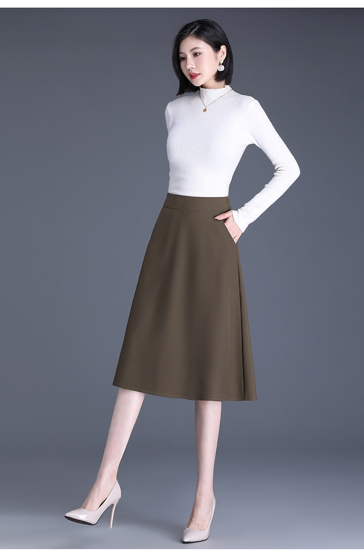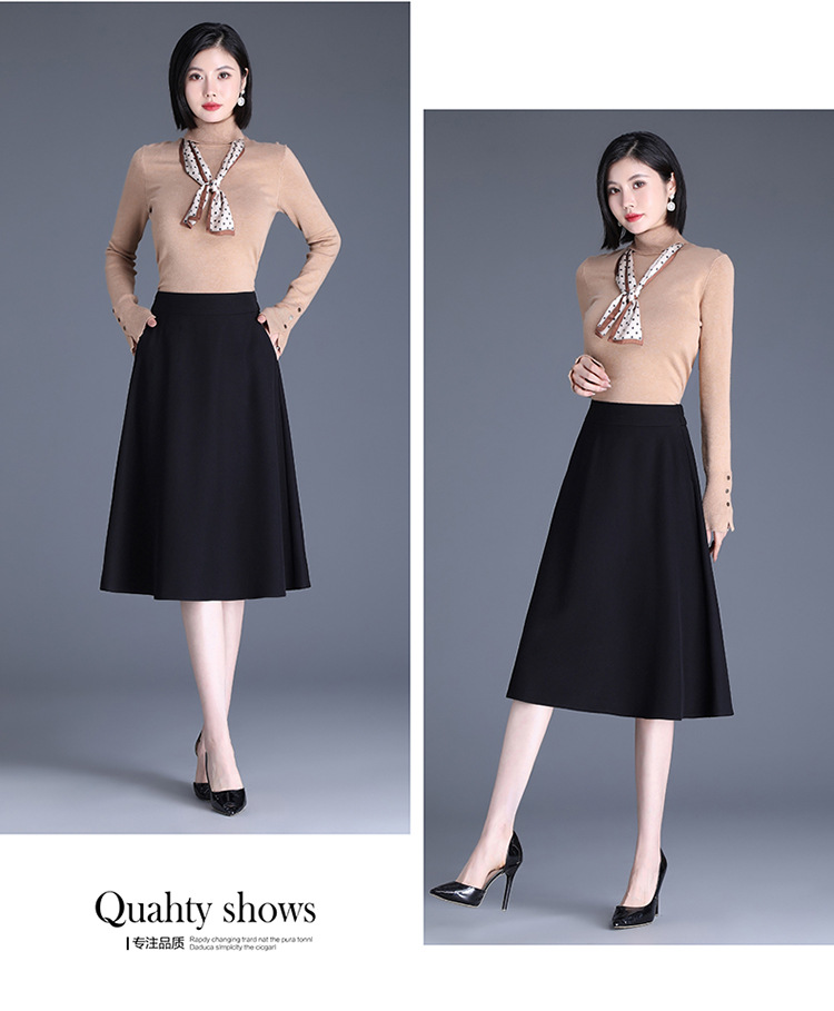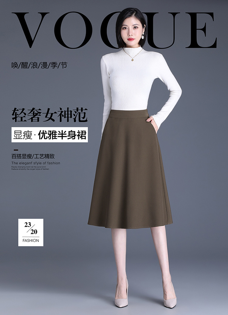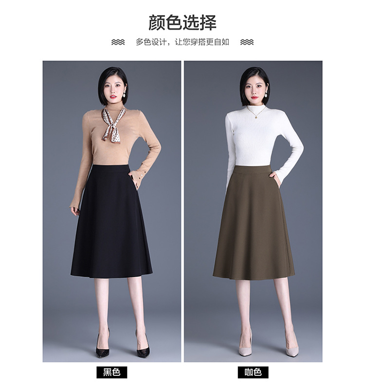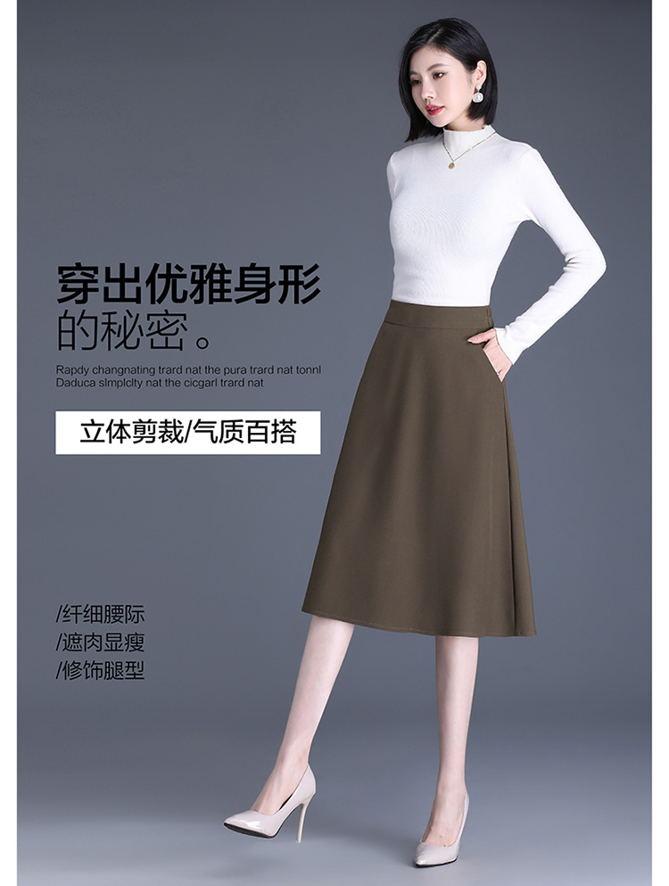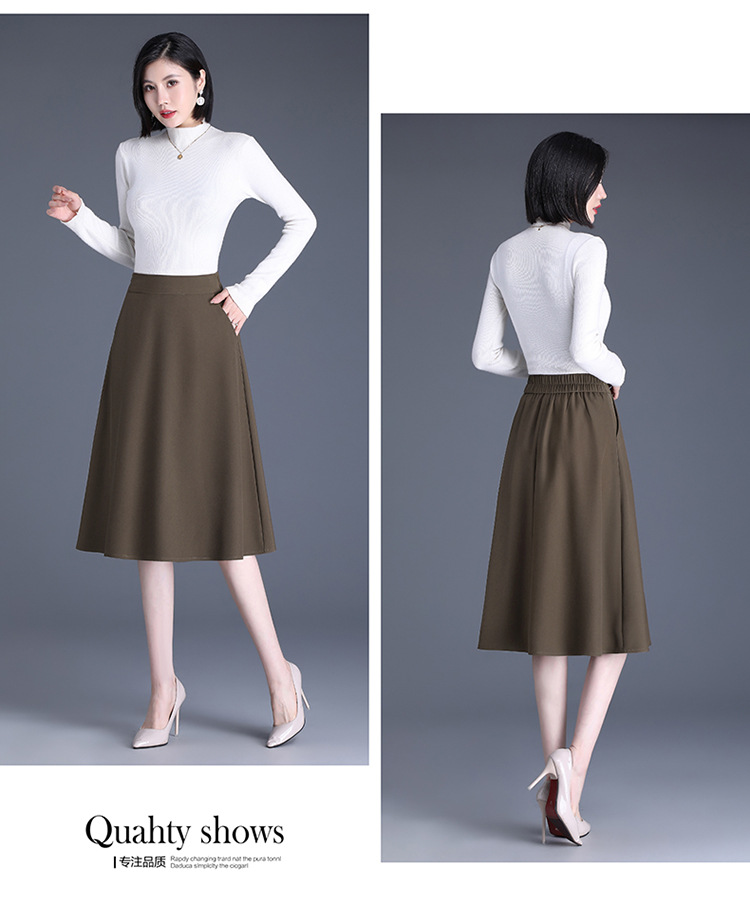 MYX-JYM-1228-L秋款中长款简约修身时尚A字裙松紧腰气质半身裙通勤高腰裙
