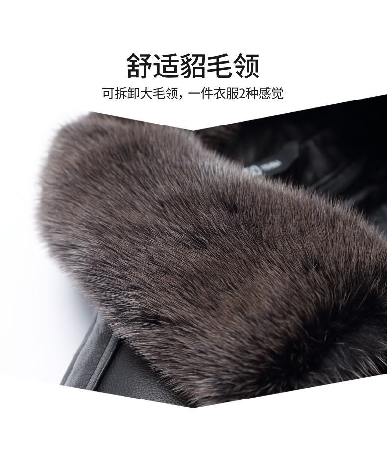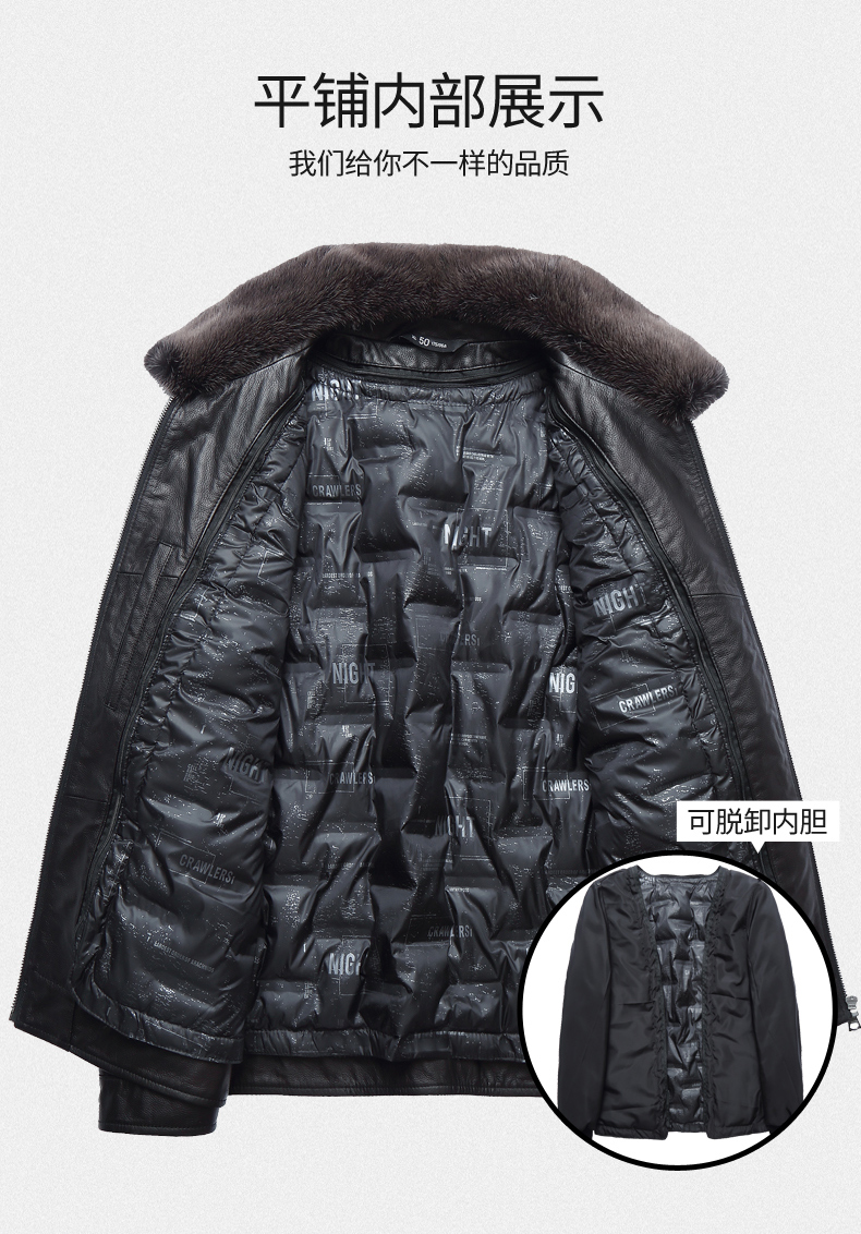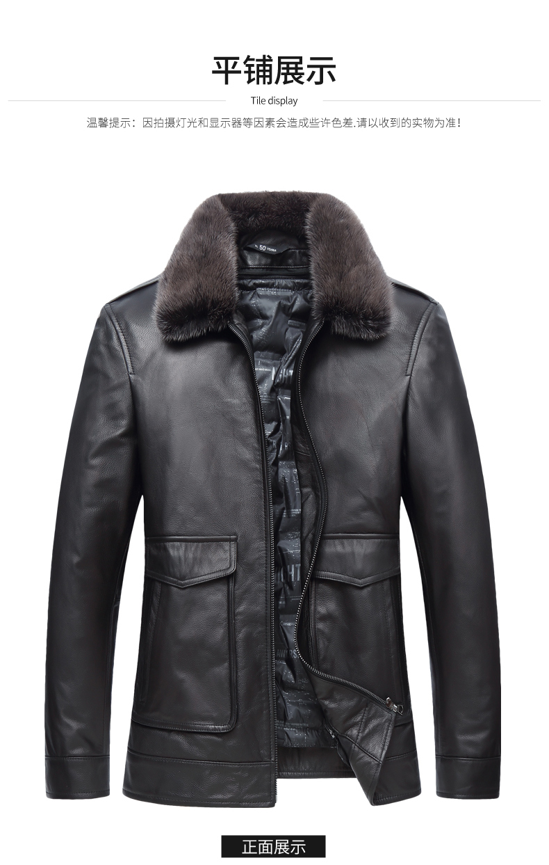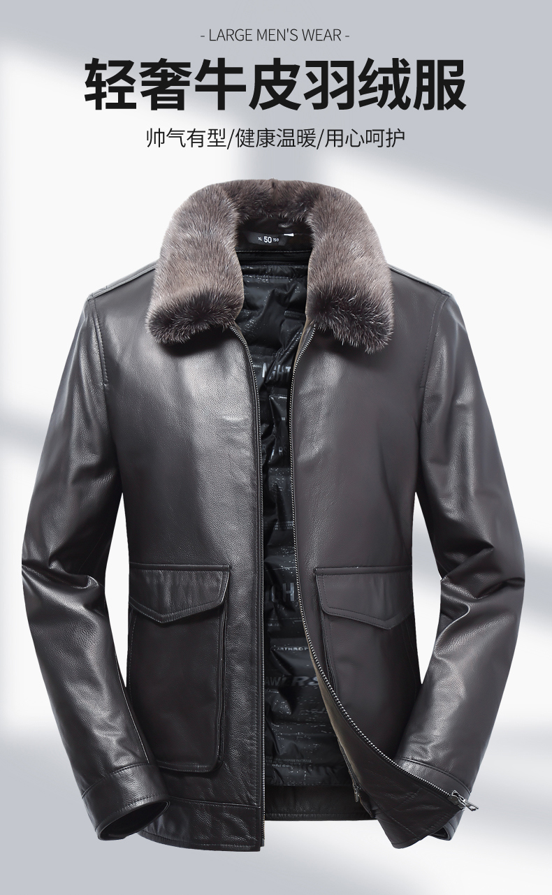 【真皮】大依优型大码貂毛领可拆牛皮羽绒服可拆卸内胆夹克外套休闲简约大号皮夹克真皮皮草加肥加大