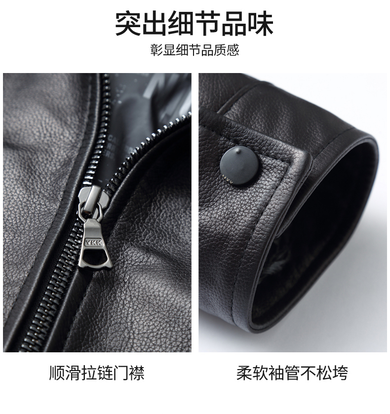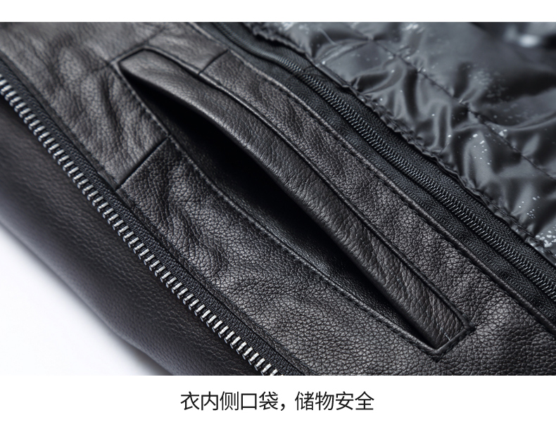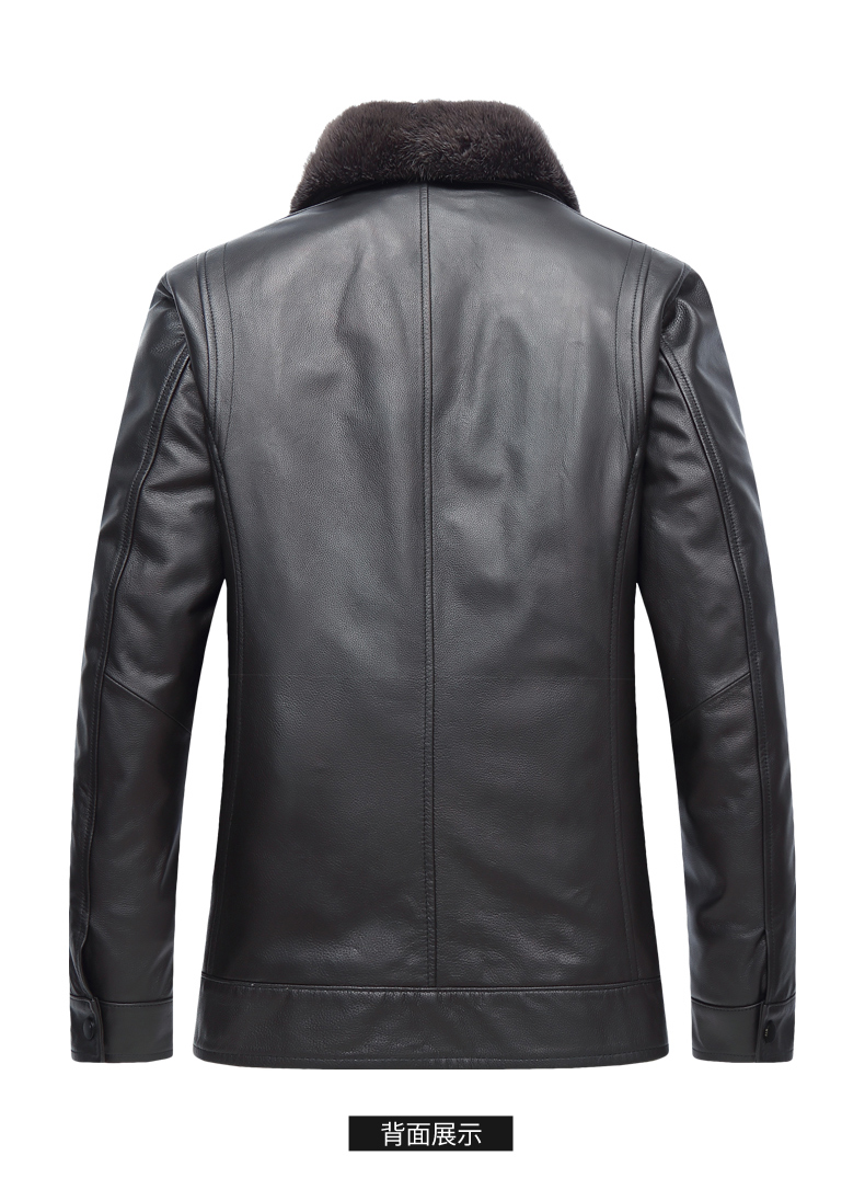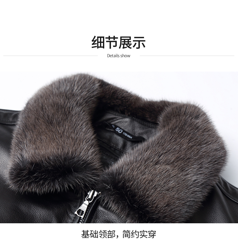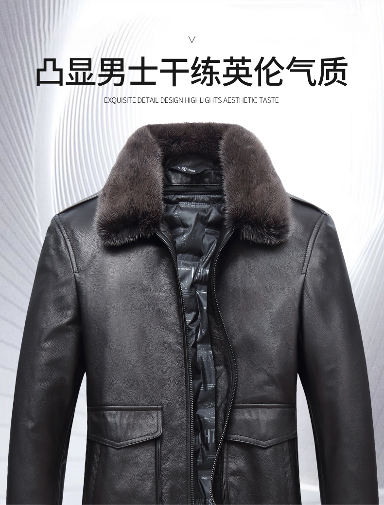 【真皮】大依优型大码貂毛领可拆牛皮羽绒服可拆卸内胆夹克外套休闲简约大号皮夹克真皮皮草加肥加大