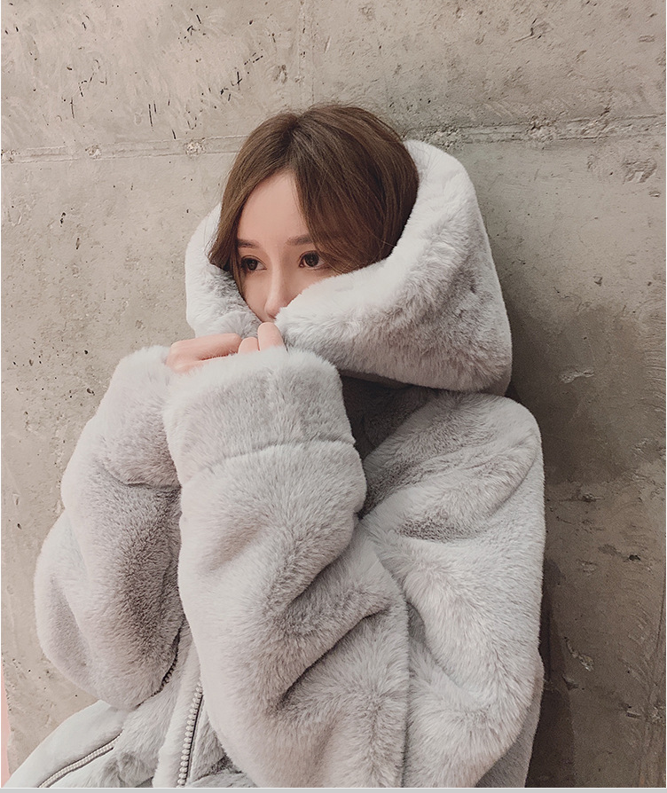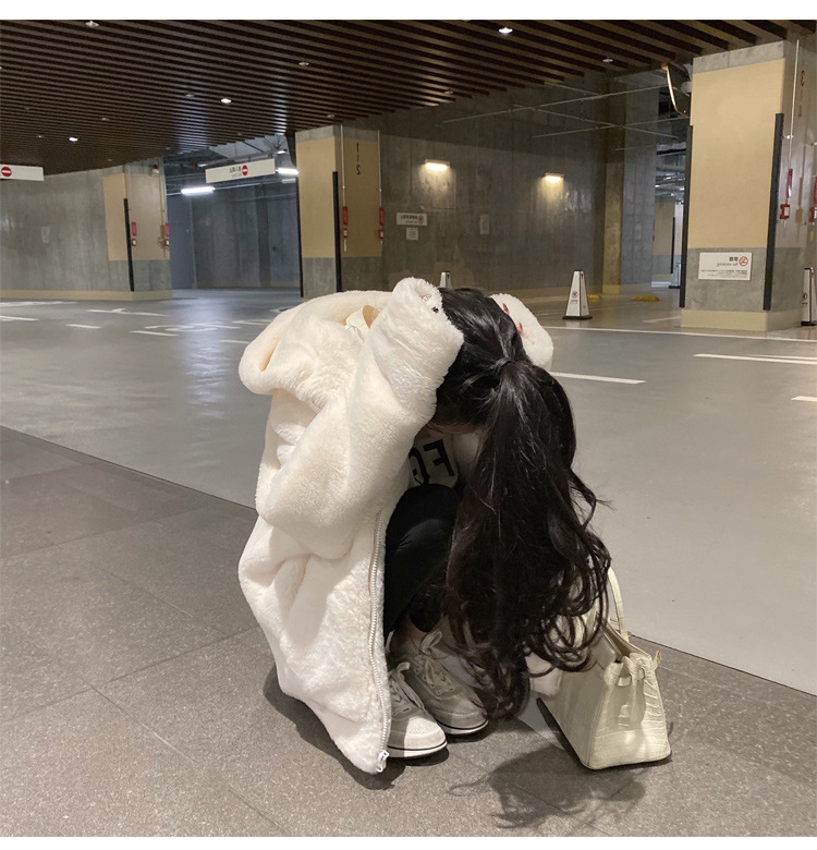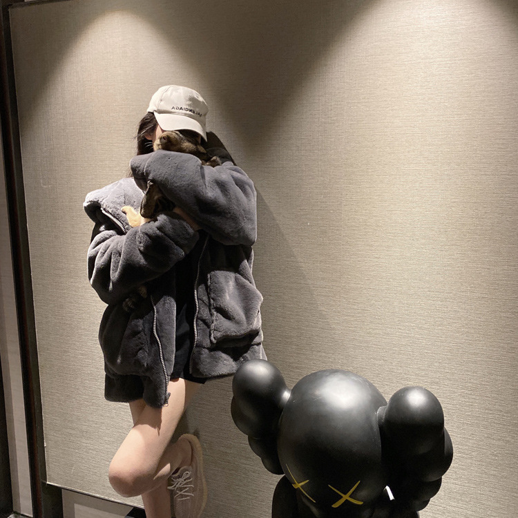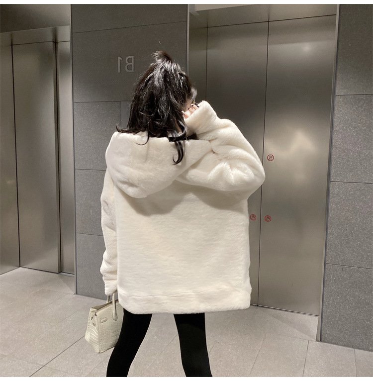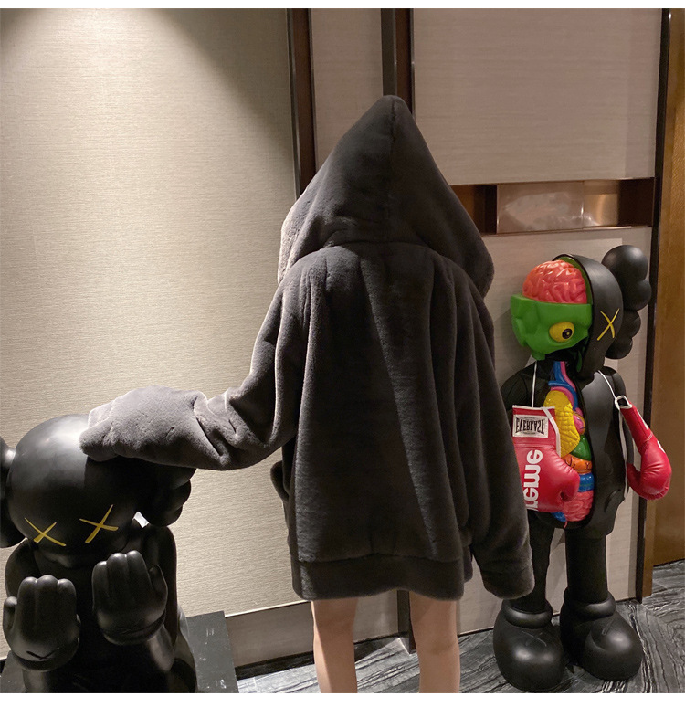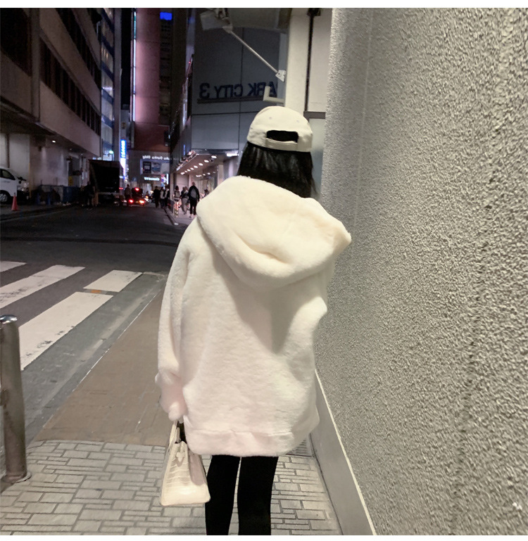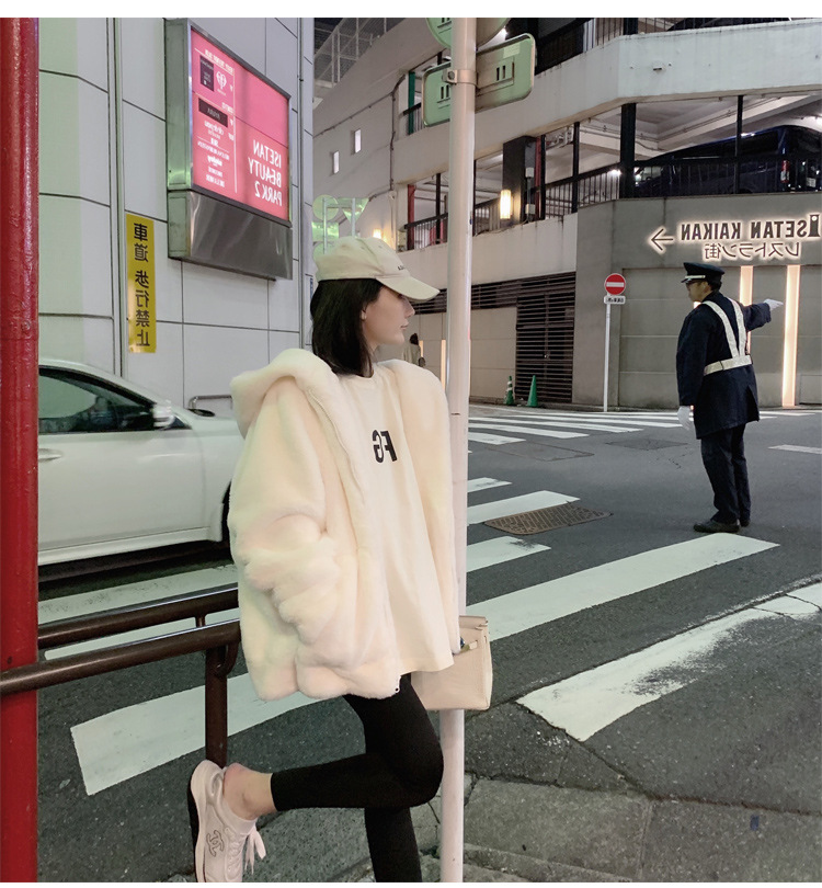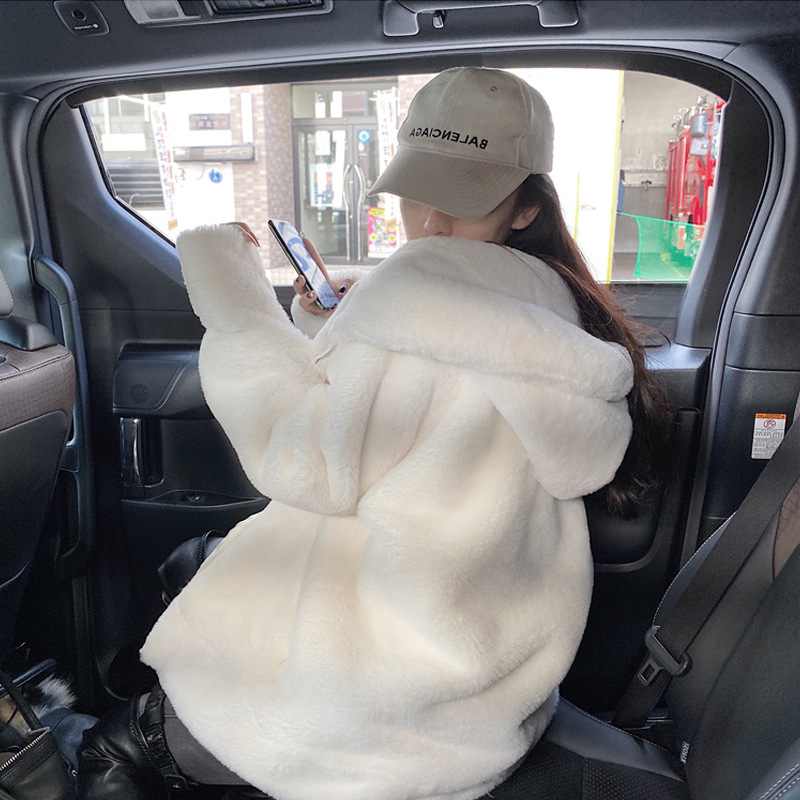 雀说新款秋冬季宽松慵懒连帽羊羔毛绒加绒加厚仿皮草毛毛绒外套ALW0089