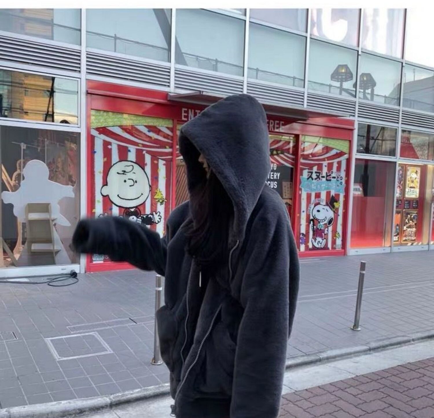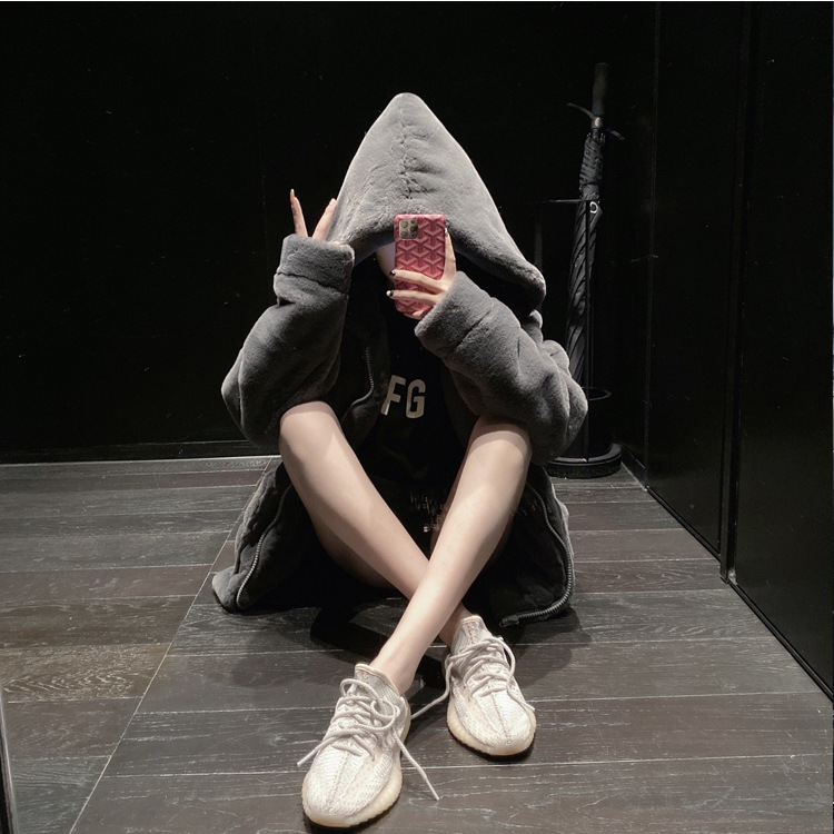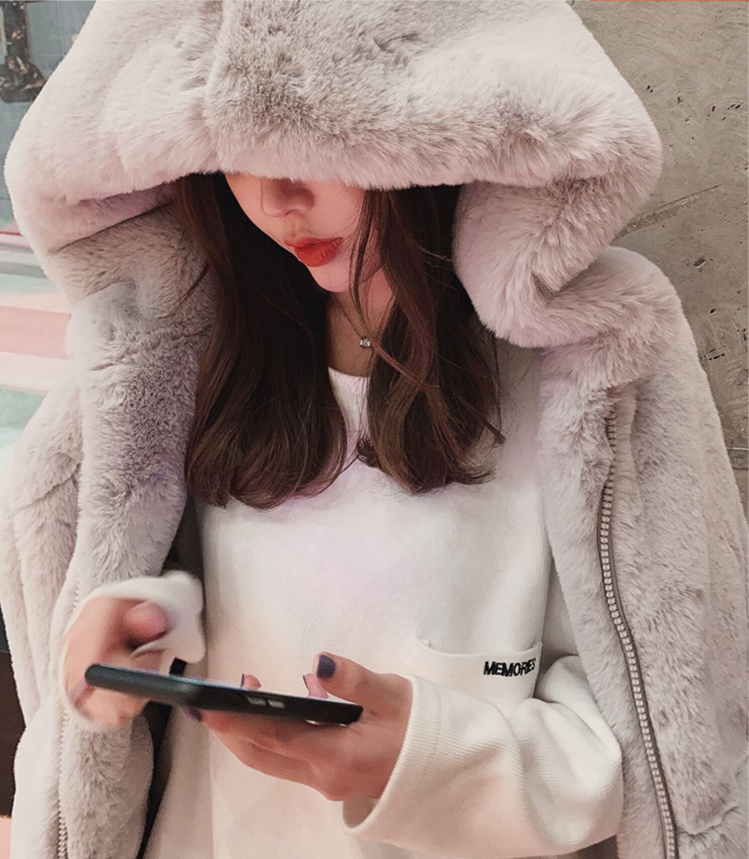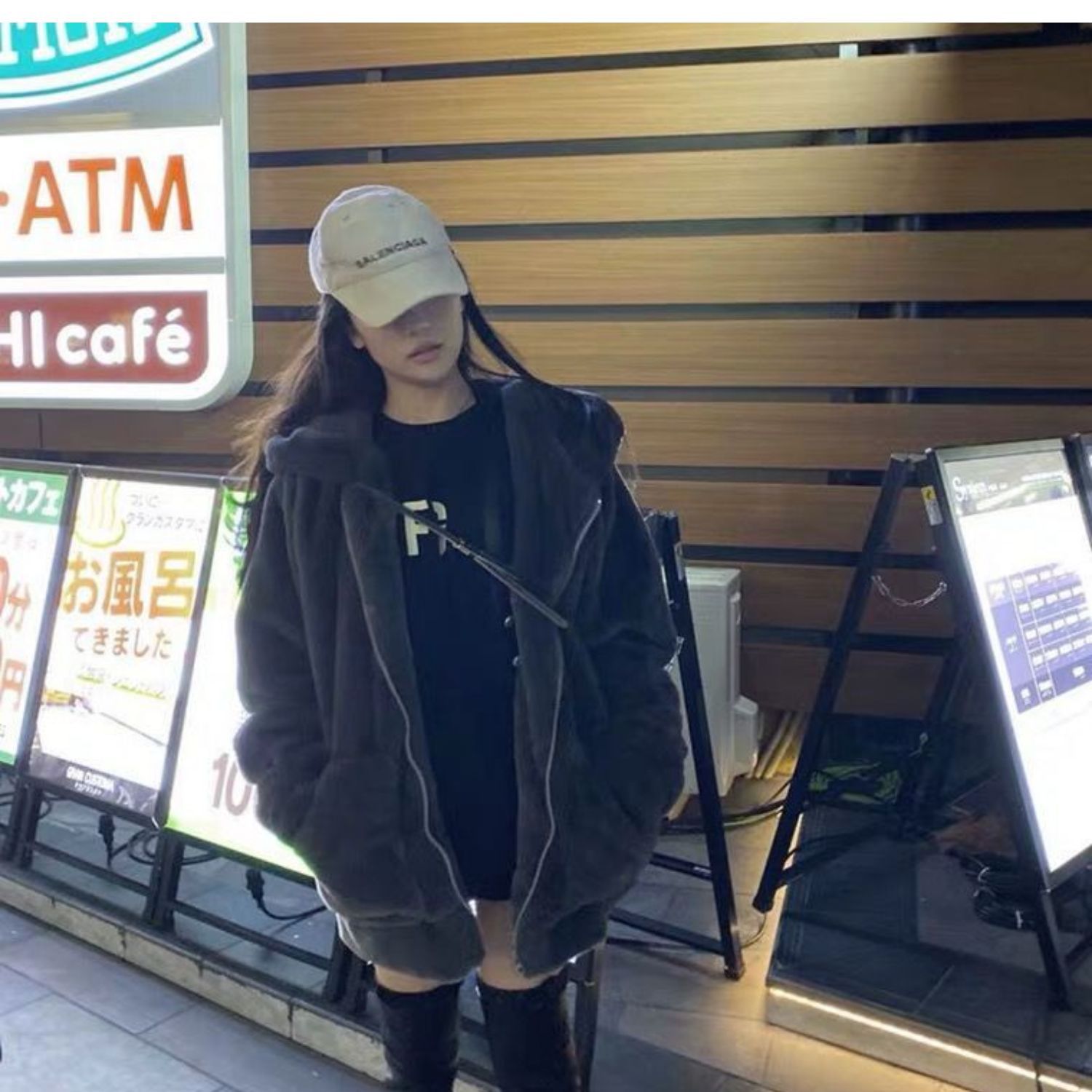 雀说新款秋冬季宽松慵懒连帽羊羔毛绒加绒加厚仿皮草毛毛绒外套ALW0089
