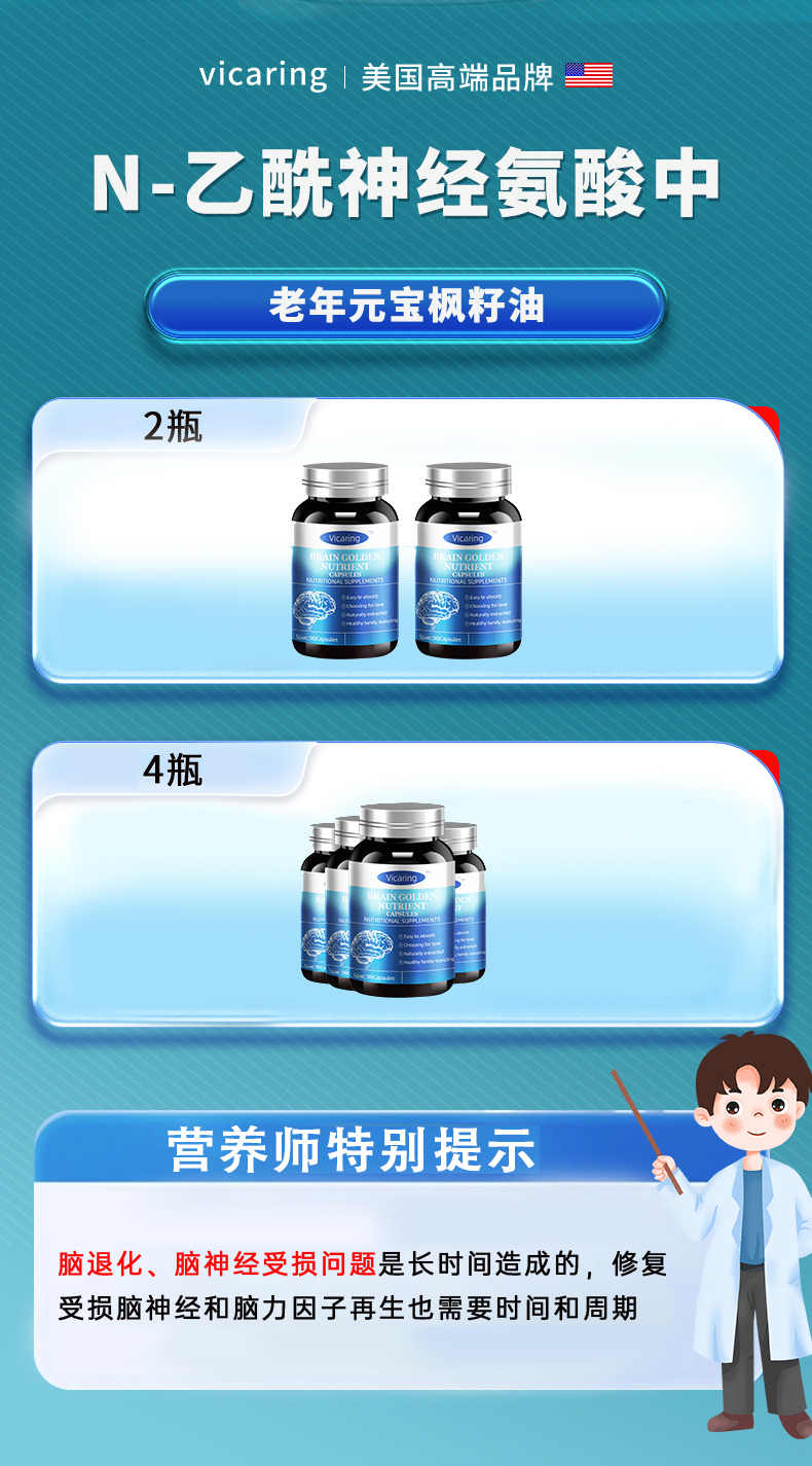 vicaring N-乙酰神经氨酸中老年元宝枫籽油(神经酸)63g(0.7gx90片)/瓶