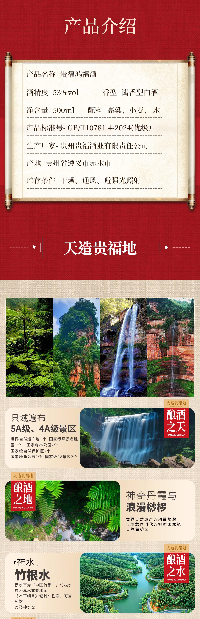 【尊享经典 品味人生】始于1898年贵福鸿福酒|贵州酱香型白酒53度,非遗古法工艺纯粮酿造,高端礼盒装500ml,贵州老字号送礼宴请自饮收藏。