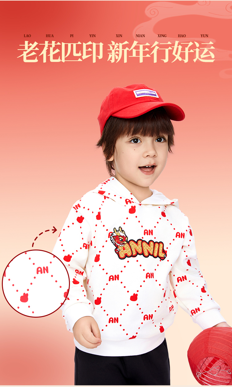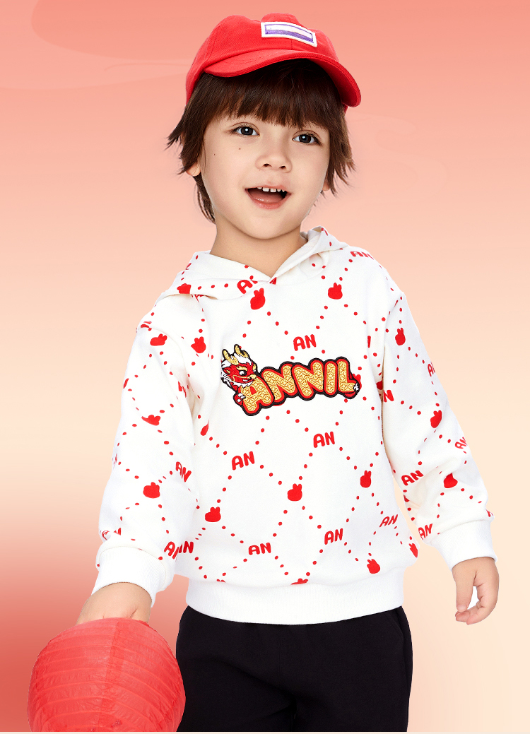 男女童萌趣小龙长袖卫衣带帽新款安奈儿童装实体店同款XM411668