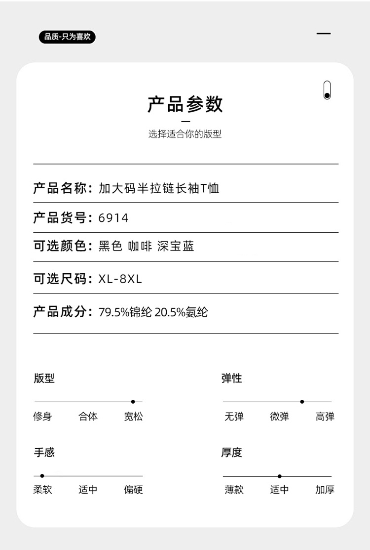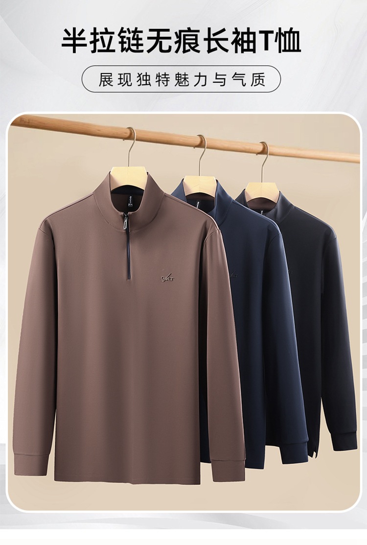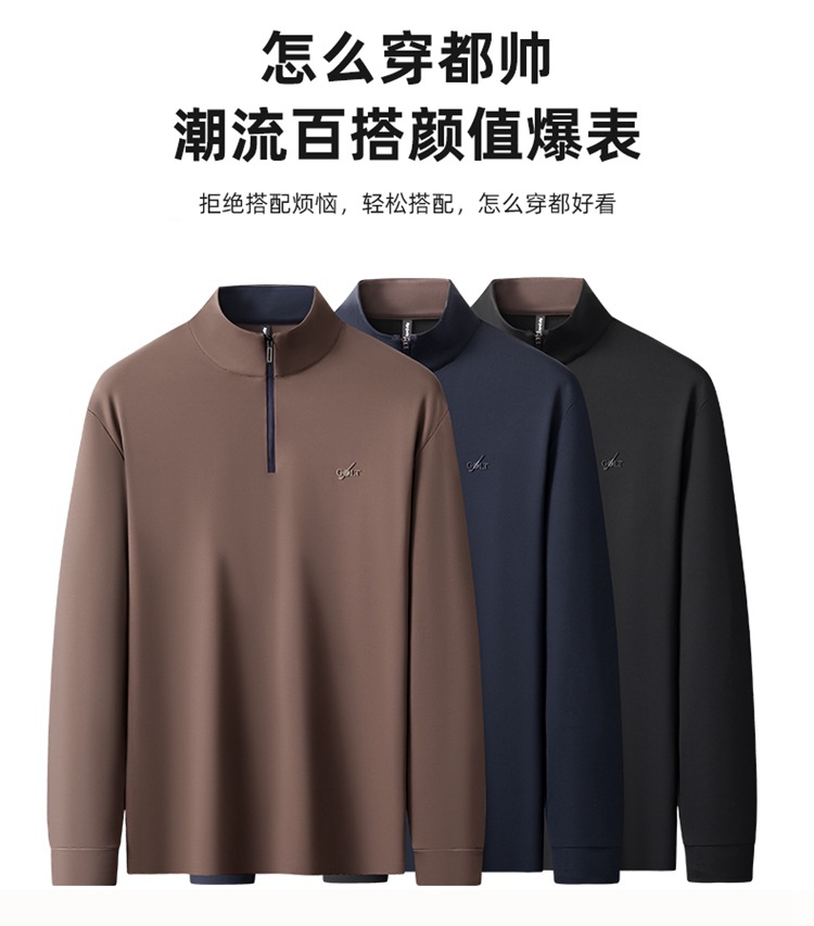 【DK】大依优型大码男装长袖T恤打底衫卫衣秋季立领半拉链休闲商务T恤时尚百搭宽松加肥加大码