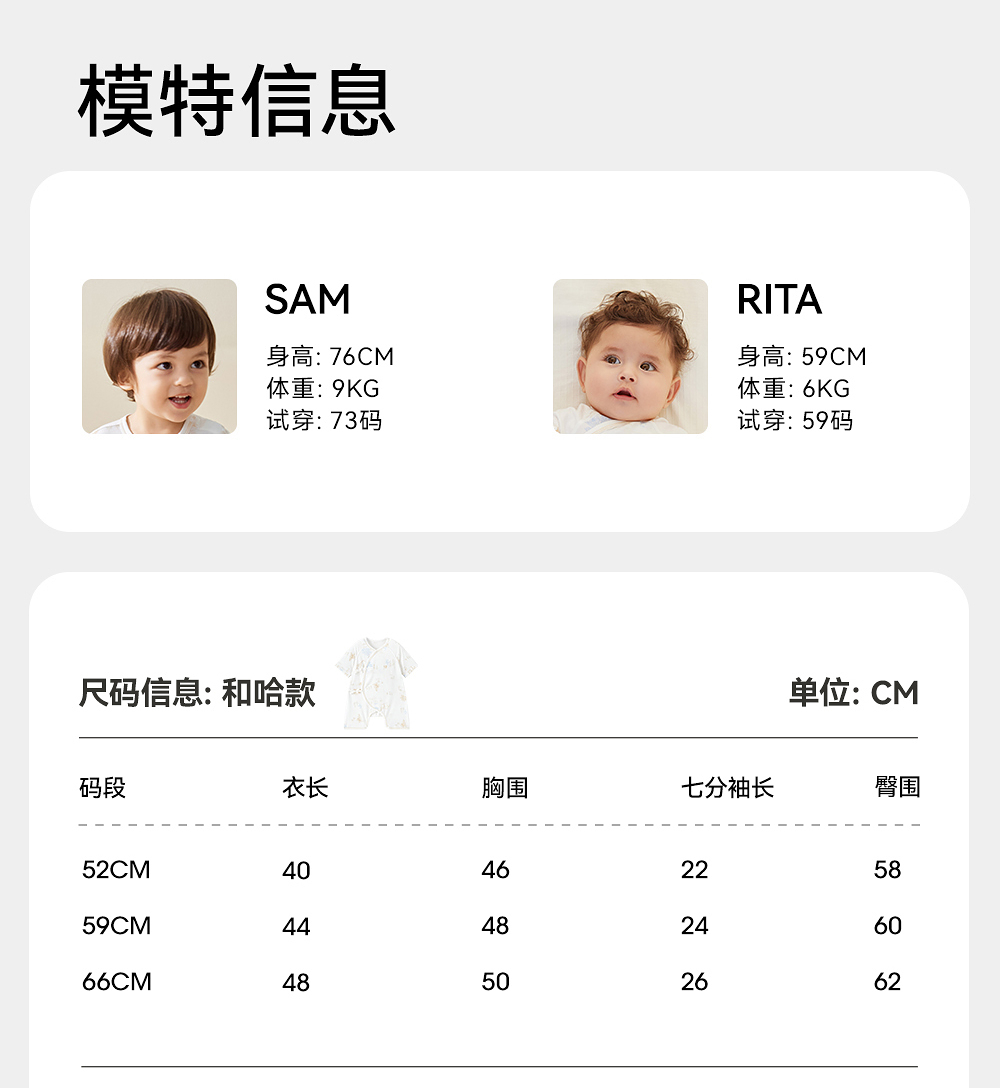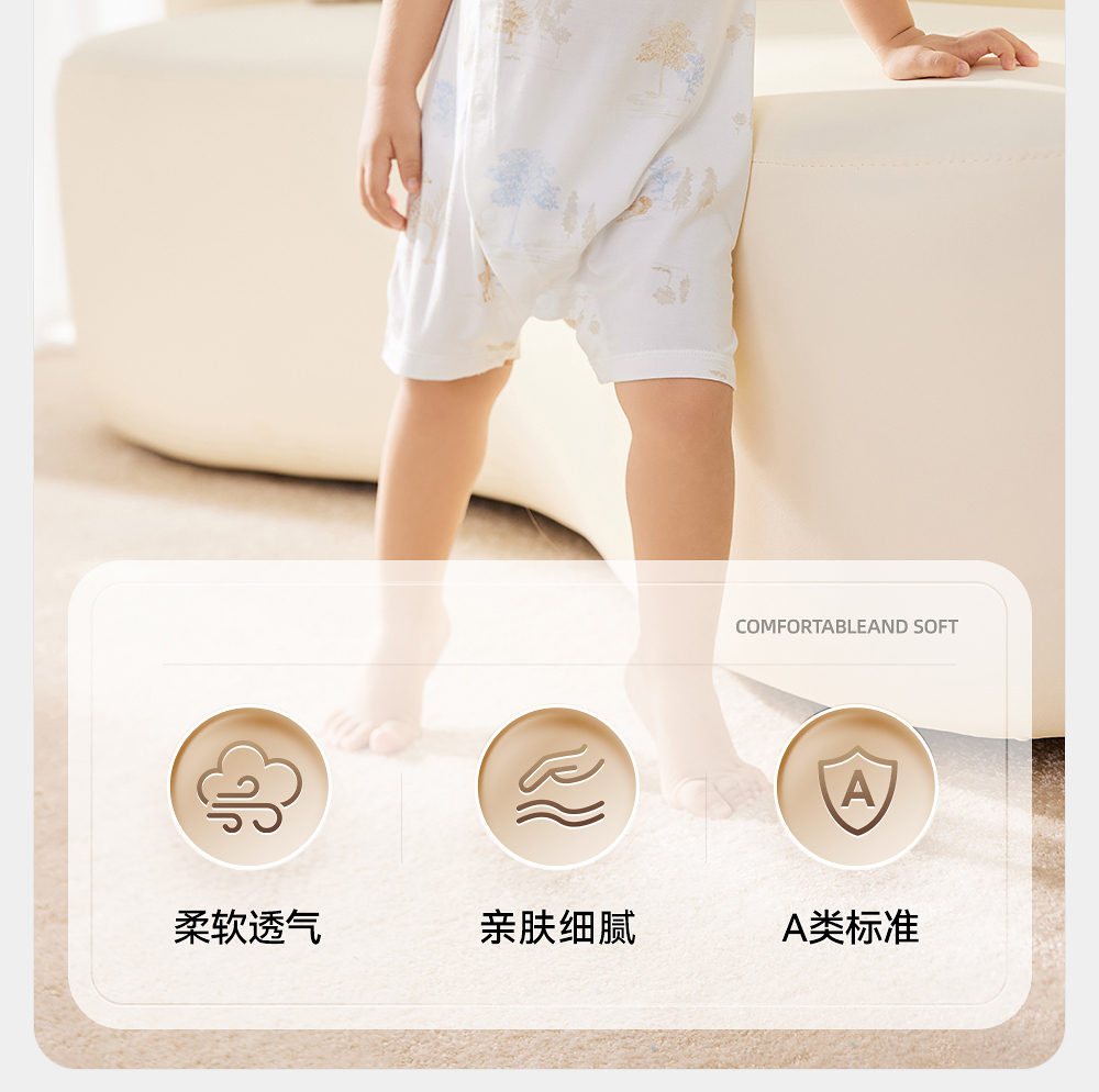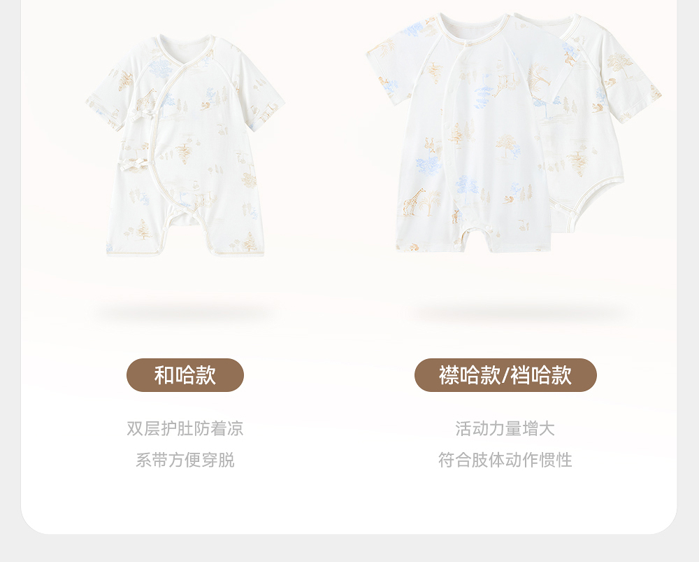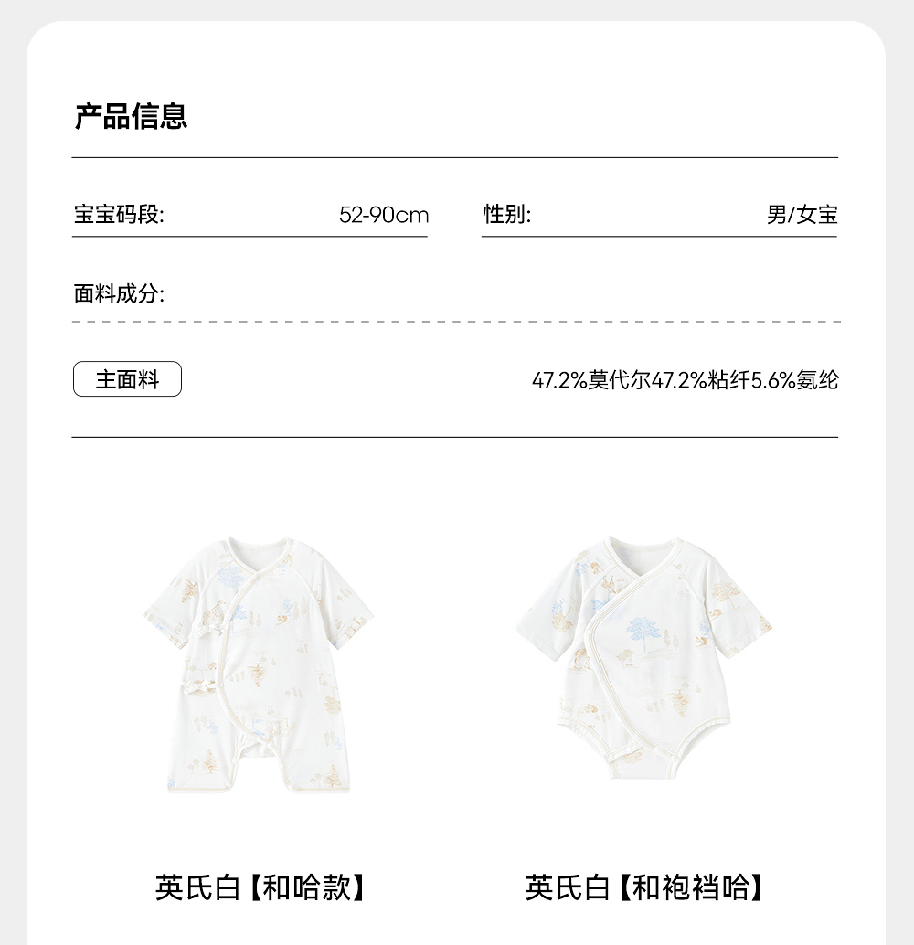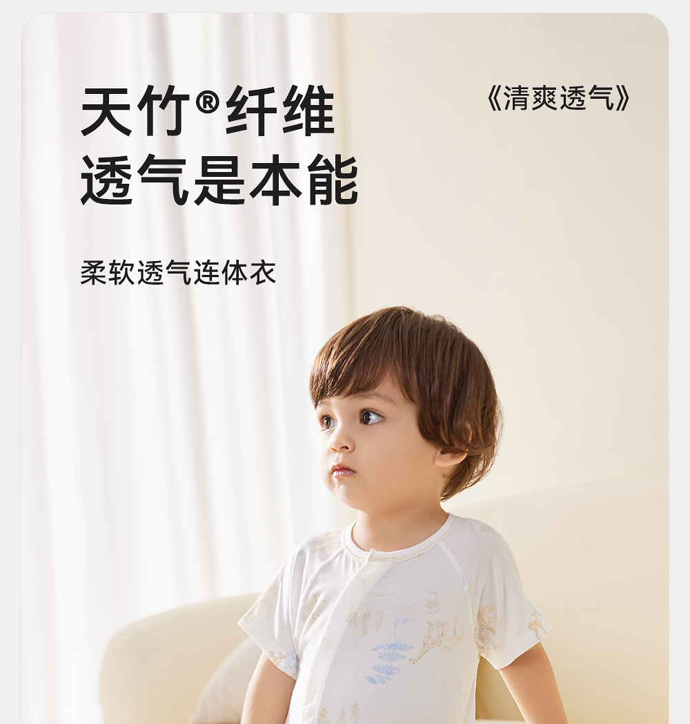 【商场同款】英氏婴儿衣服夏季透气竹纤维新生儿连体衣服新款
