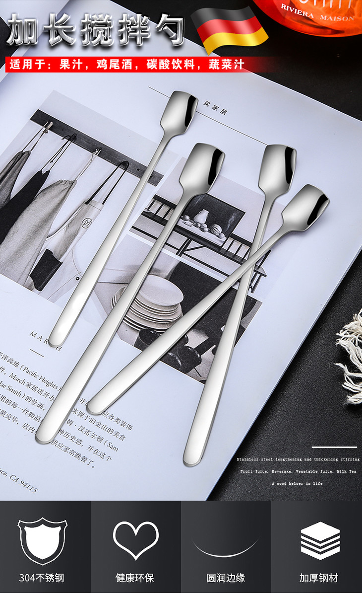 304不锈钢方头搅拌长柄勺