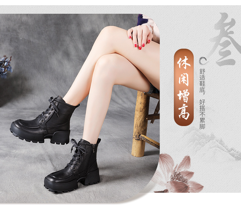 秋冬新款,厚底圆头中筒时装靴大气款洋气马丁靴BC-598-2