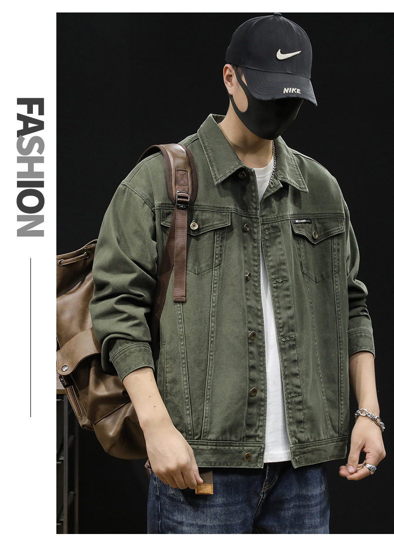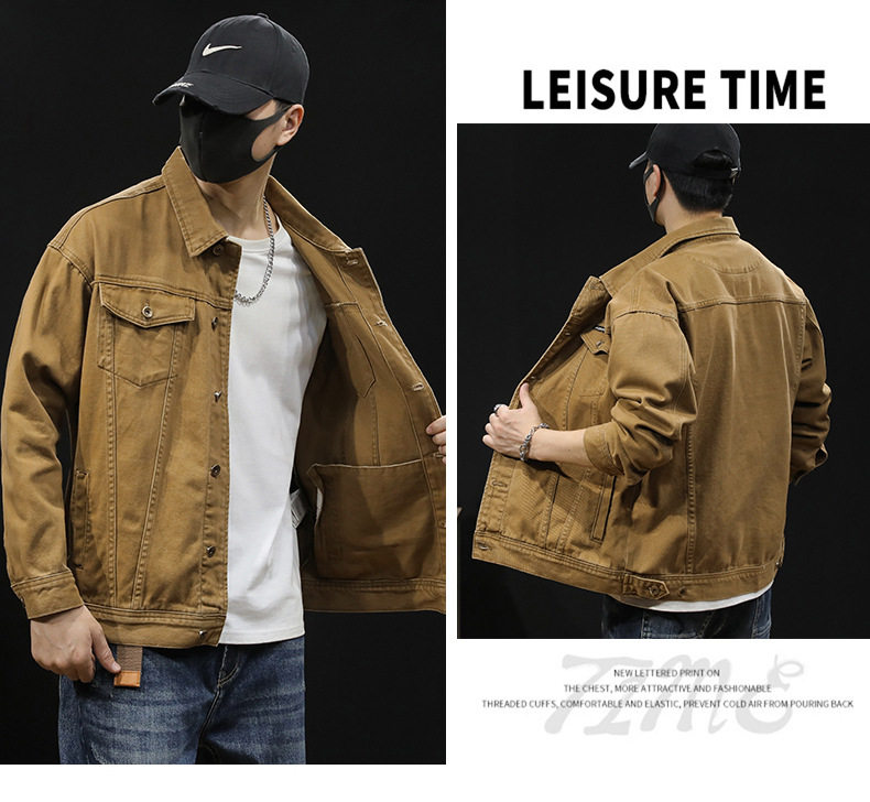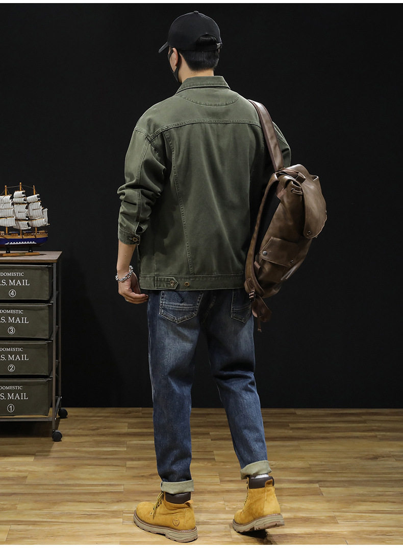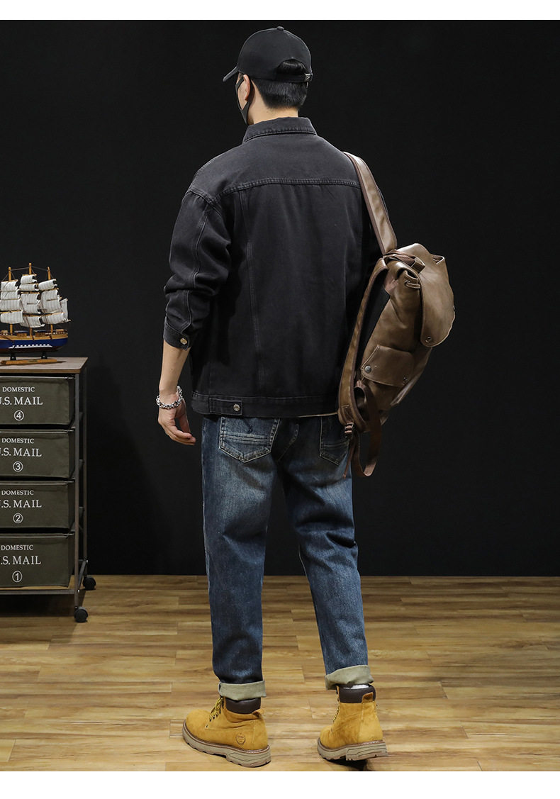 【DYG】大依优型大码男装春秋重磅牛仔夹克复古工装牛仔夹克长袖棉质外套