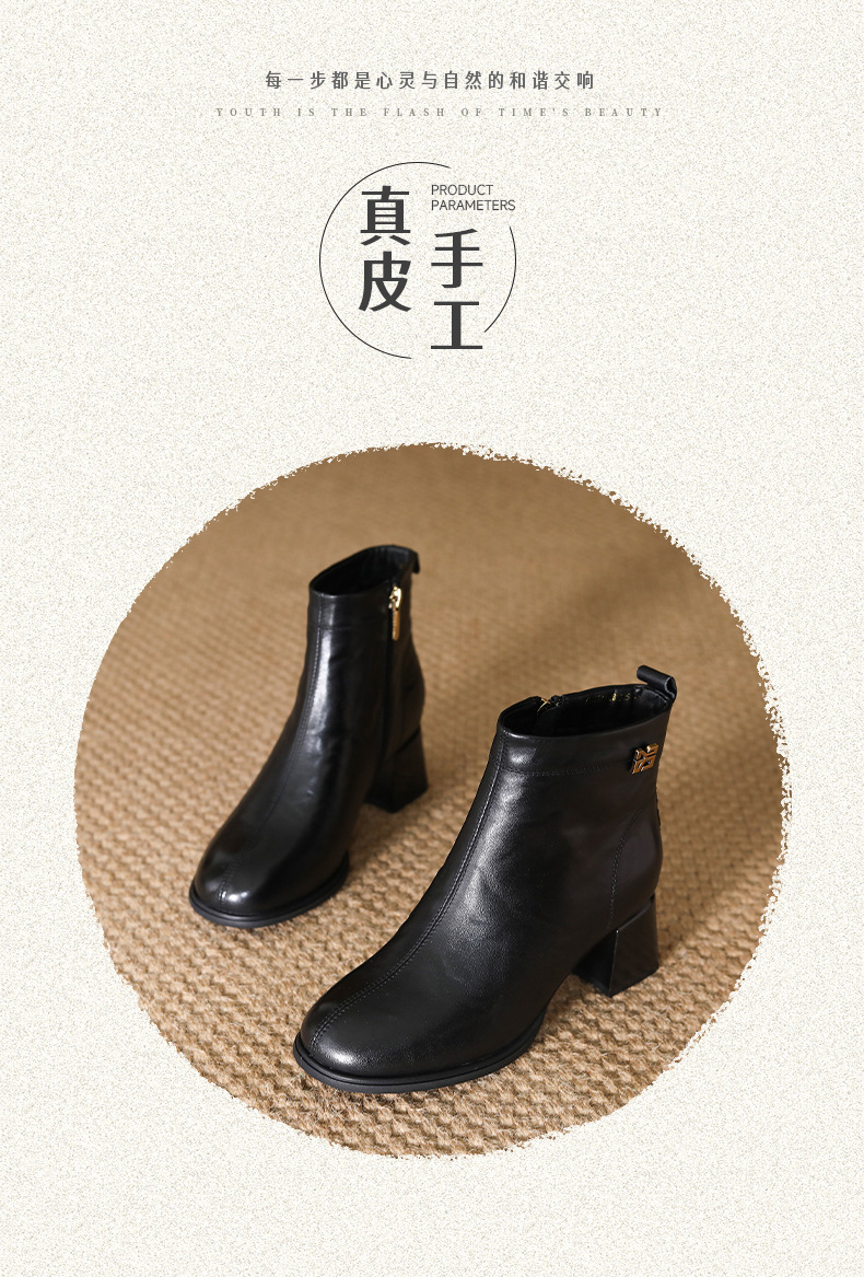 FR 85156圆头粗跟短靴英伦风软底马丁靴 商品图3