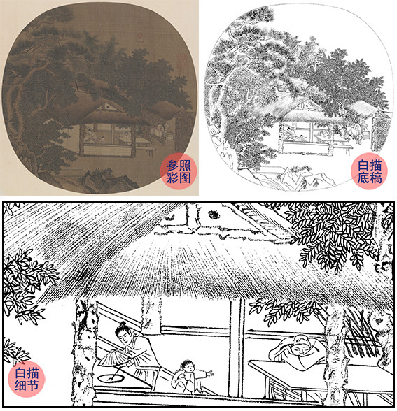 宋画山水人物小品白描底稿-佚名 《征人晓发图》-多种白描尺寸可选-GS29