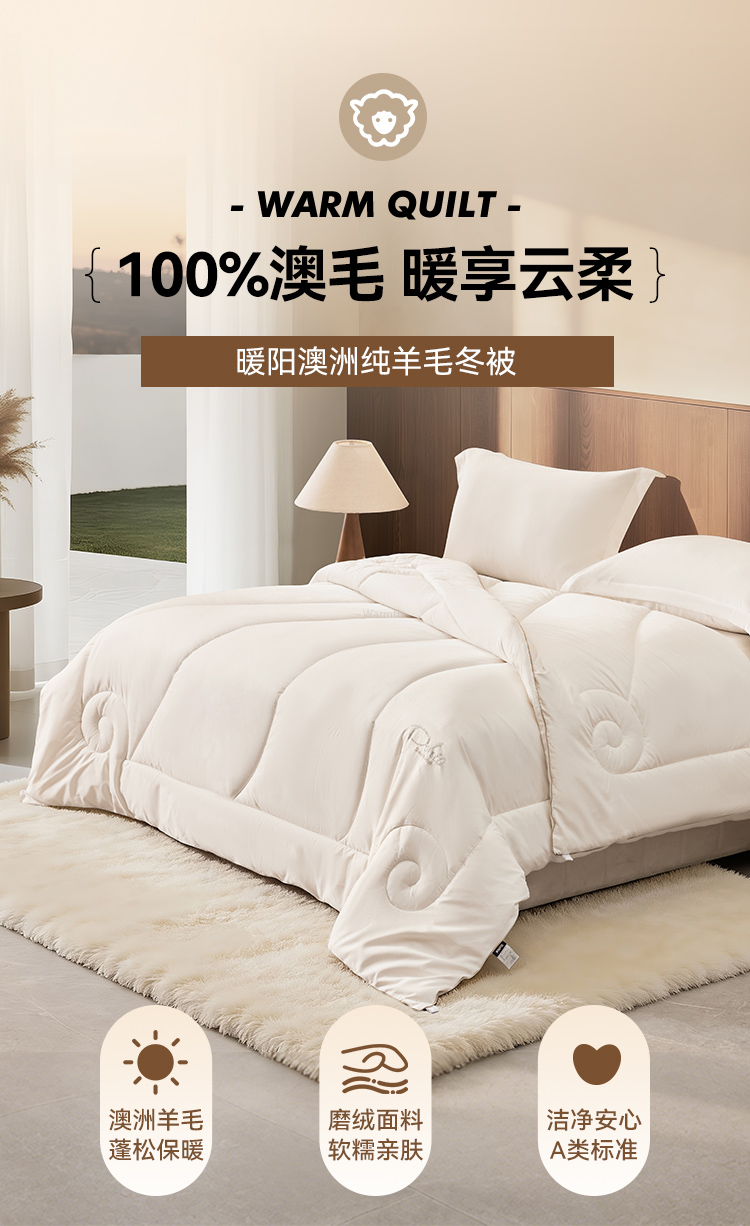 多喜爱 暖阳澳洲纯羊毛冬被【100%澳洲进口羊毛】【磨绒面料】蓄热保暖 精美织带 烫钻工艺