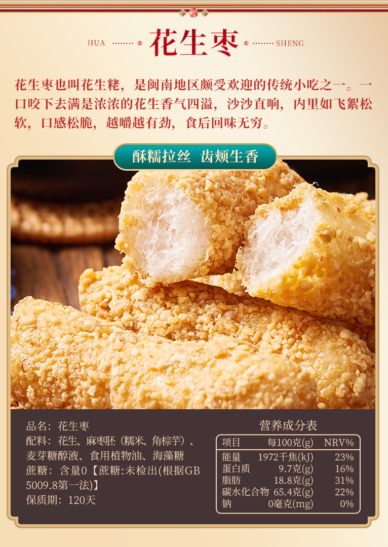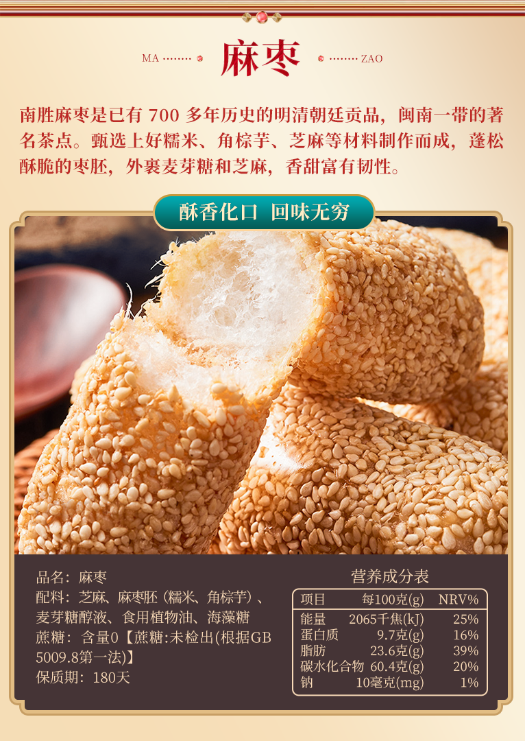 【国潮佳品 年味好礼 皮酥而脆】福建闽南非遗特产南胜麻枣 芝麻/花生 480g