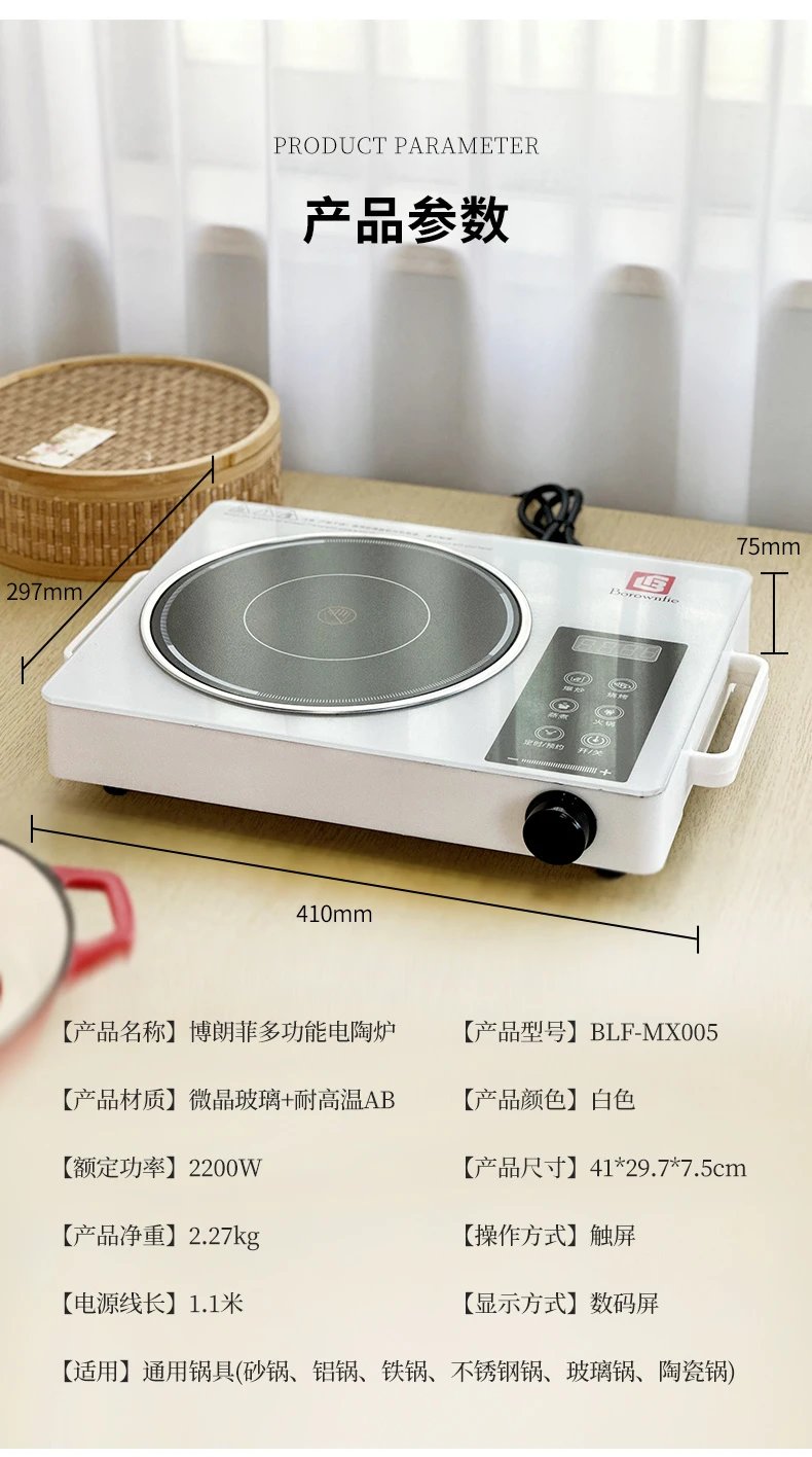 【周末半价团】原价199️现仅99库存不多清完下架博朗菲Borownfie多功能电陶炉温控精准安全省电2200W大功率大火力爆炒微晶玻璃面板耐高温防爆裂易清洁基地直邮