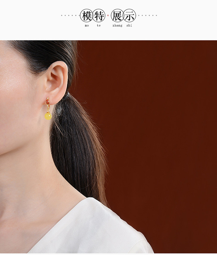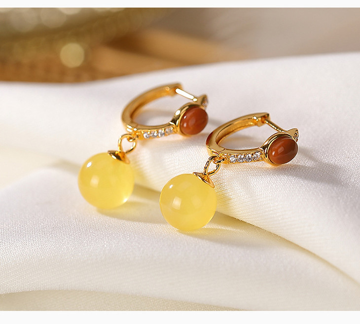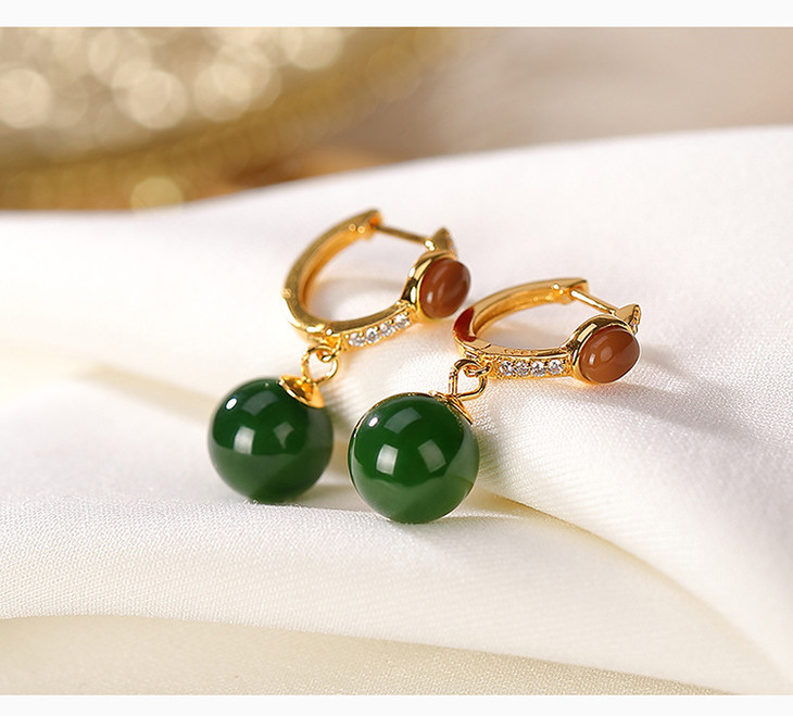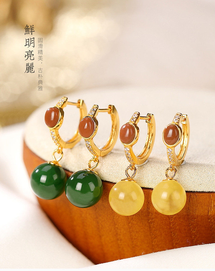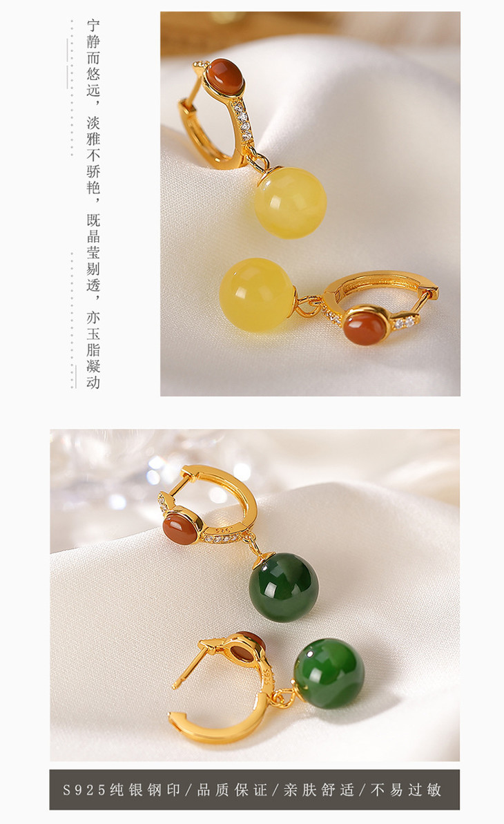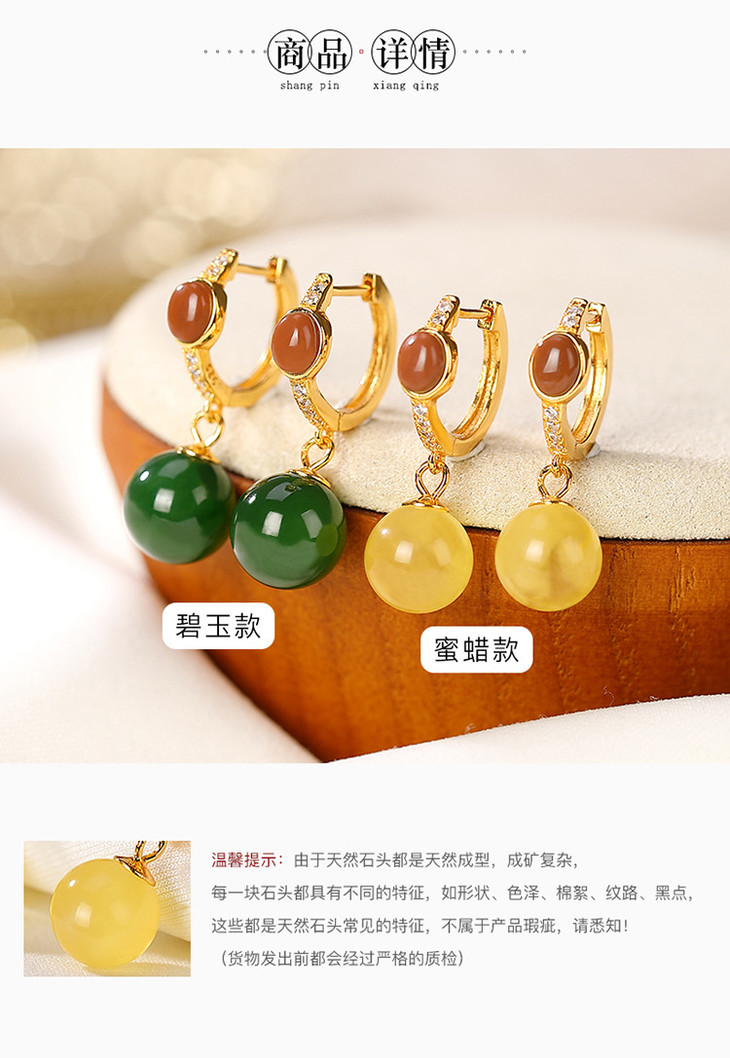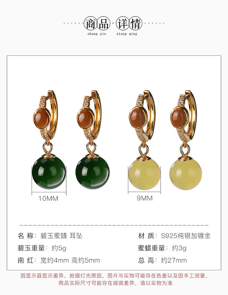 CWSS新款轻奢优雅气质S925纯银镀金玉碧玉蜜蜡耳坠