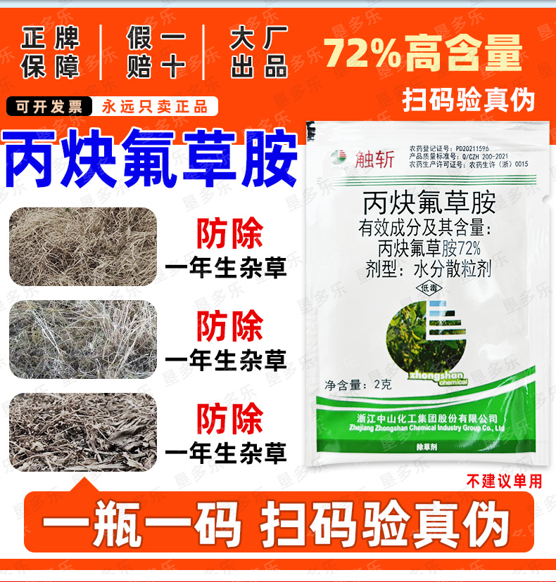 72%丙炔氟草胺除草剂升级版高含量老牌子丙炳快弗草安封闭除草剂