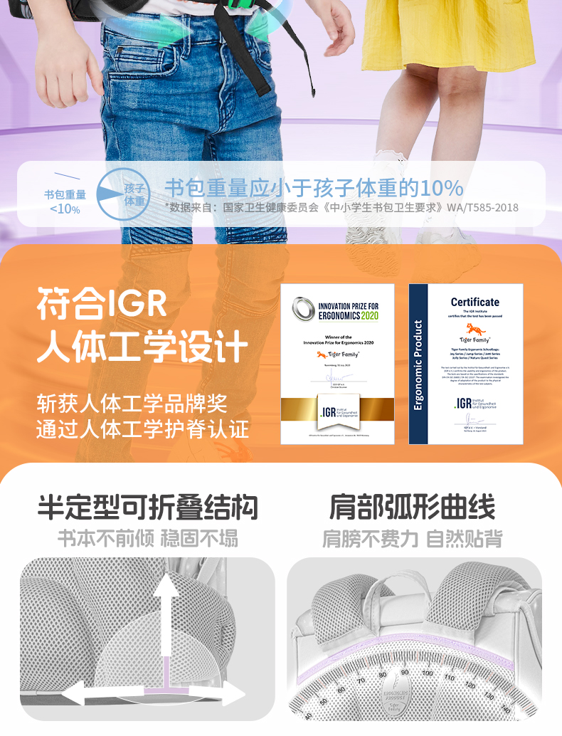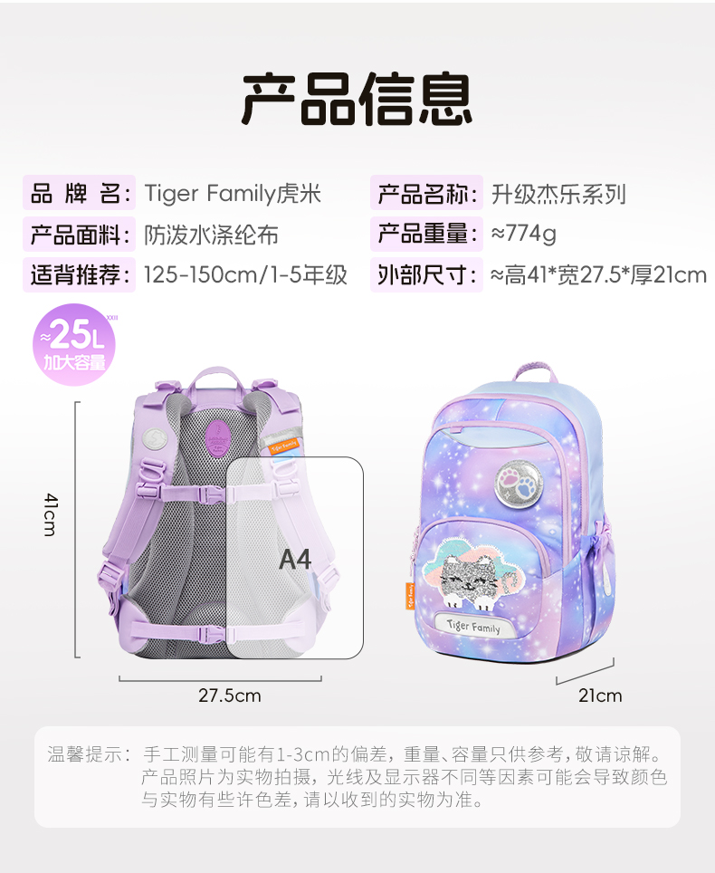 【新品】tigerfamily虎米儿童书包小学生女男孩减负护脊双肩包升级杰乐