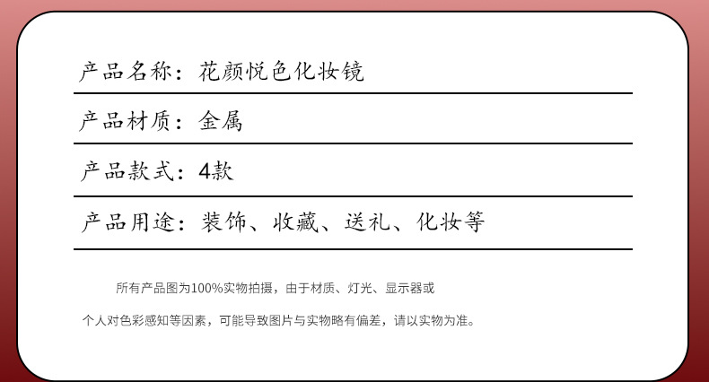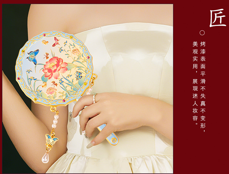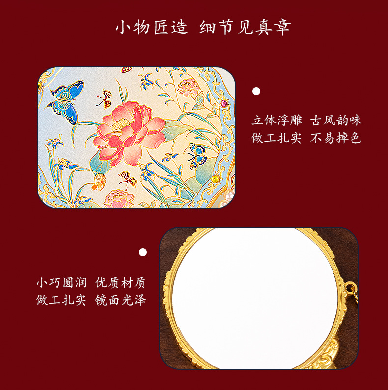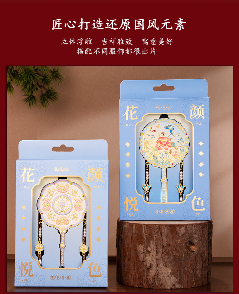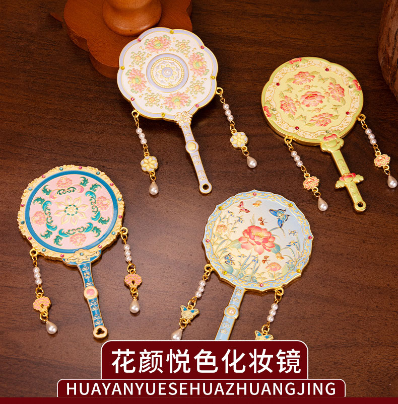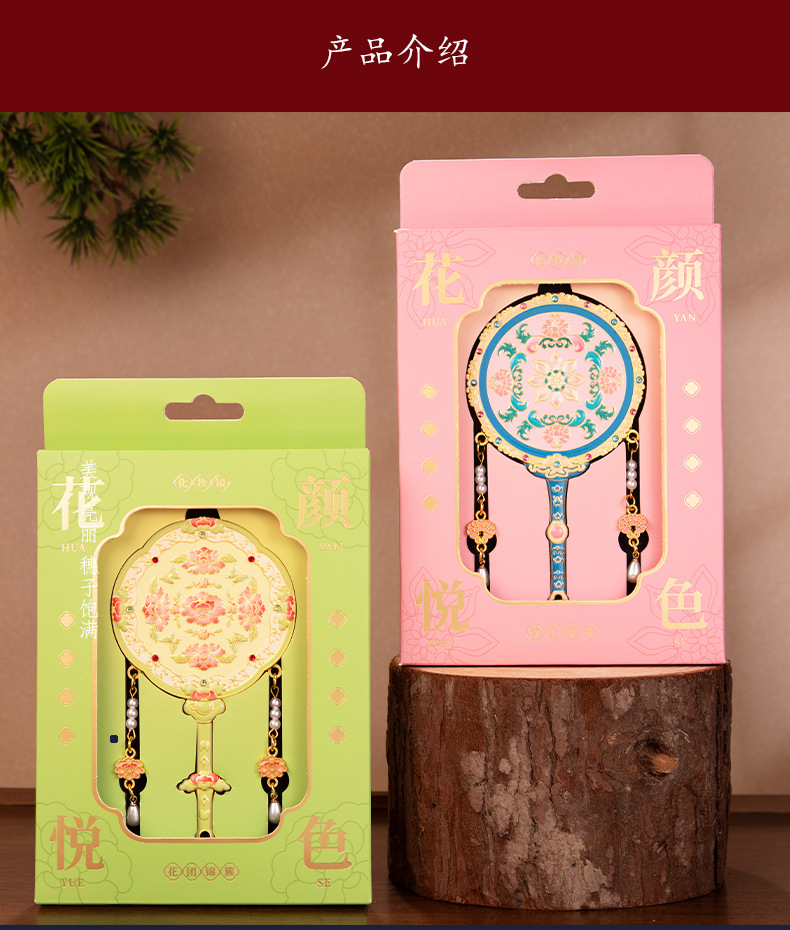 【花颜悦色金属手持化妆镜】中式纪念品伴手礼送闺蜜生日礼物