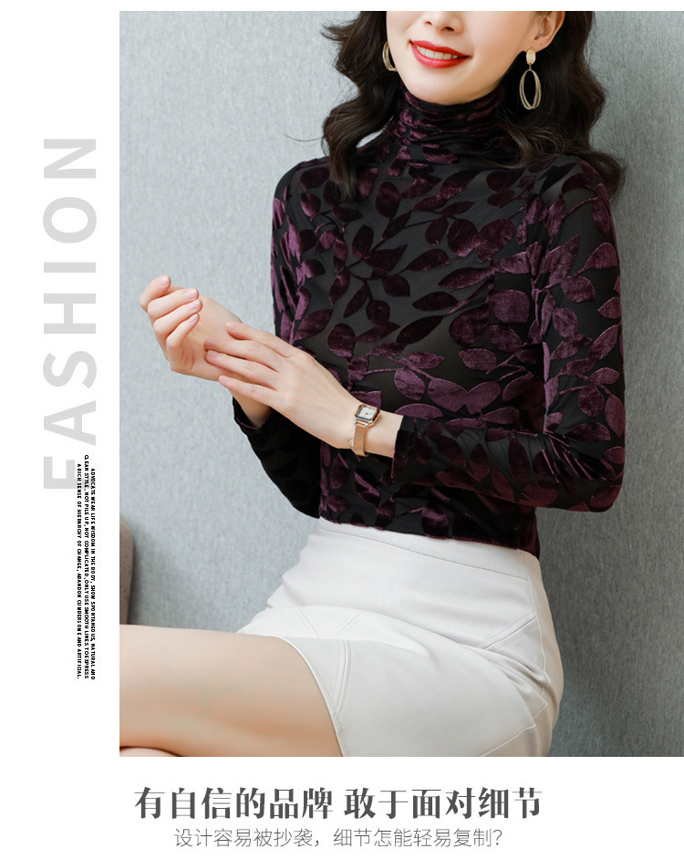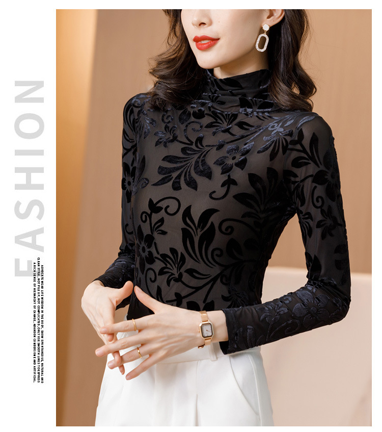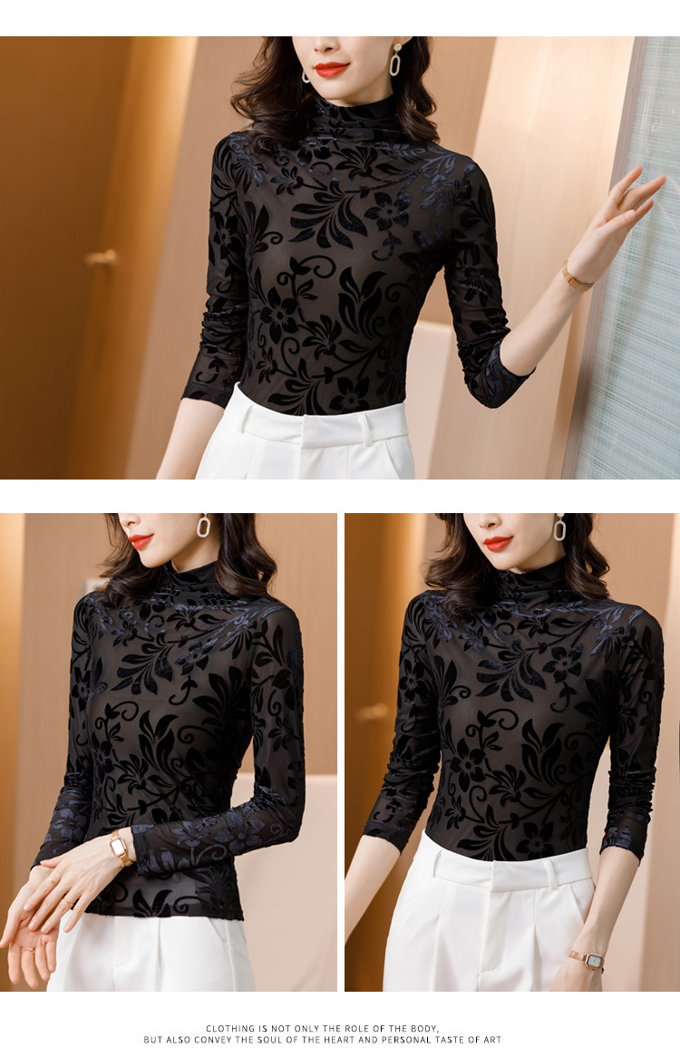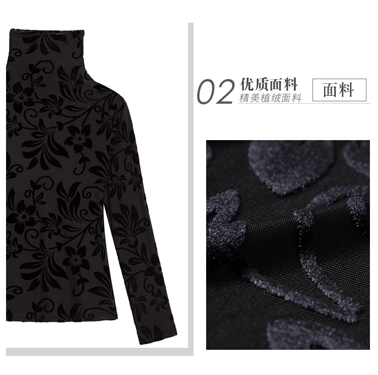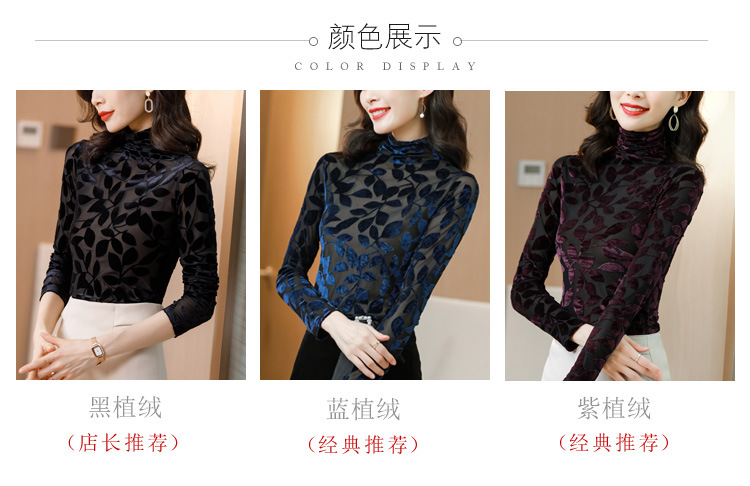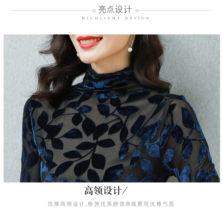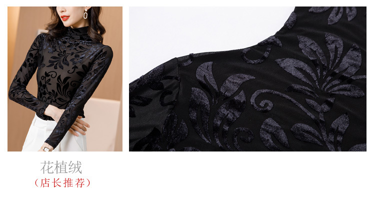 雀说 秋冬高领丝绒网纱打底衫女长袖t恤内搭修身上衣3ZF-MZ7082
