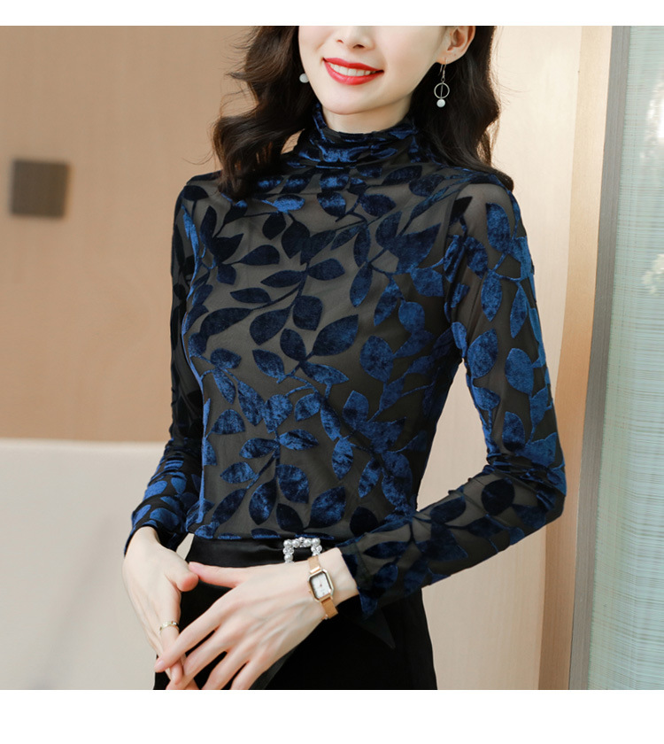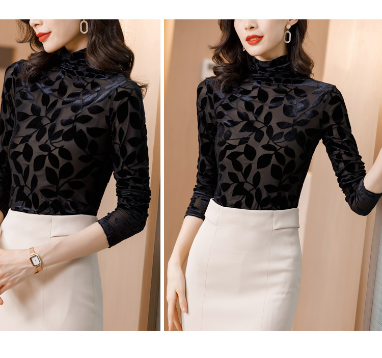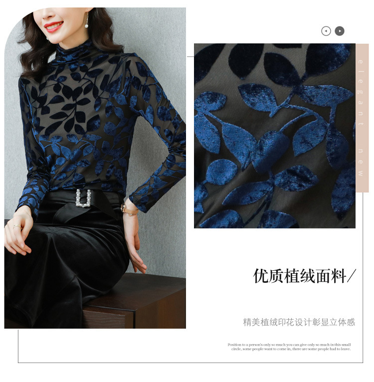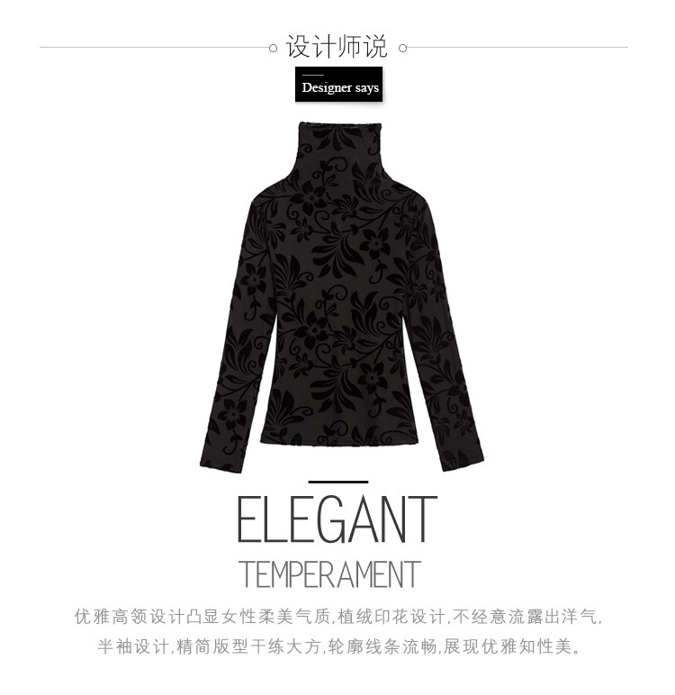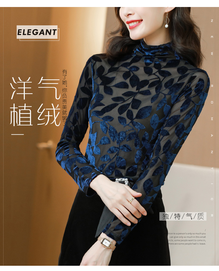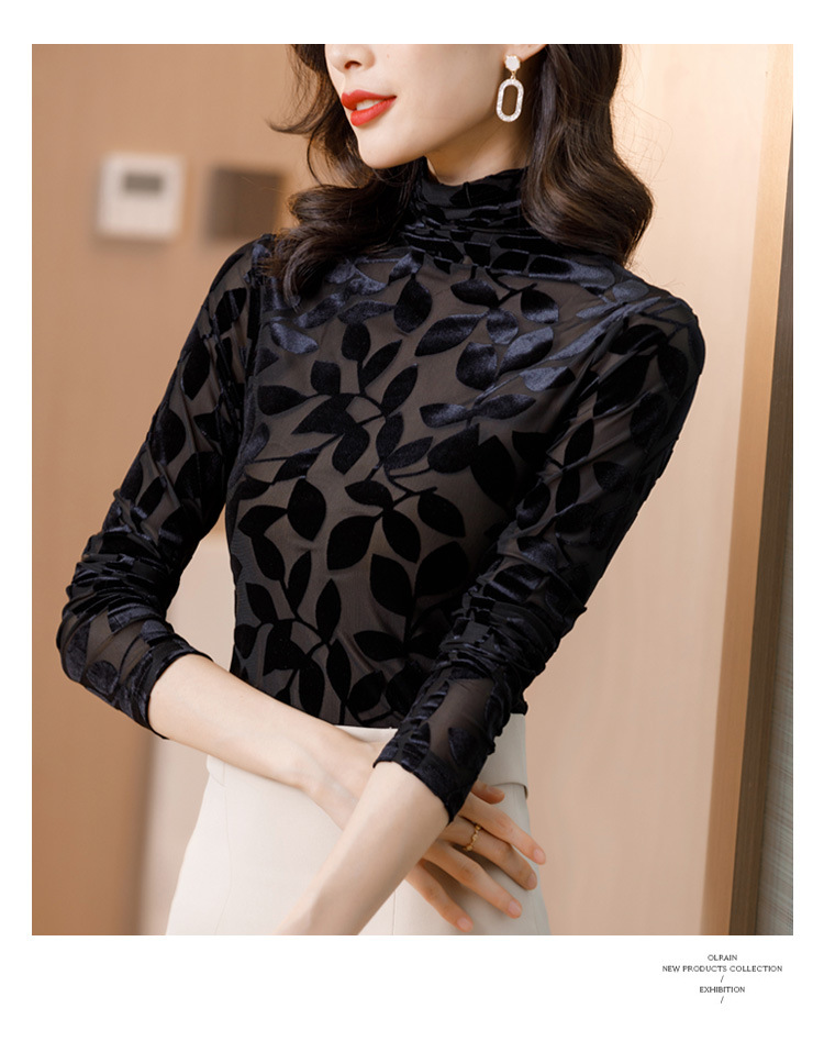 雀说 秋冬高领丝绒网纱打底衫女长袖t恤内搭修身上衣3ZF-MZ7082
