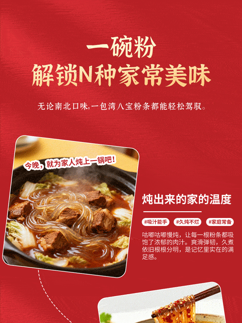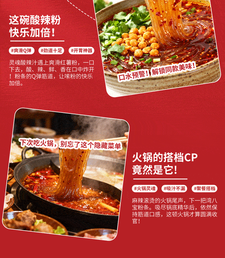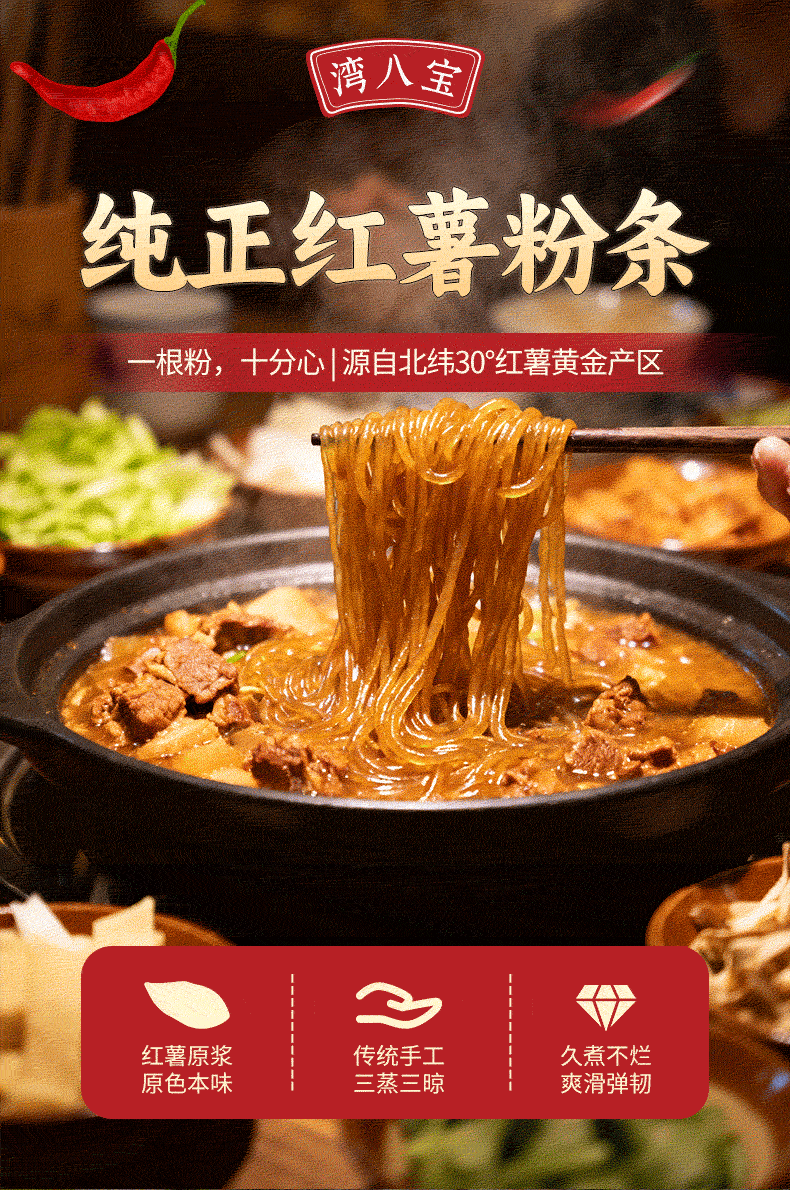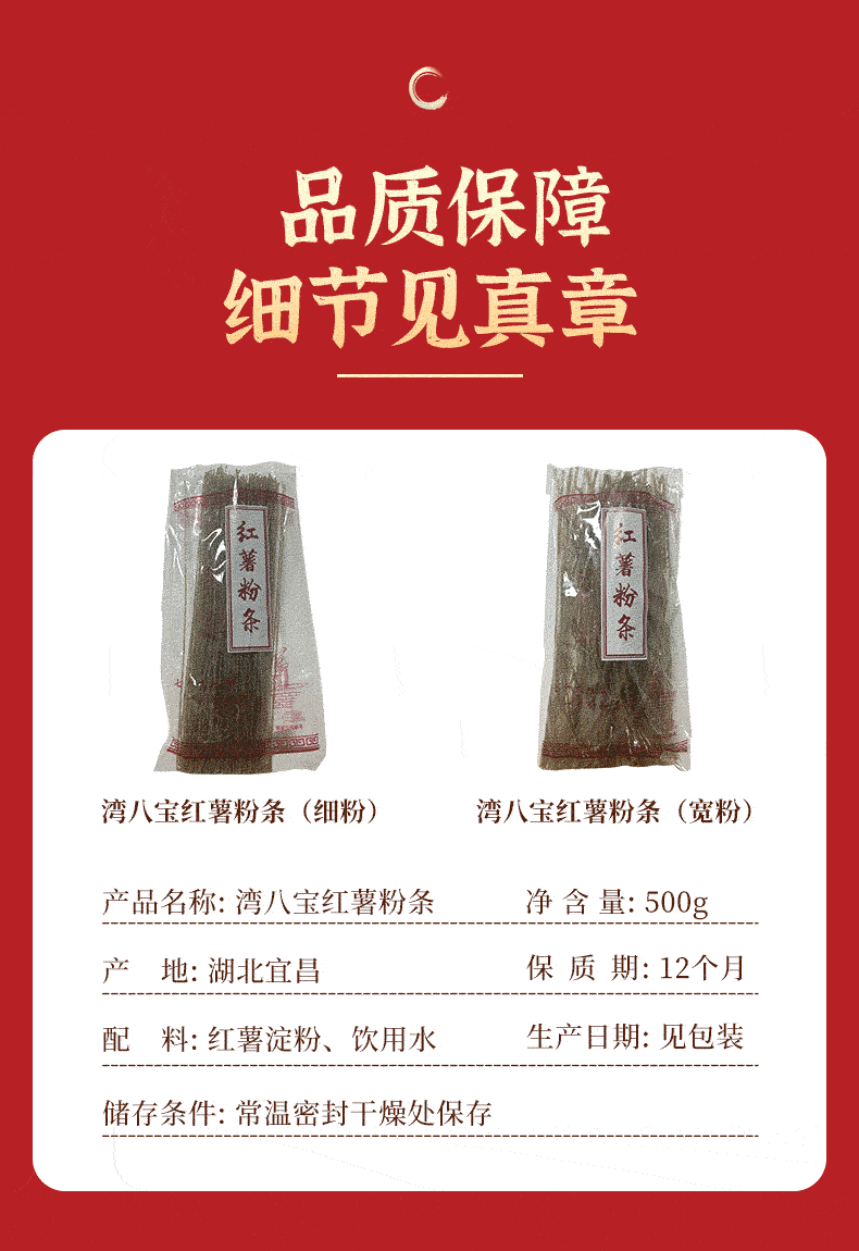 五峰湾八宝正宗红薯粉丝粉条细粉宽粉500g*2袋