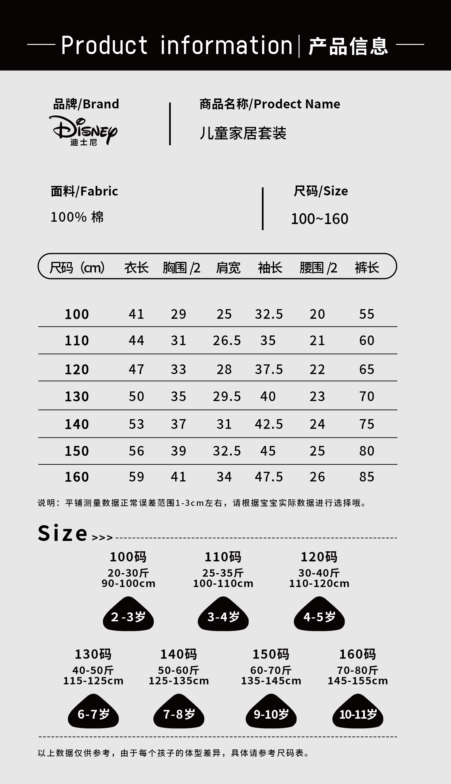 【品名】三枪迪士尼儿童长袖 棉套装