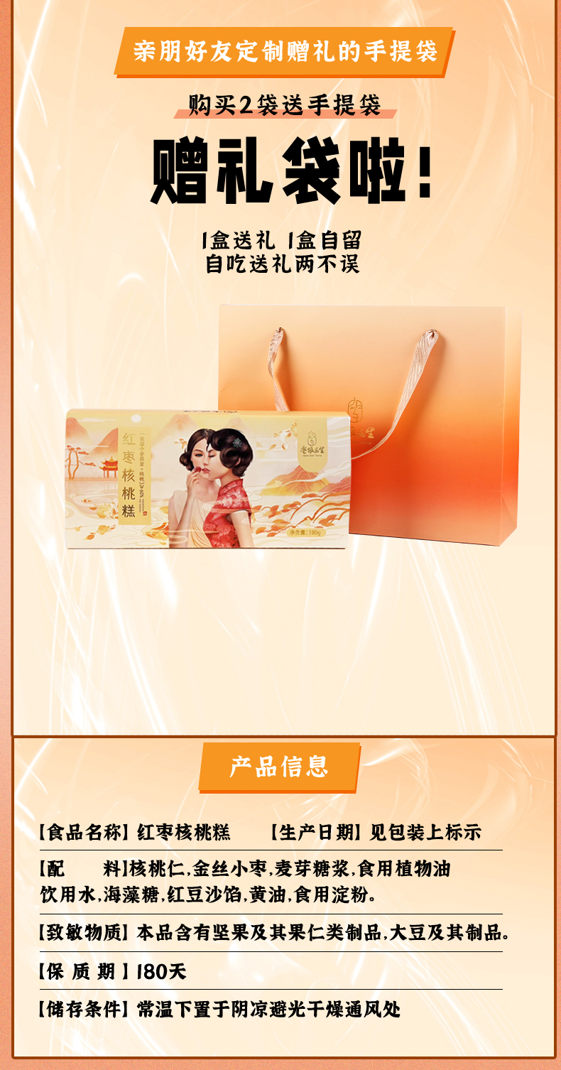 【下单即送手提袋!】枣粮先生红枣核桃糕 金丝小枣酥脆核桃 口感软糯 香甜有嚼劲 将康养生小零食 送礼佳品 180g/盒