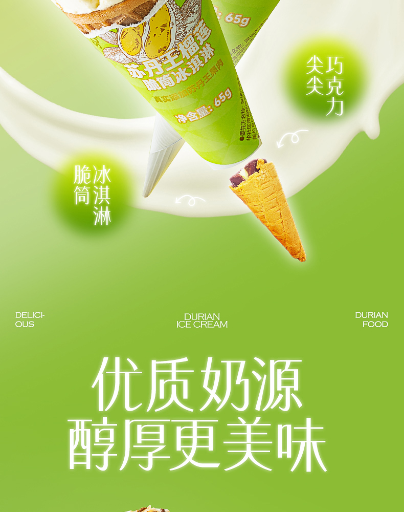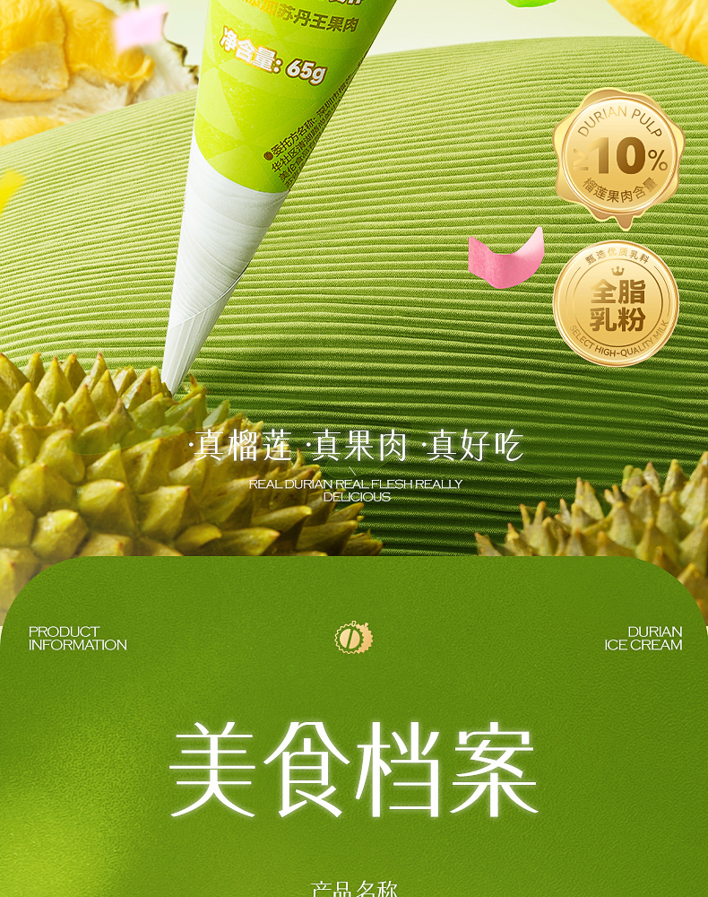 【榴芒一刻】苏丹王榴莲脆筒冰淇淋65g组合装