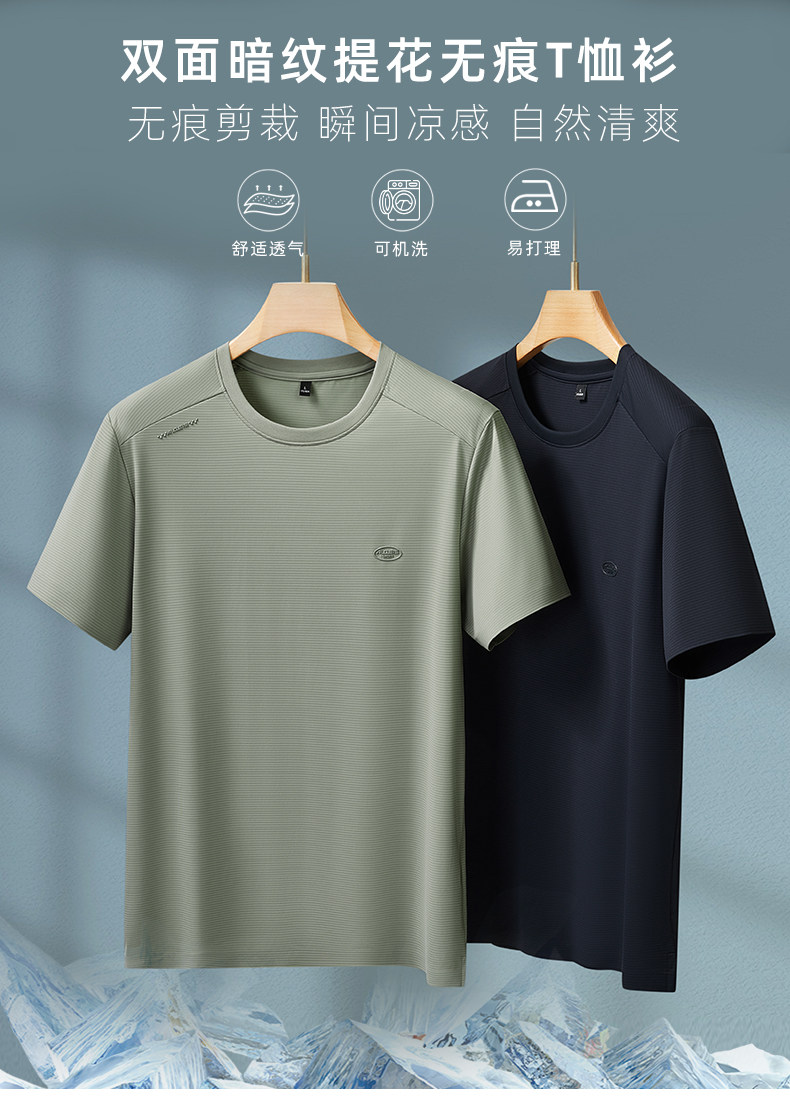【DKP】大依优型大码男装螺纹圆领短袖T恤双面暗纹提花无痕T恤衫运动休闲
