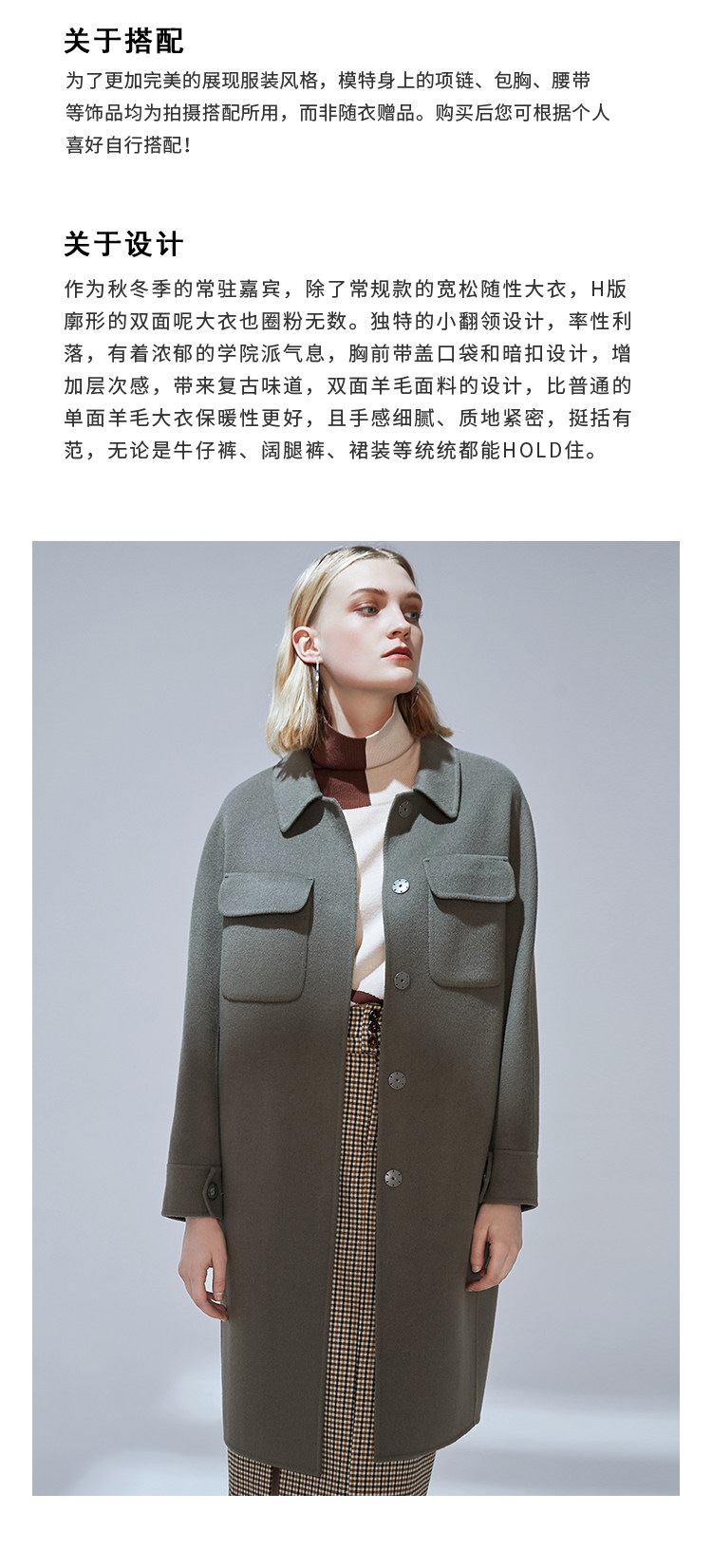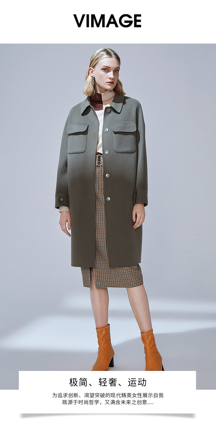 VIMAGE纬漫纪冬款洋气复古廓形直筒显瘦羊毛呢大衣女外套V1414013