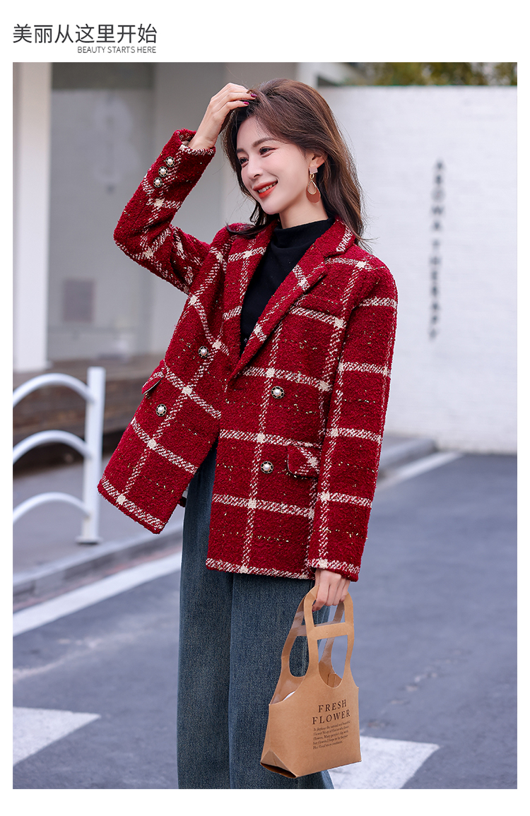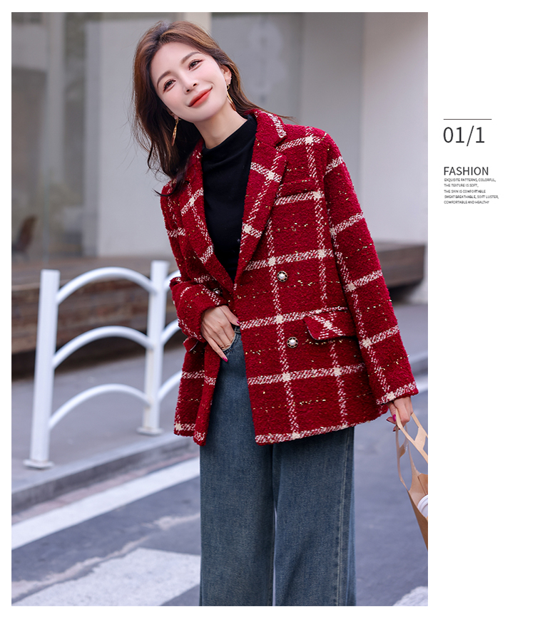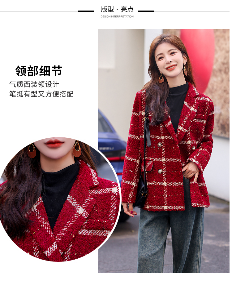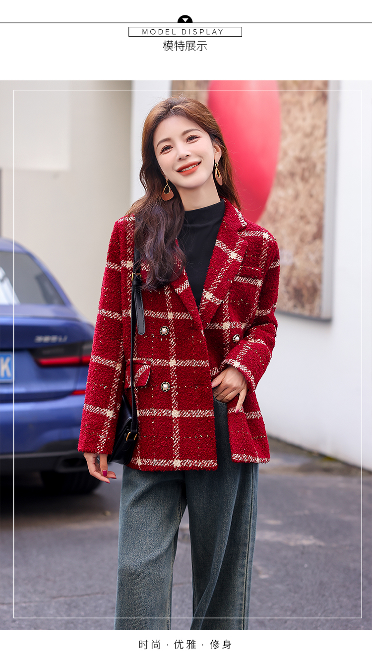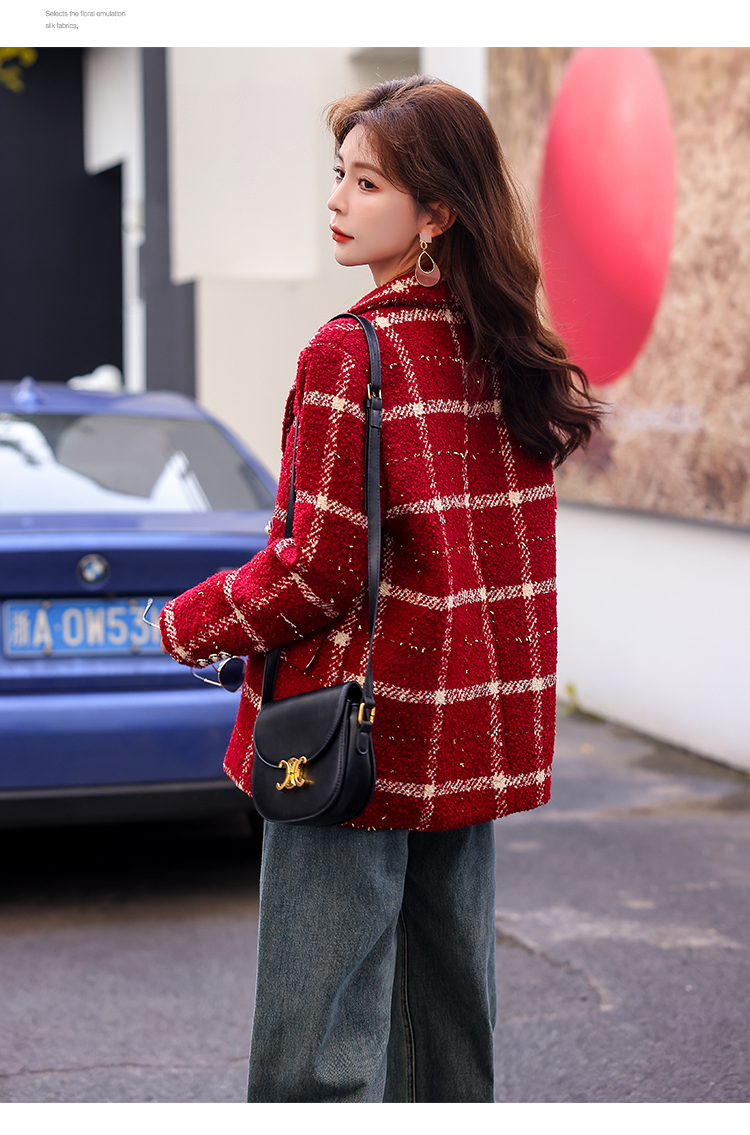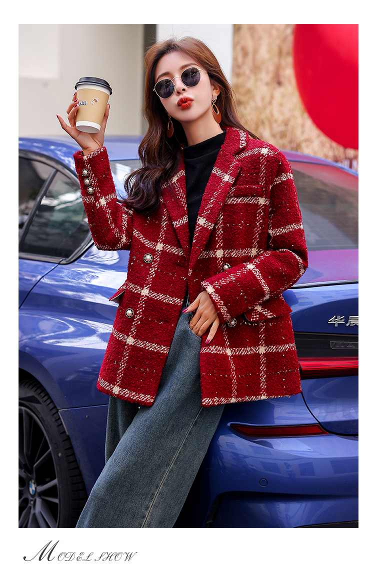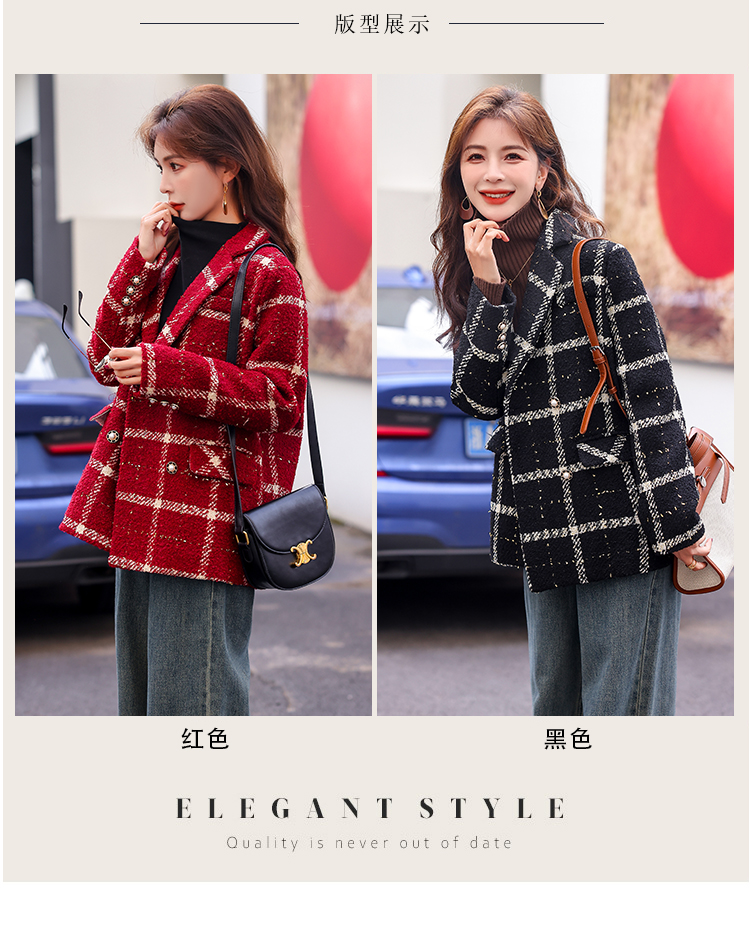 冬季新款,小香风外套女气质粗花呢红格子加厚90白鸭绒羽绒服HR-MYL8205
