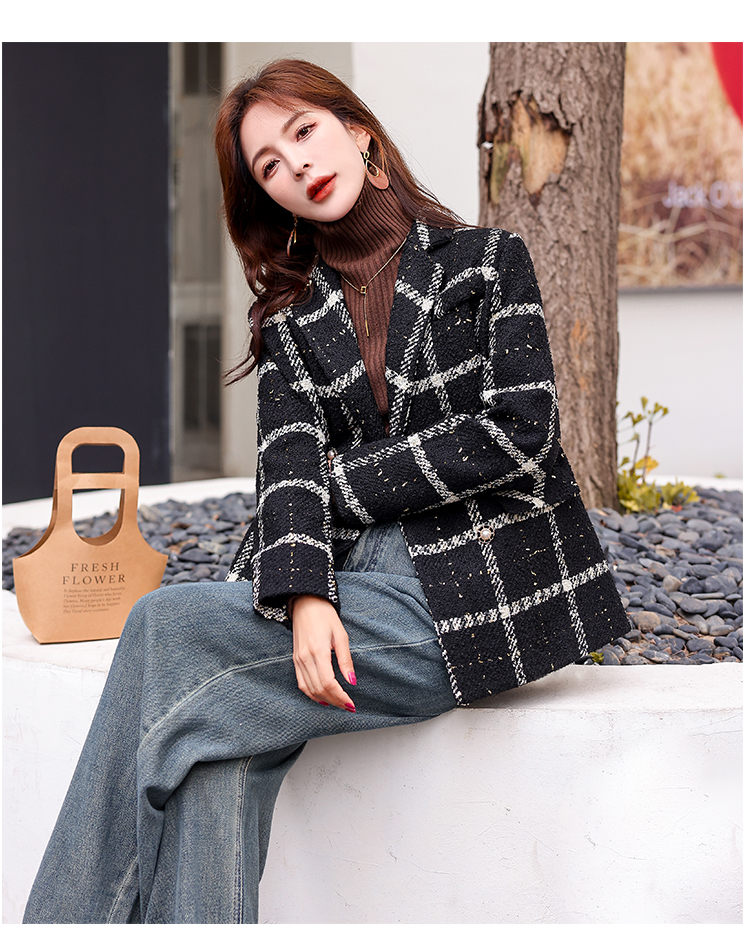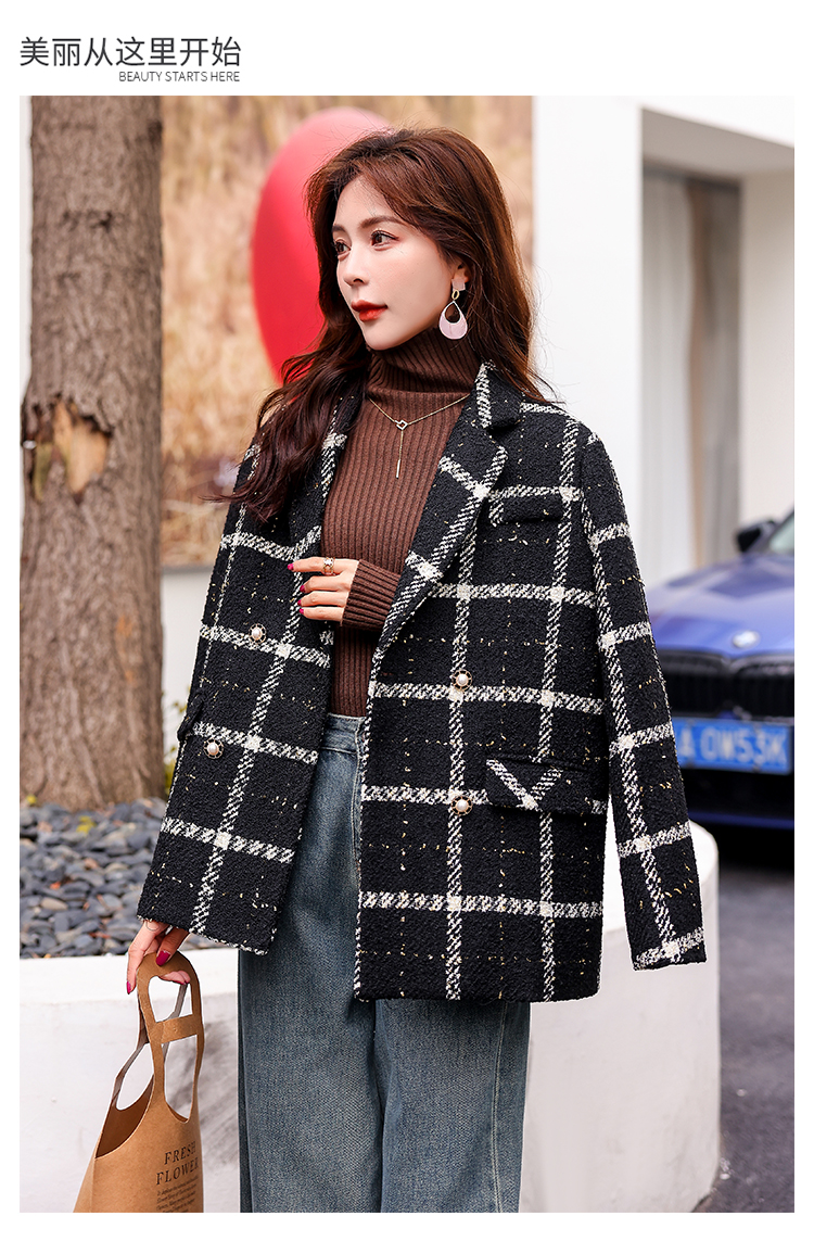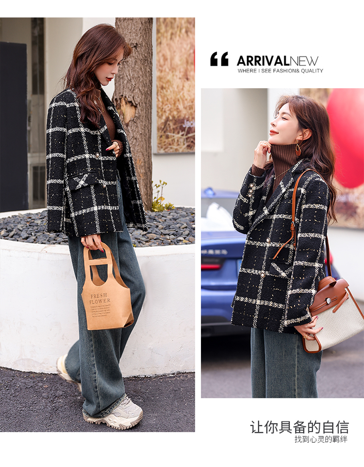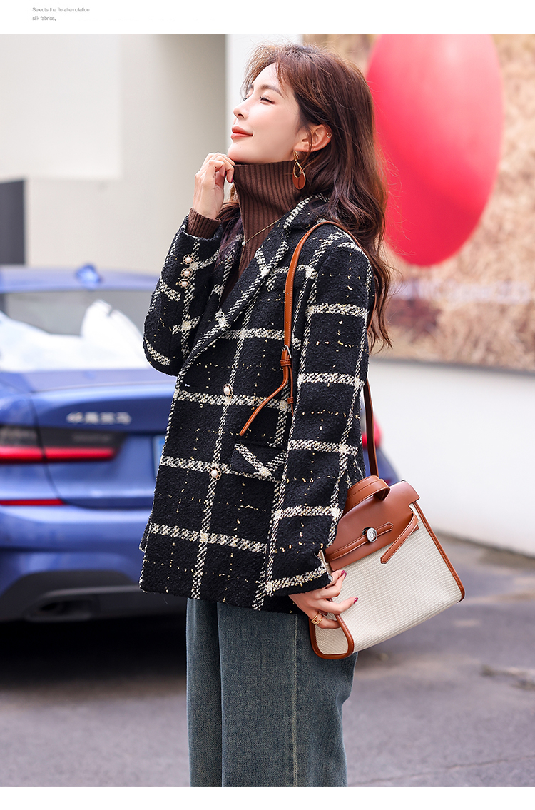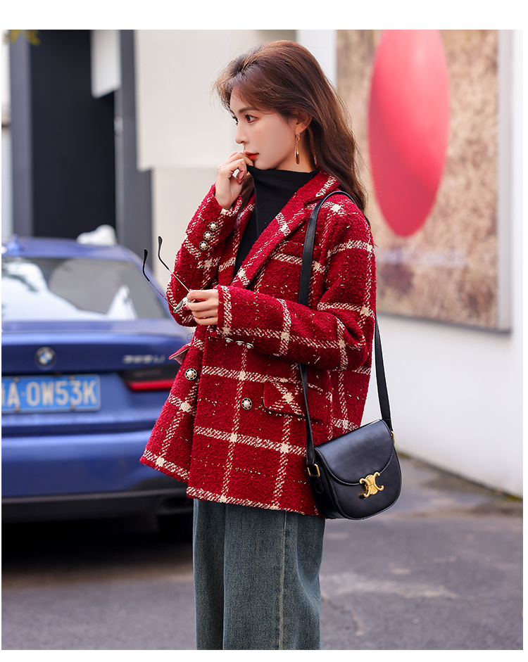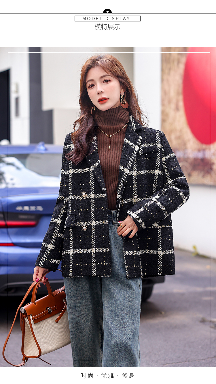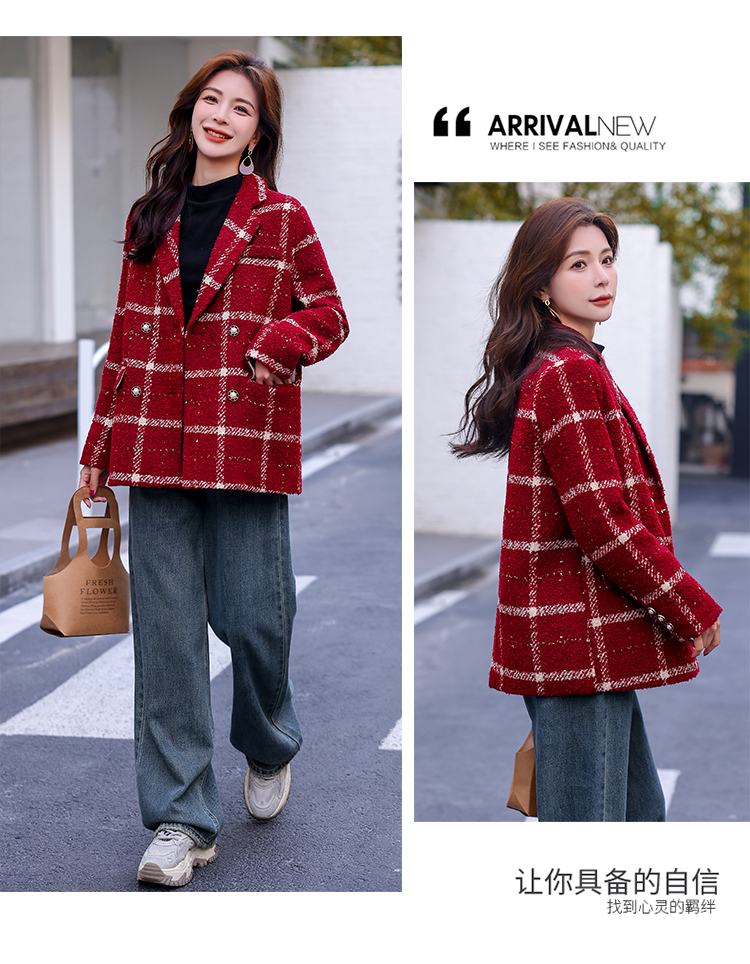 冬季新款,小香风外套女气质粗花呢红格子加厚90白鸭绒羽绒服HR-MYL8205