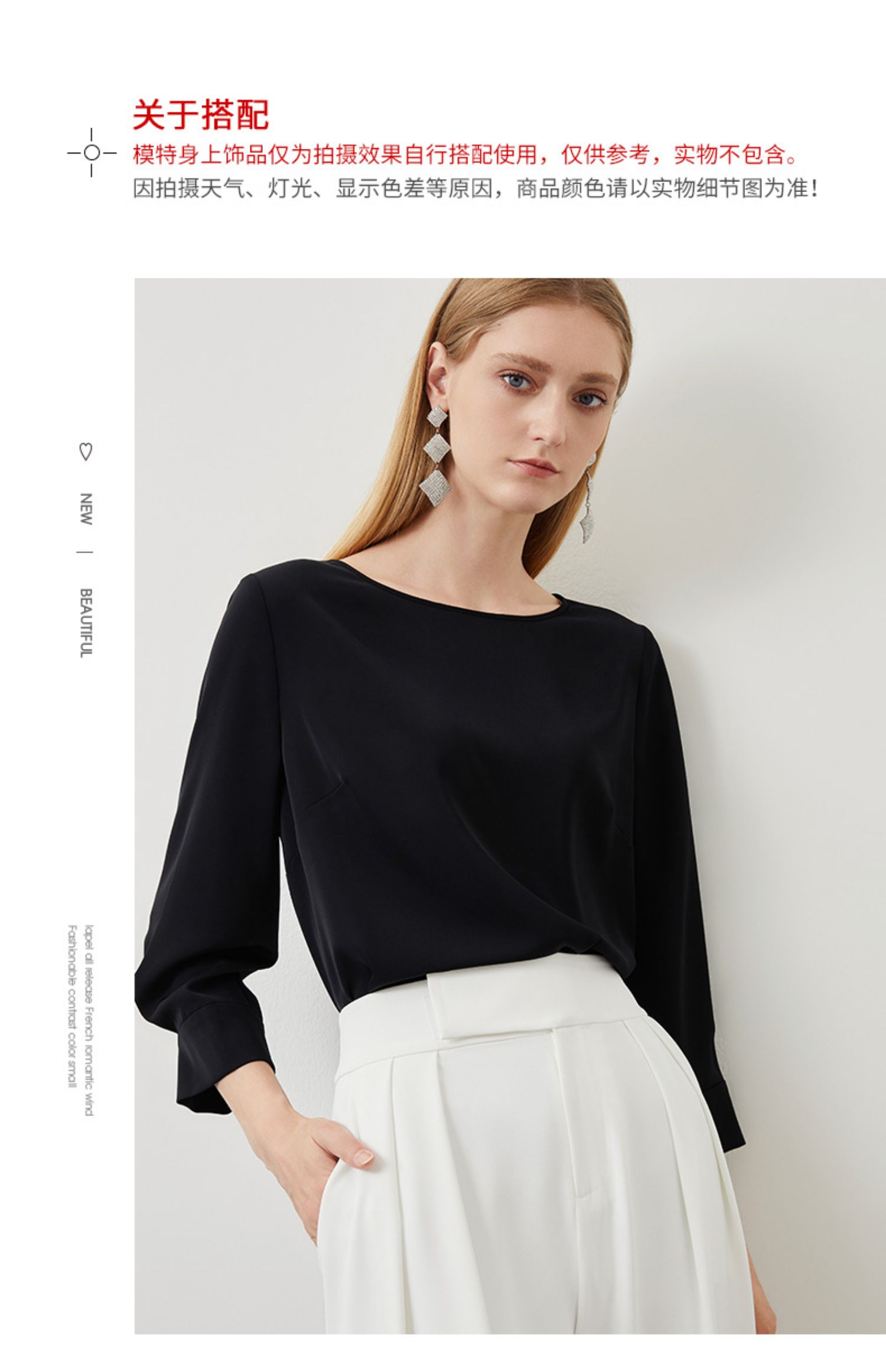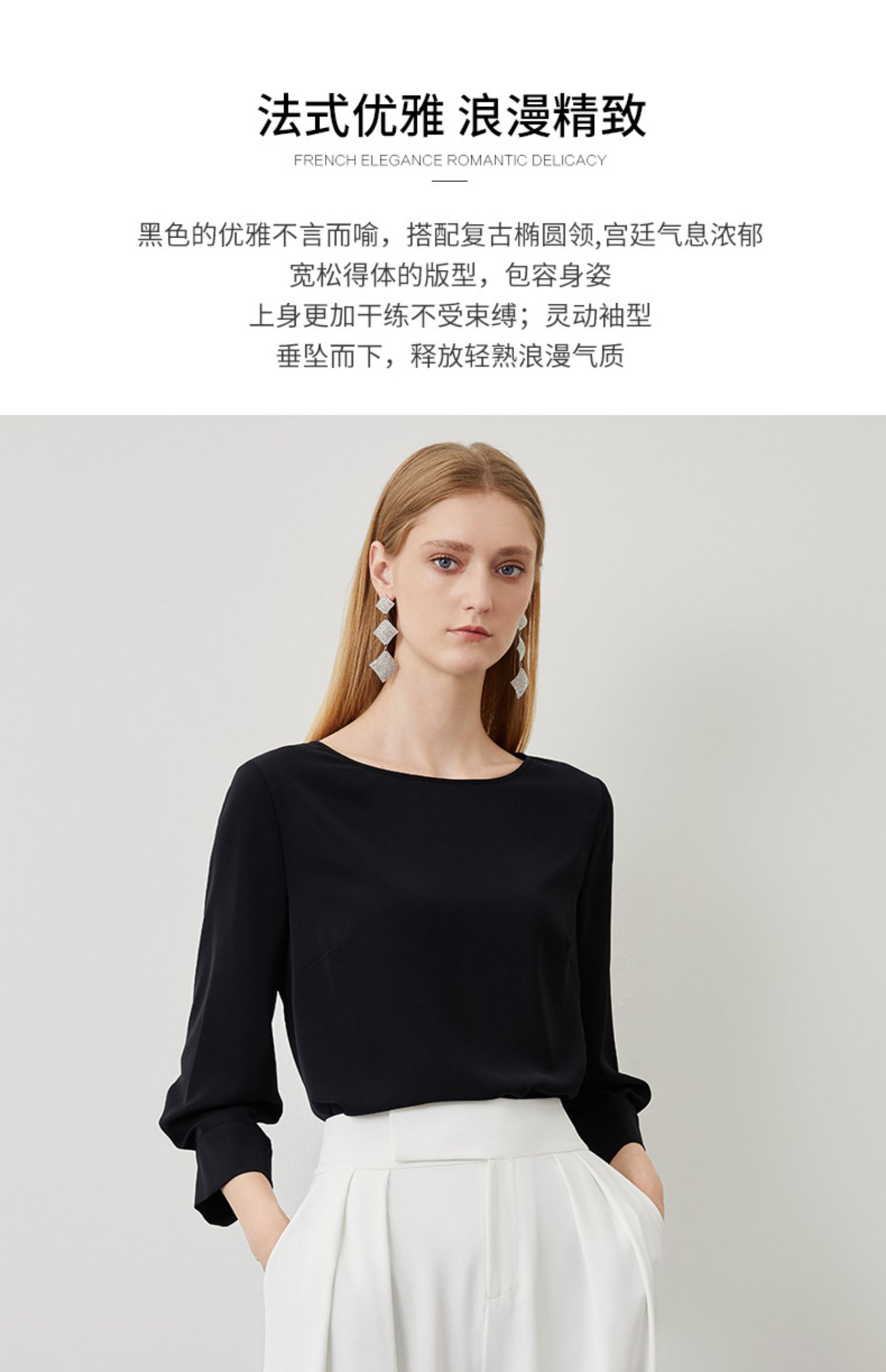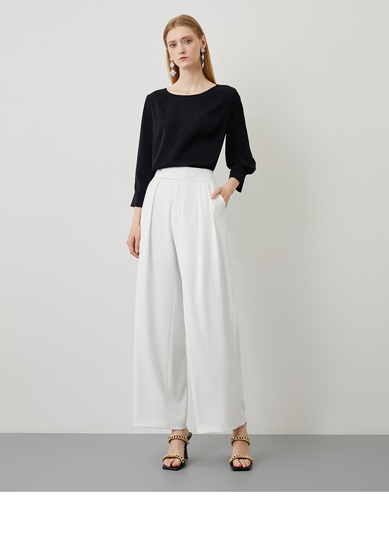 EITIE爱特爱秋季新款气质百搭垂坠简约圆领通勤显瘦黑色上衣C2213010