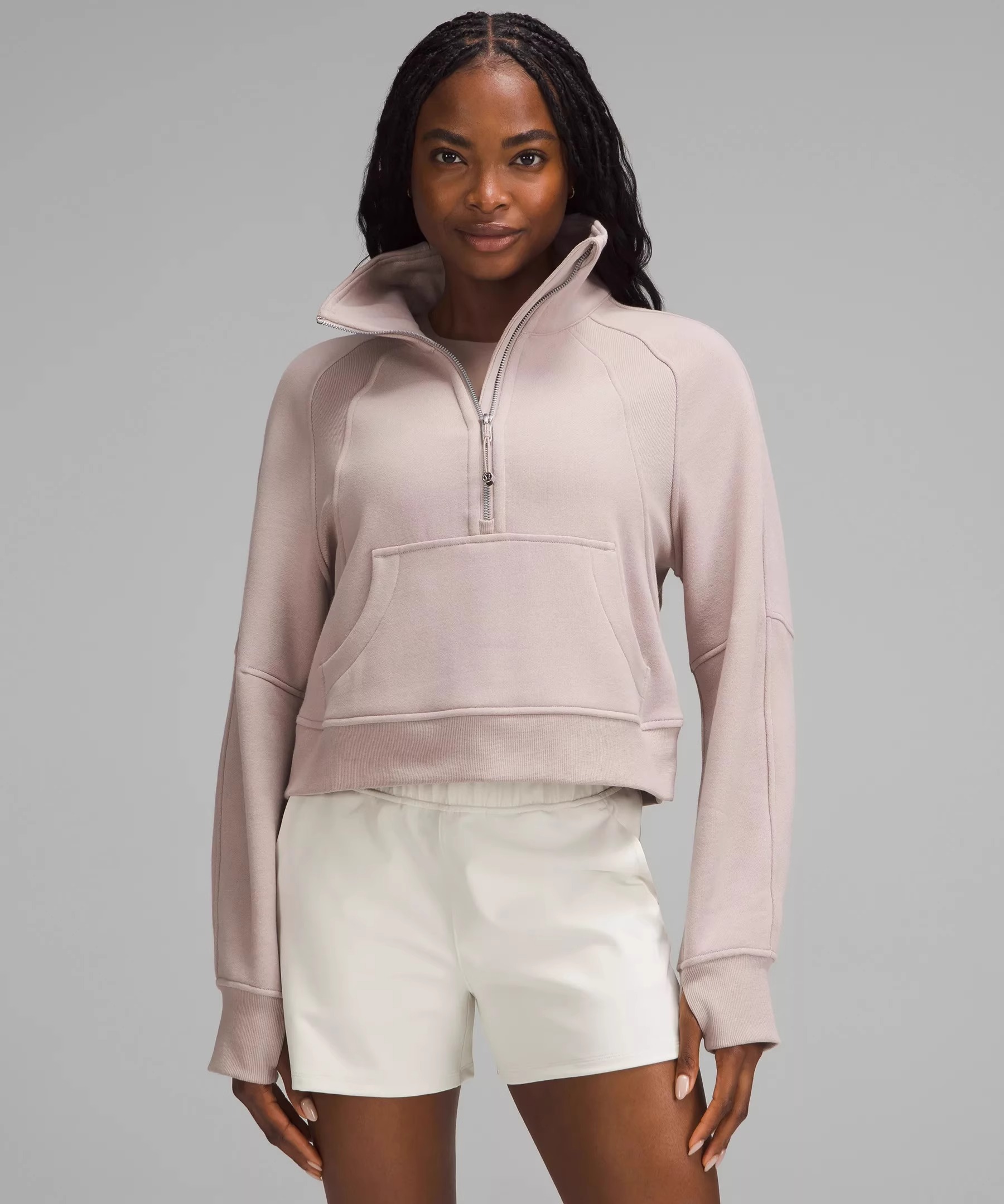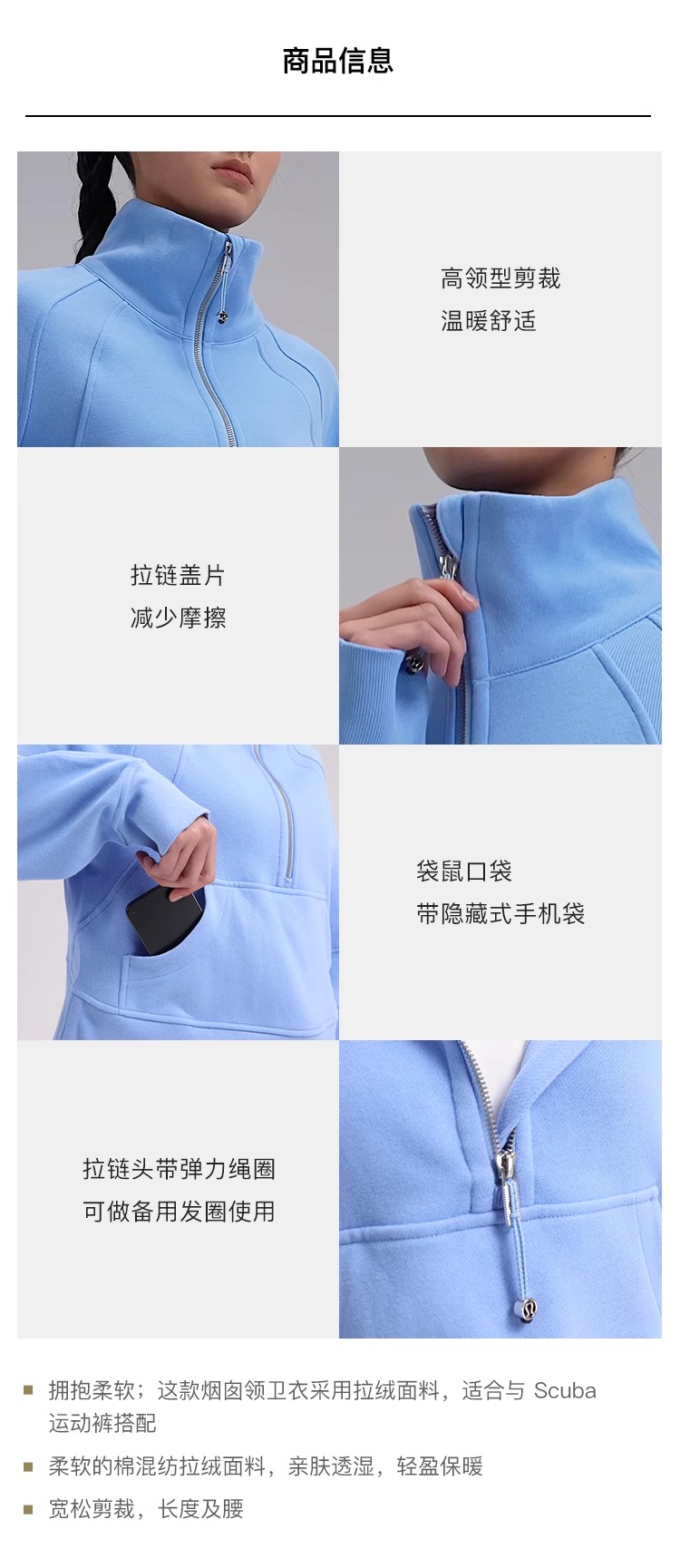 跃牌【瑞幸系列】加绒保暖卫衣女短款休闲时尚Scuba连帽半拉链宽松瑜伽运动外套HCX011
