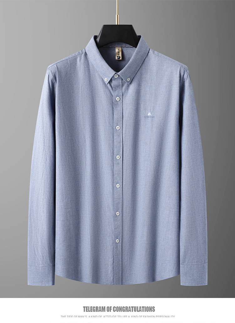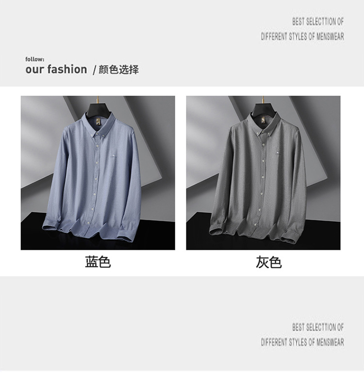 【100%棉】【DG】大依优型大码男装新款男士加肥加大码商务休闲方领纯棉长袖衬衫