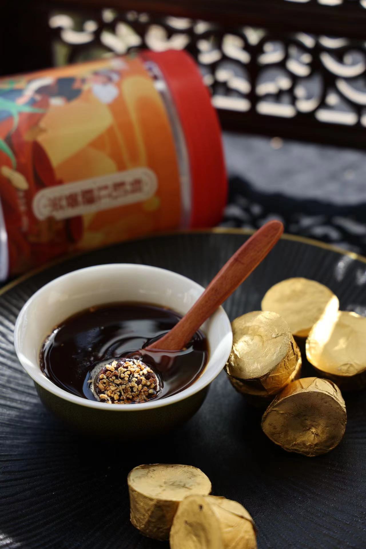 熬制了8小时左右️的糖浆已经达到最佳状态注入铺满姜粒的模具冷却成型,烘干装瓶。