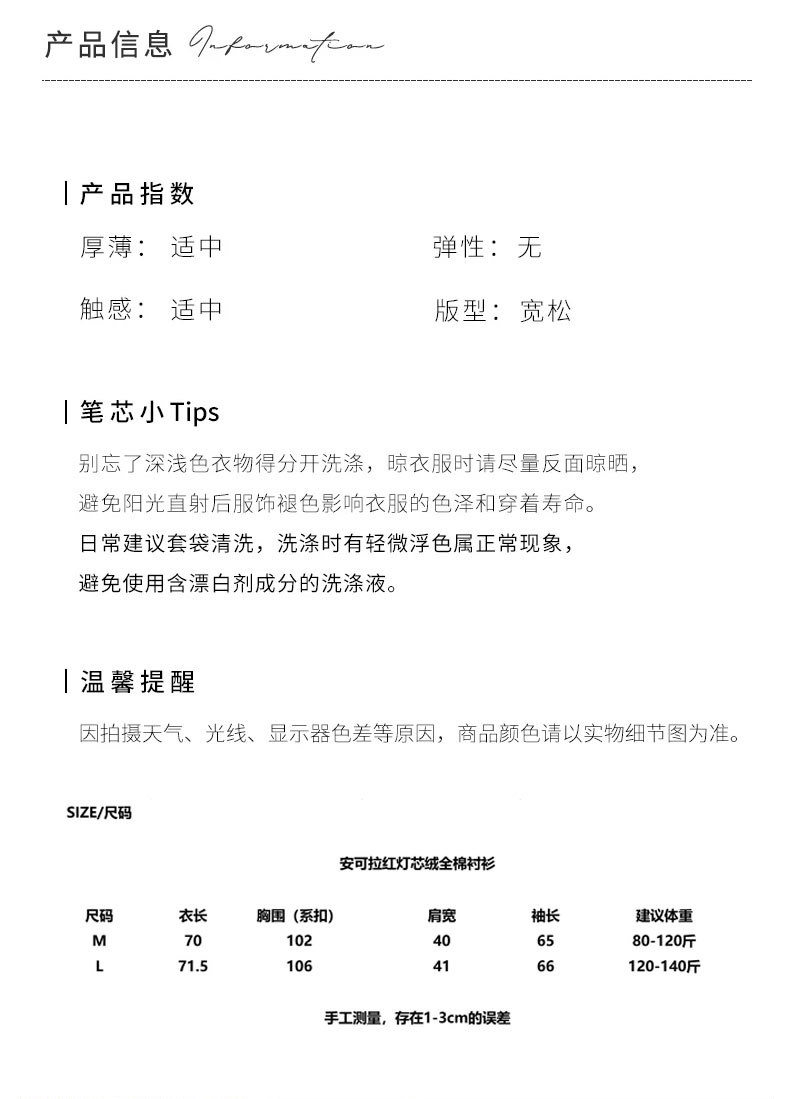 说到底,这件安可拉红灯芯绒衬衫不是那种穿一季就闲置的快消品