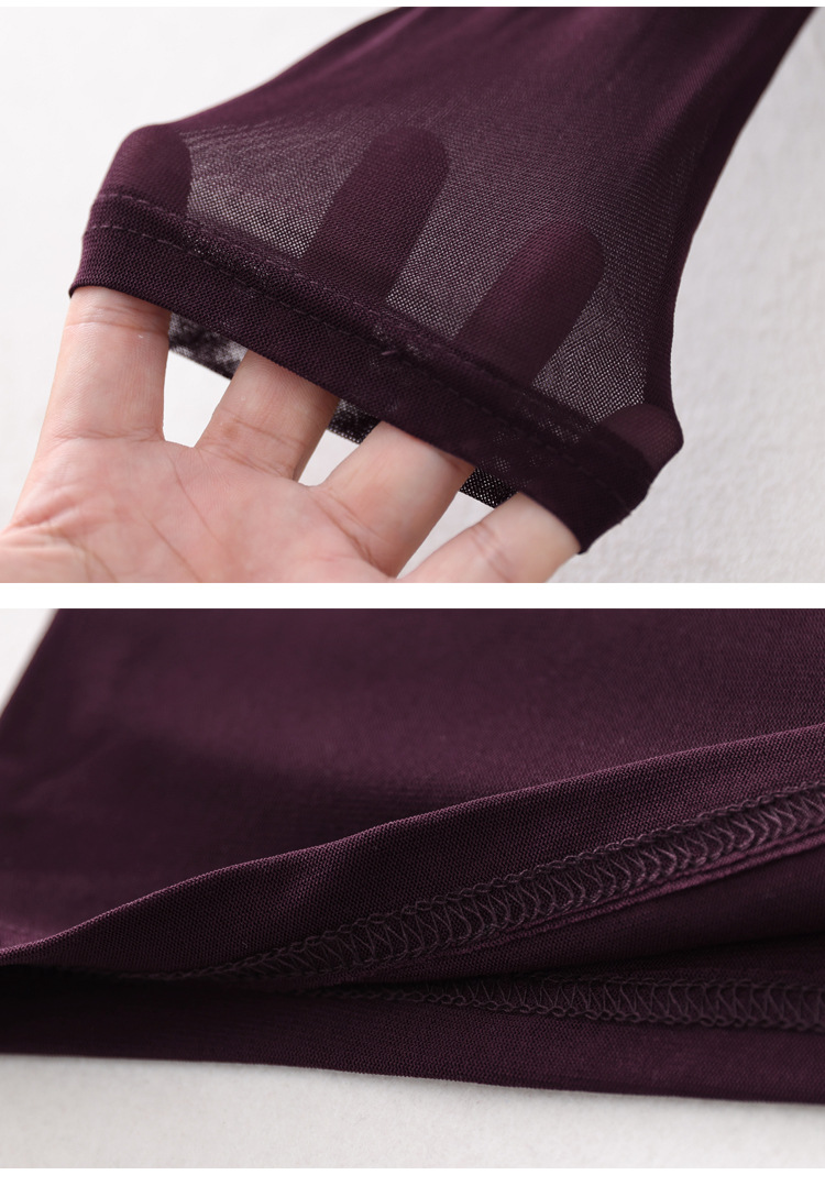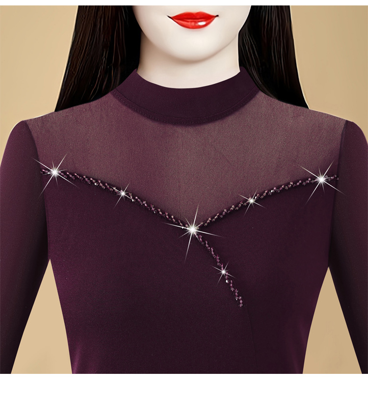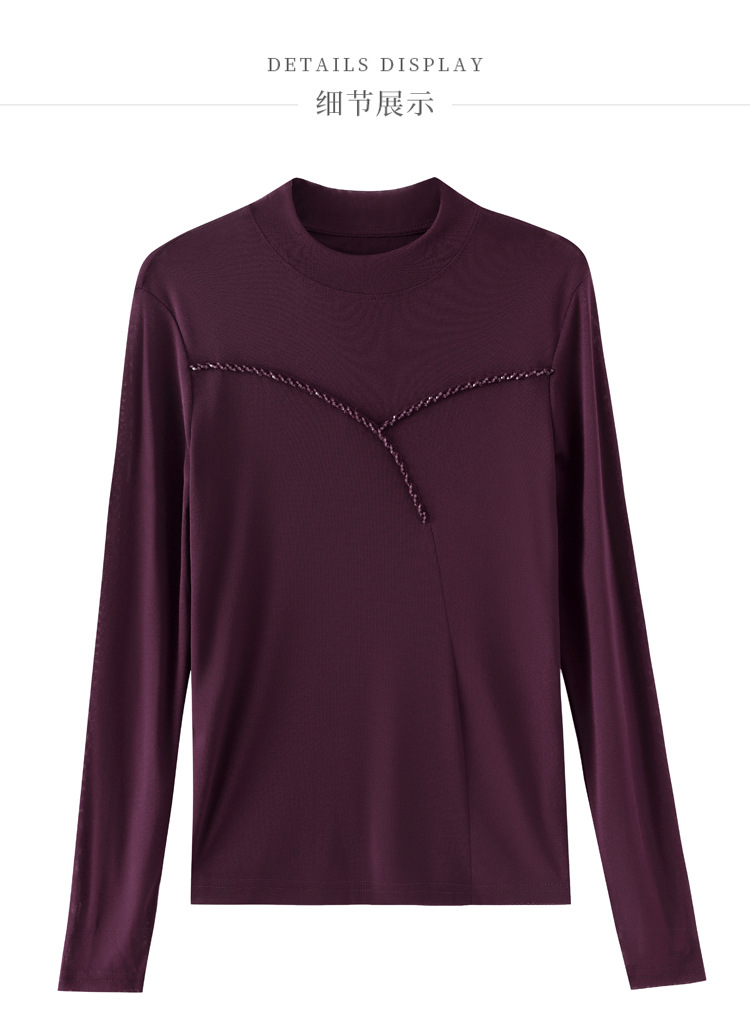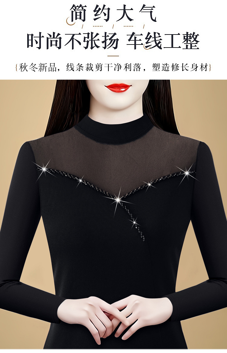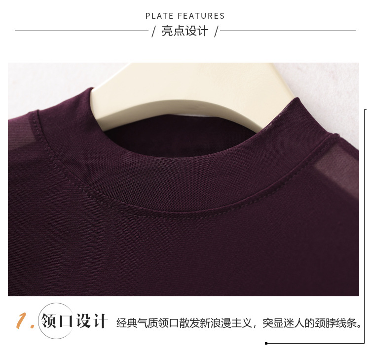 KQL 644G9250高弹网纱半高领打底衫显瘦洋气上衣小衫